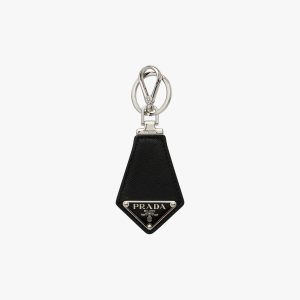 Black Customized Saffiano leather keychain