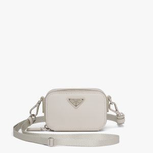 Chalk White Saffiano Leather Mini Pouch