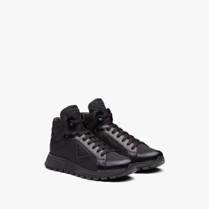 Black Prada Macro Re-Nylon and brushed leather high-top sneakers