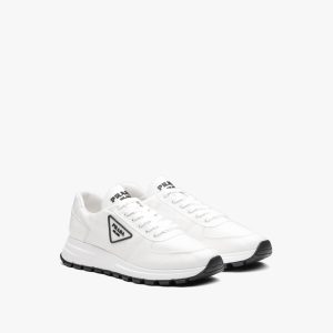 White Prada Macro Re-Nylon and brushed leather sneakers