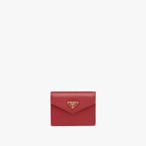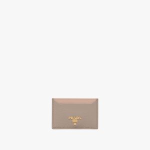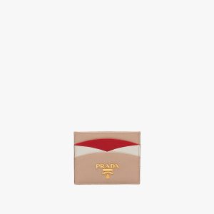 Powder Pink/fiery Red Saffiano Leather Card Holder
