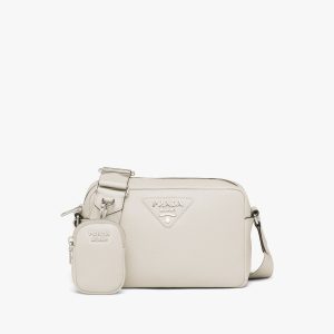 White Prada Flou leather bag with shoulder strap