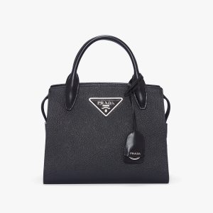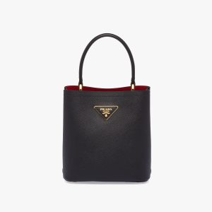 Black/fiery Red Small Saffiano Leather Prada Panier Bag