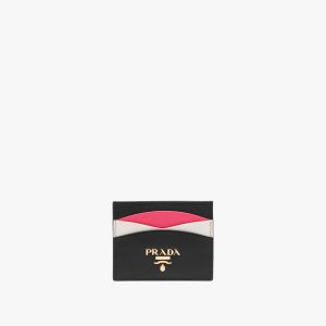 Black/hibiscus Saffiano Leather Card Holder