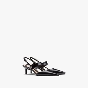 Black Brushed leather slingbacks