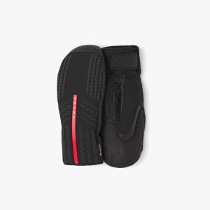Black GORE-TEX leather and knit ski mittens