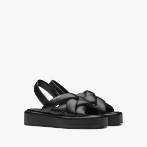 Black Quilted nappa leather flatform sandals