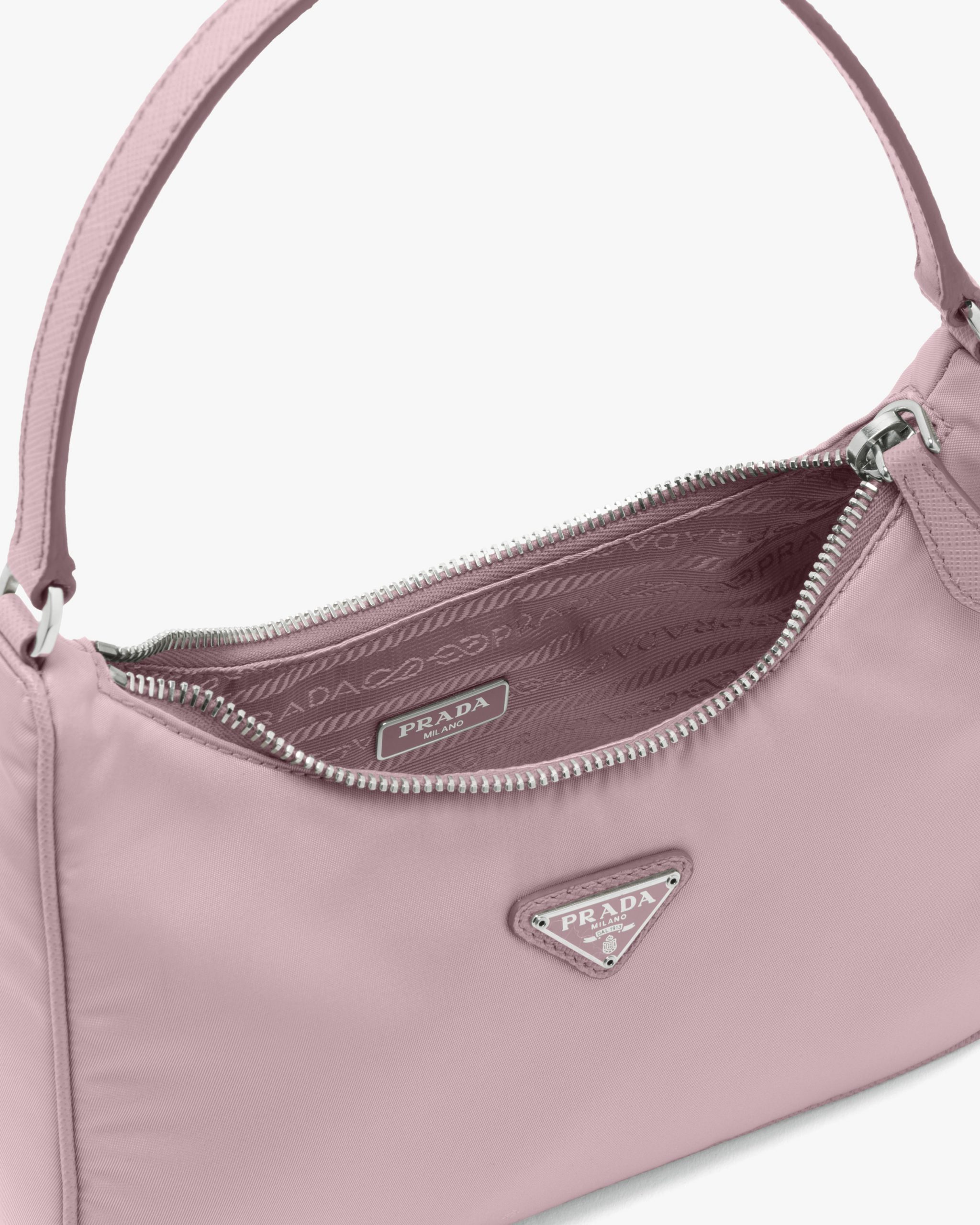 Inspired by the iconic mini hobo bag, the Prada Re-Edition 2005 shoulder bag is made of Re-Nylon: a regenerated nylon yarn produced from recycled, purified plastic trash collectsed in the ocean, fishing nets and textile waste fibers. Practical and feminine, the mini bag is decorated with iconic Saffiano leather trim. It features a contemporary mix of materials.