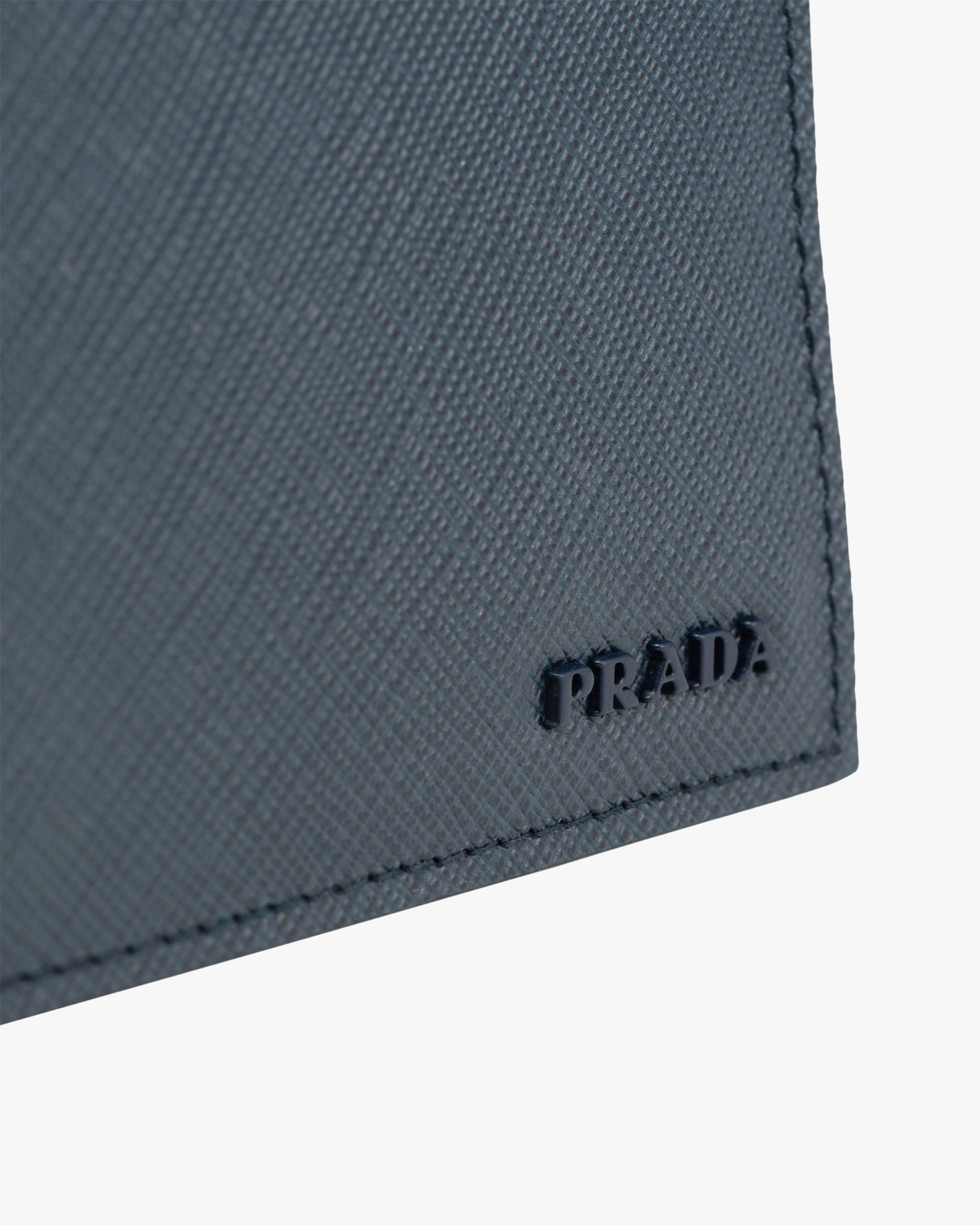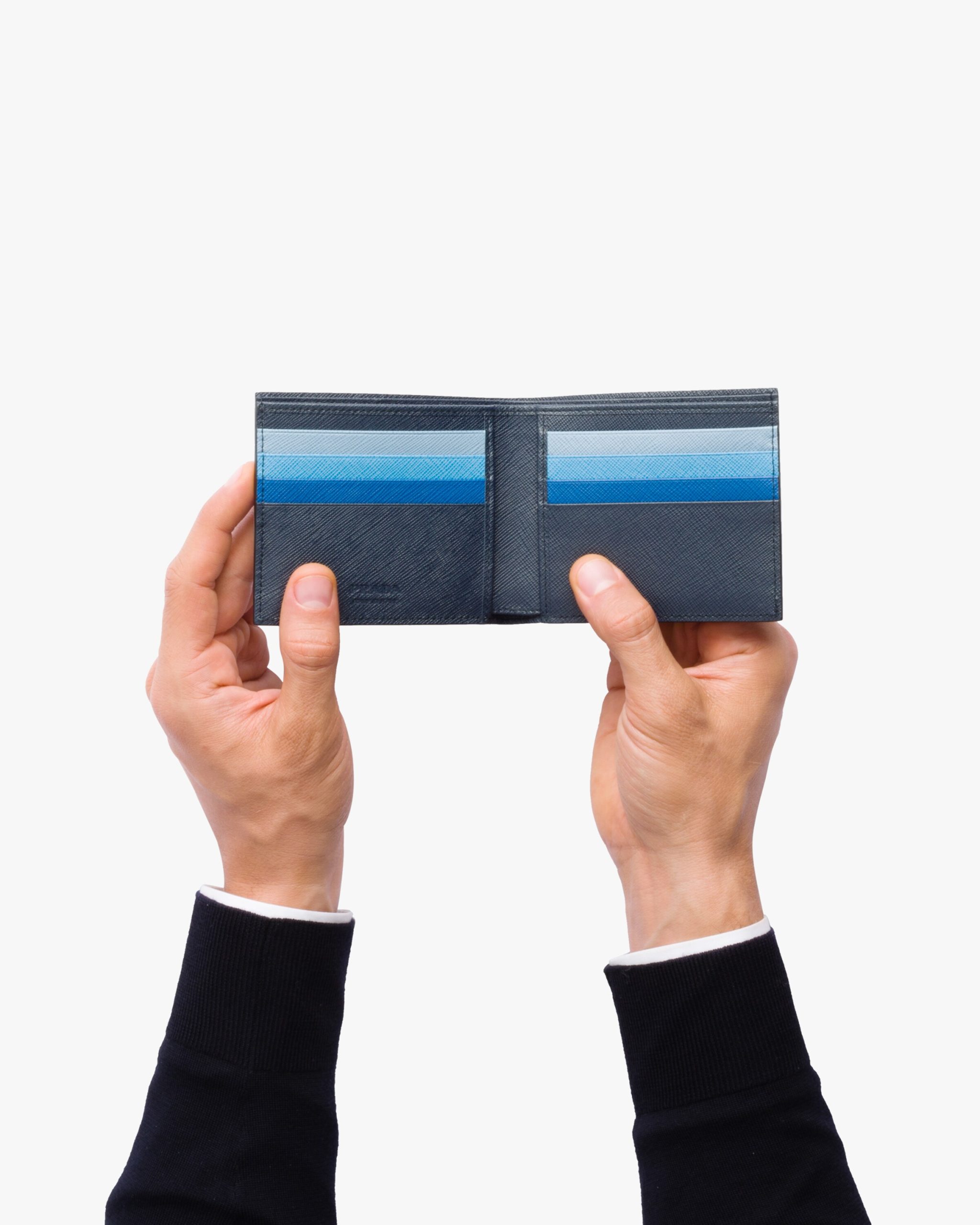 This elegant Saffiano leather wallet is decorated with a tonal lettering logo and has document pockets, bill compartments and eight card slots in contrasting colors inside.