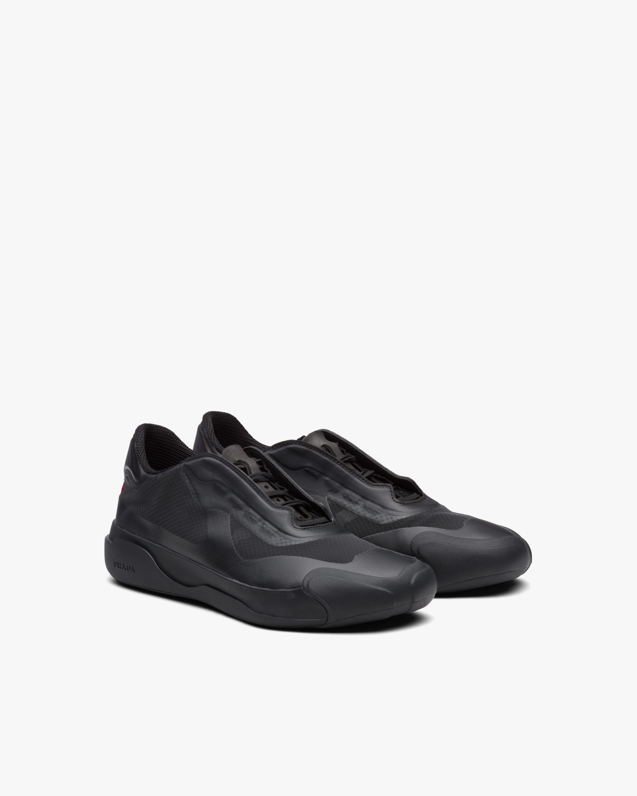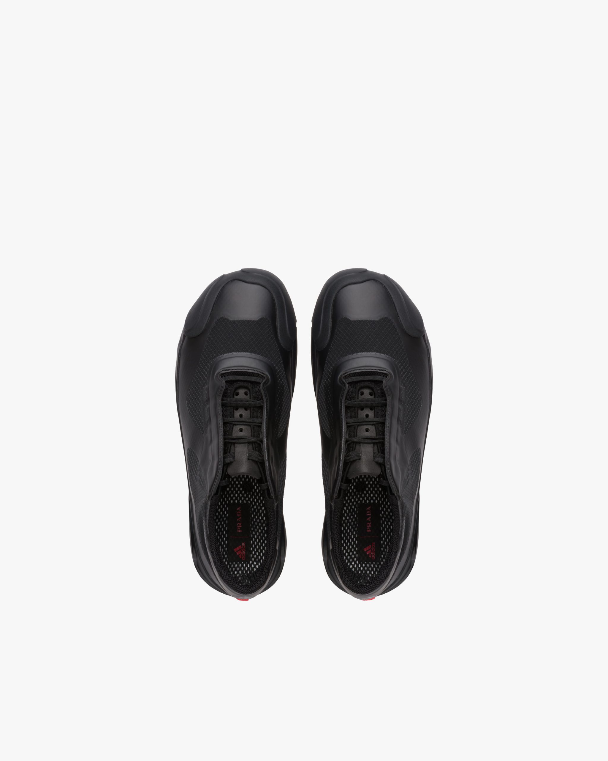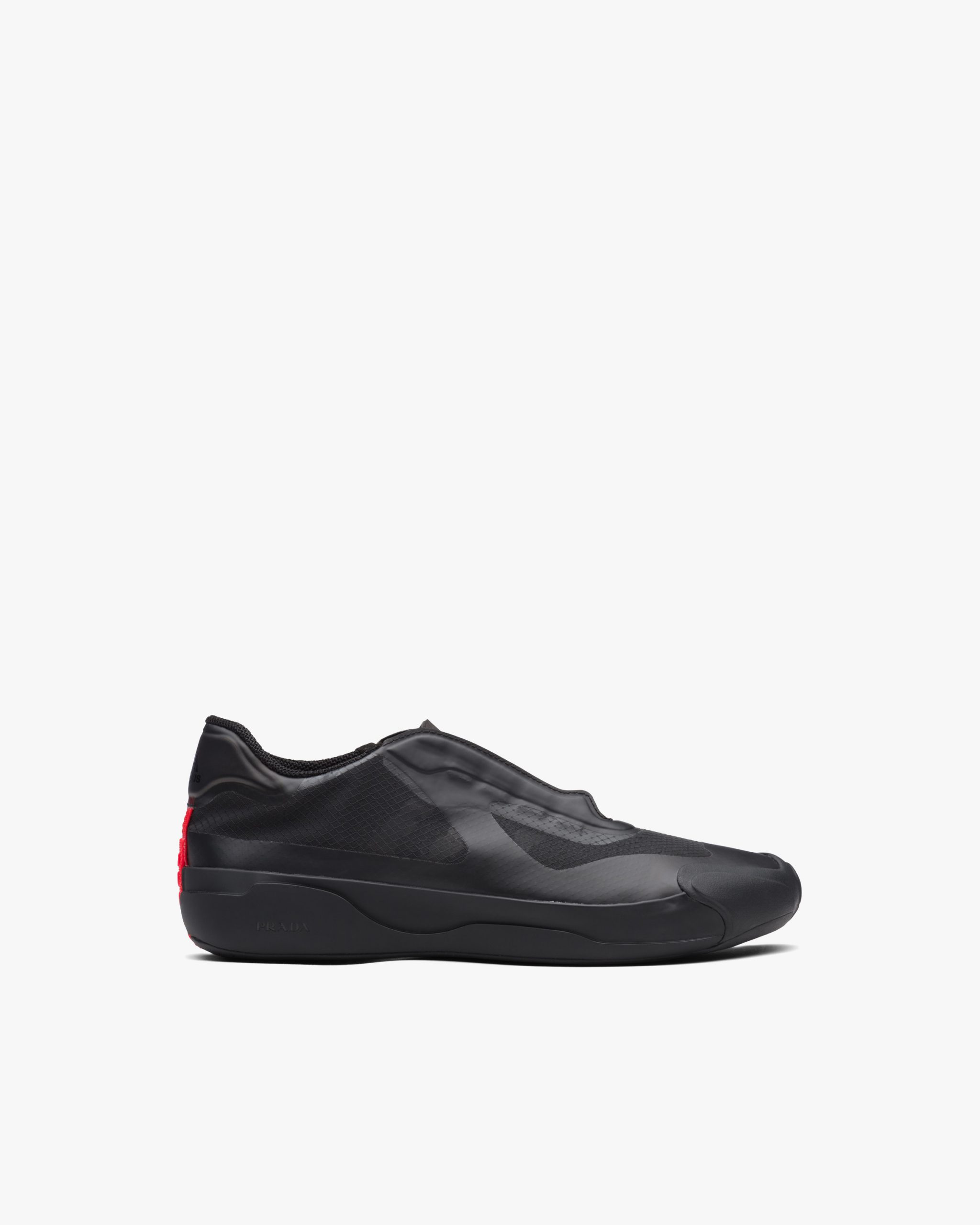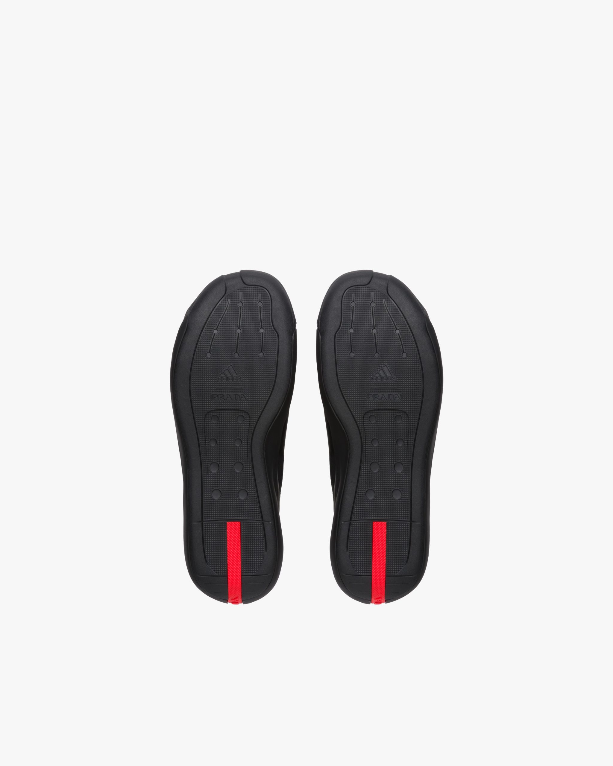 Light, flexible and made with components manufactured from Primegreen recycled materials, the A+P Luna Rossa 21 sneaker produced in collaboration with adidas blends iconic elements of the two brands in a style inspired by the sailing world. Reminiscent of the iconic design of the Prada America’s Cup boat shoe of 1997, it has a hydrophobic shell that encases the upper inspired by an ergonomic adidas shape. The shoe comes in special packaging, accompanied by a shoe bag made of technical fabric with logo print, that can turn into a versatile accessory.