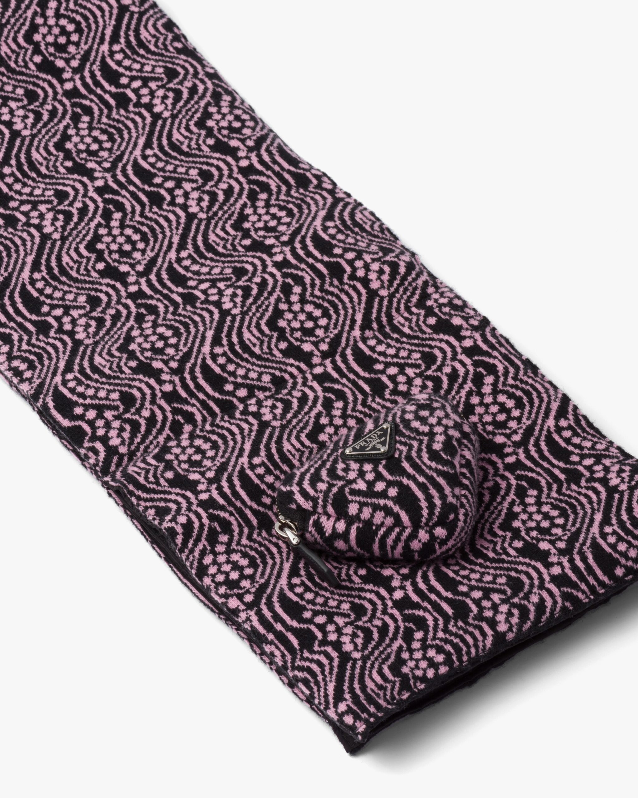 Black/black And Pink Reversible jacquard and Re-Nylon scarf