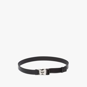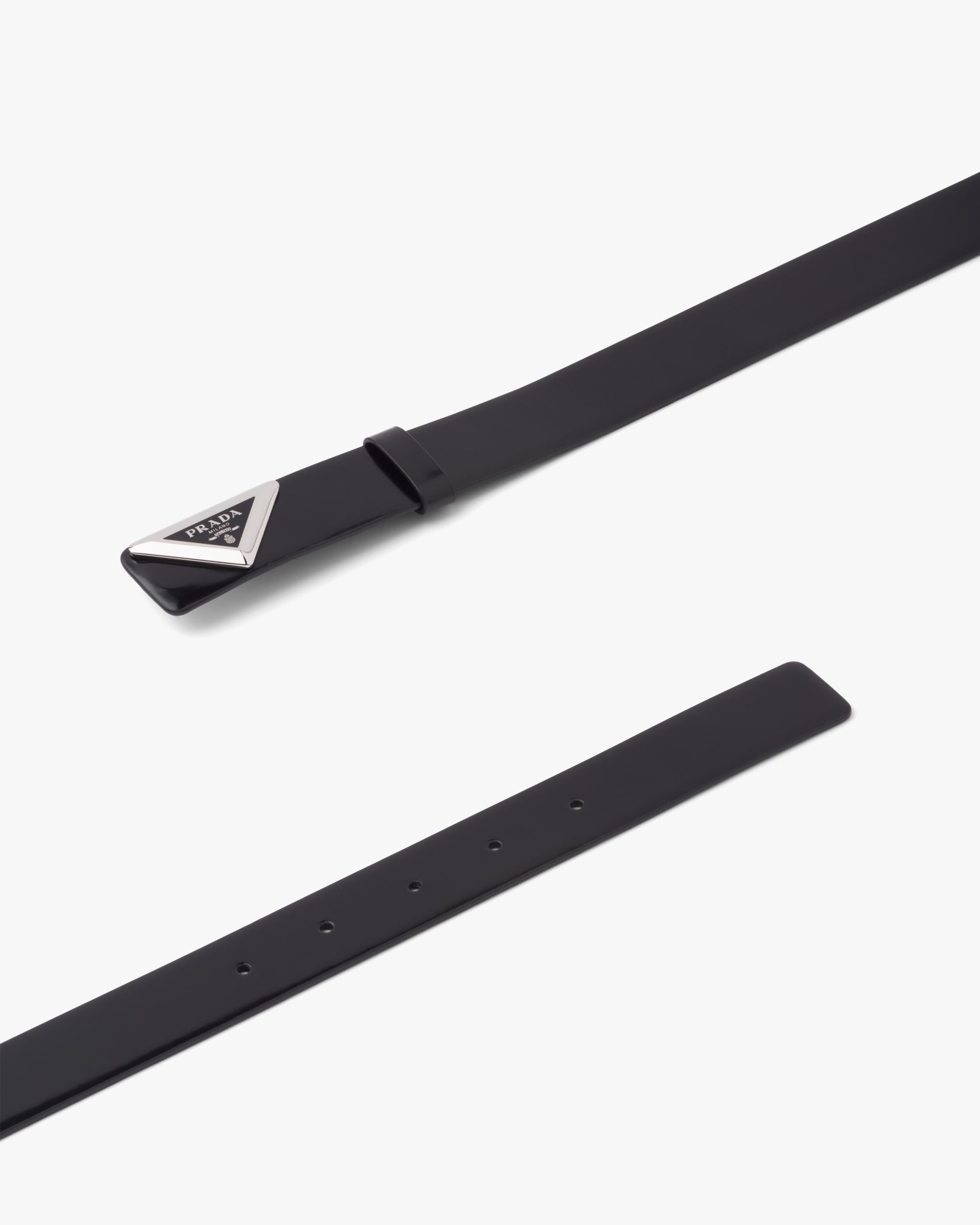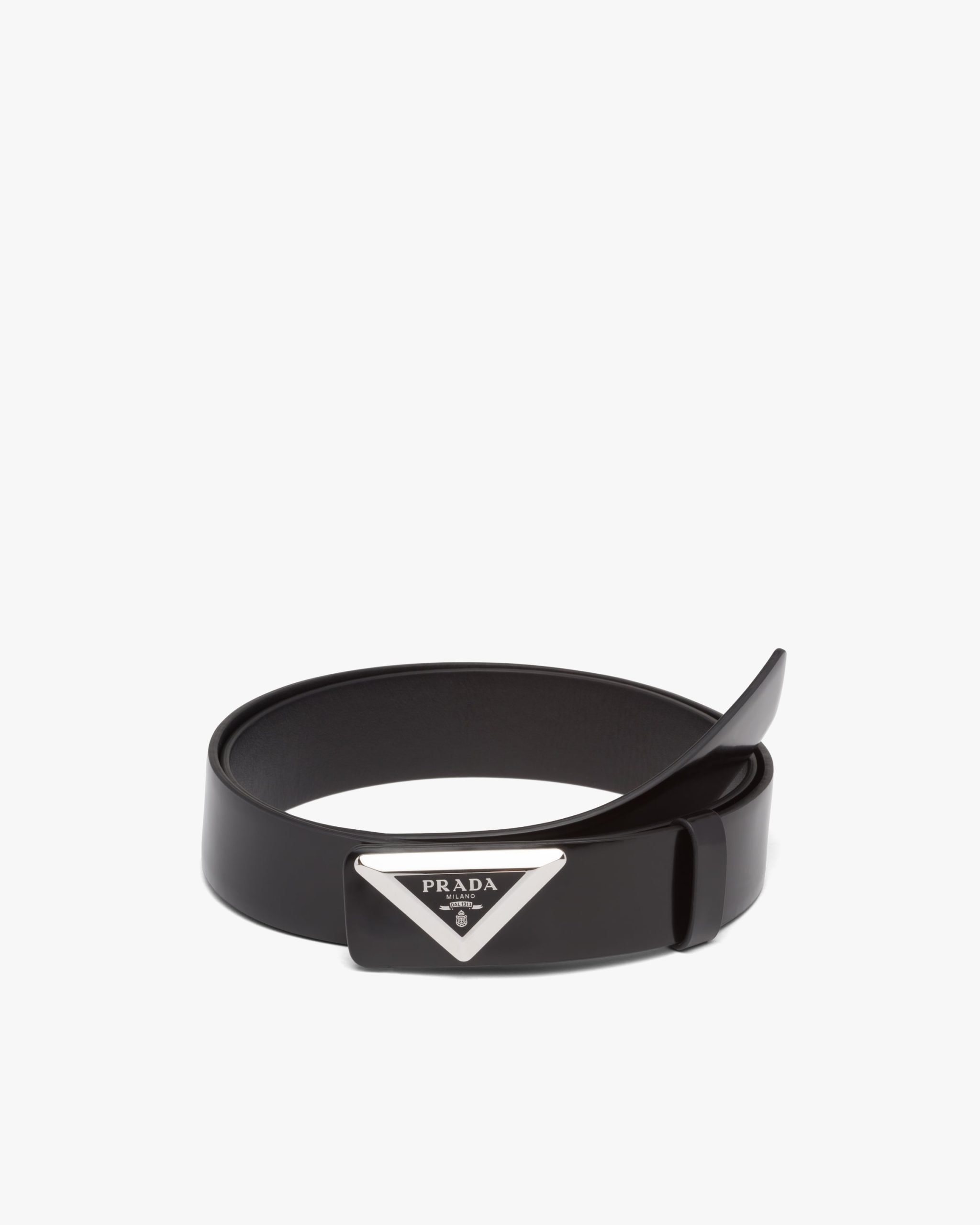 Made of brushed leather, a material that became an icon of Prada know-how over the years, this belt is characterized by its sleek, refined design completed by the triangular buckle decorated with the enameled metal lettering logo.