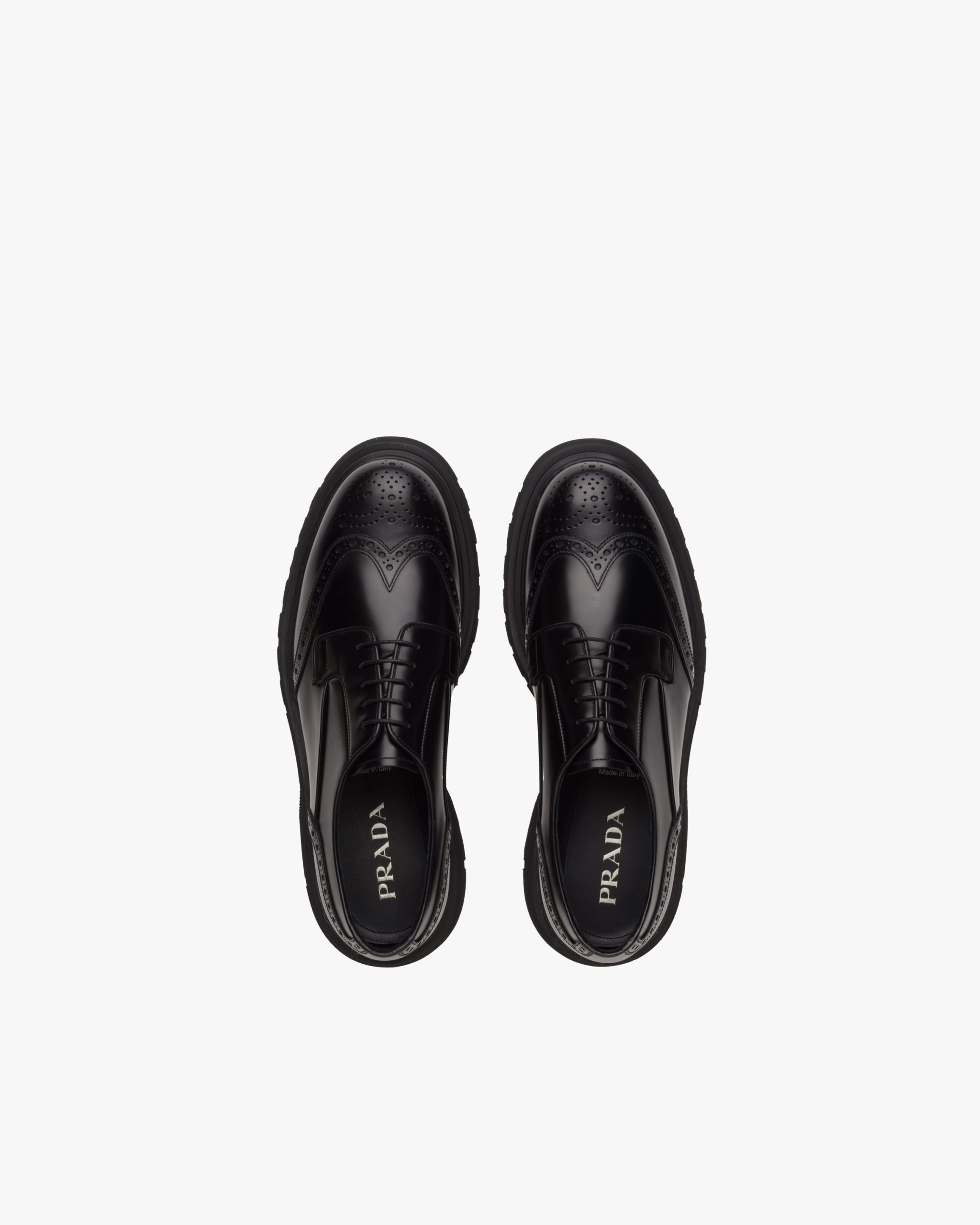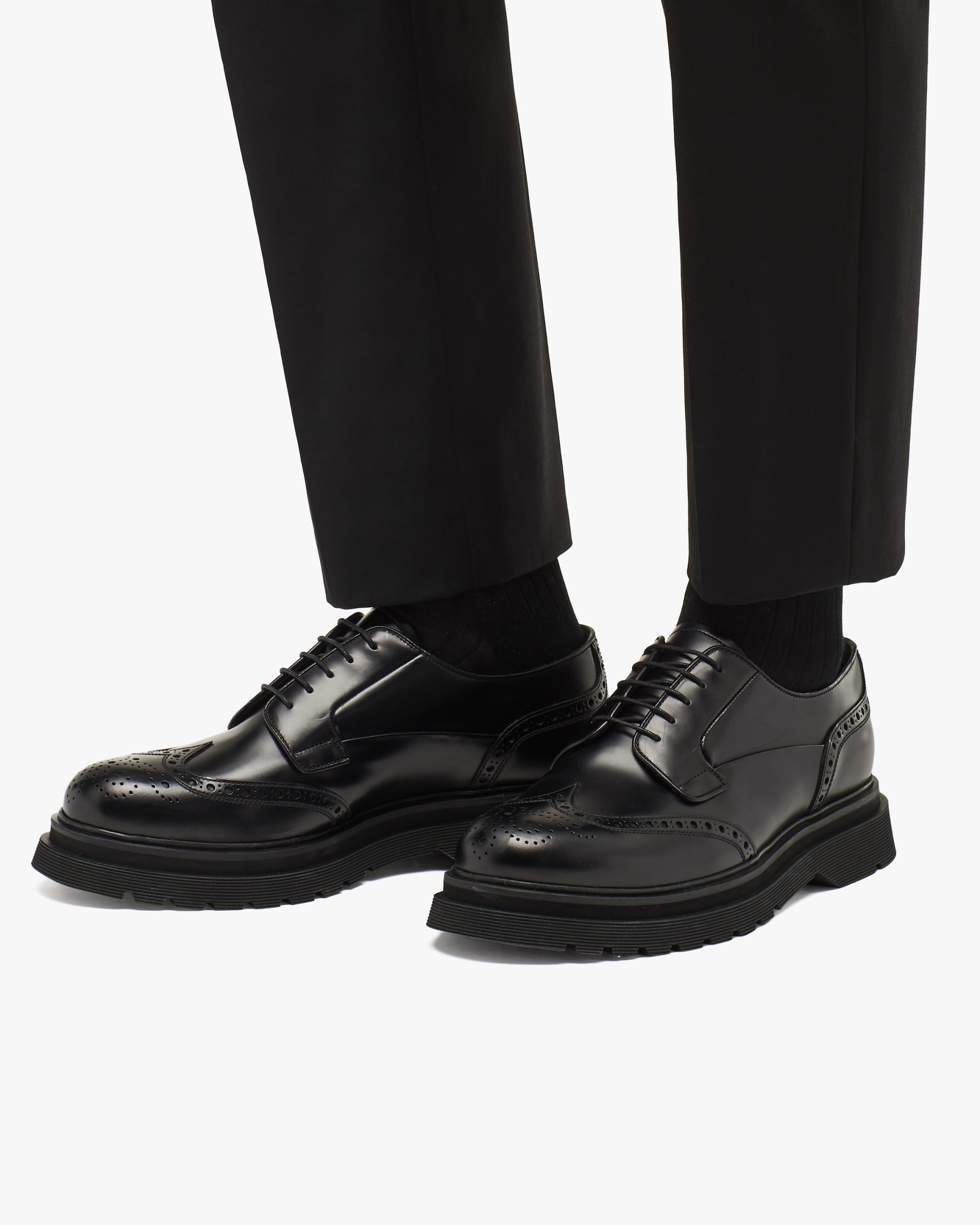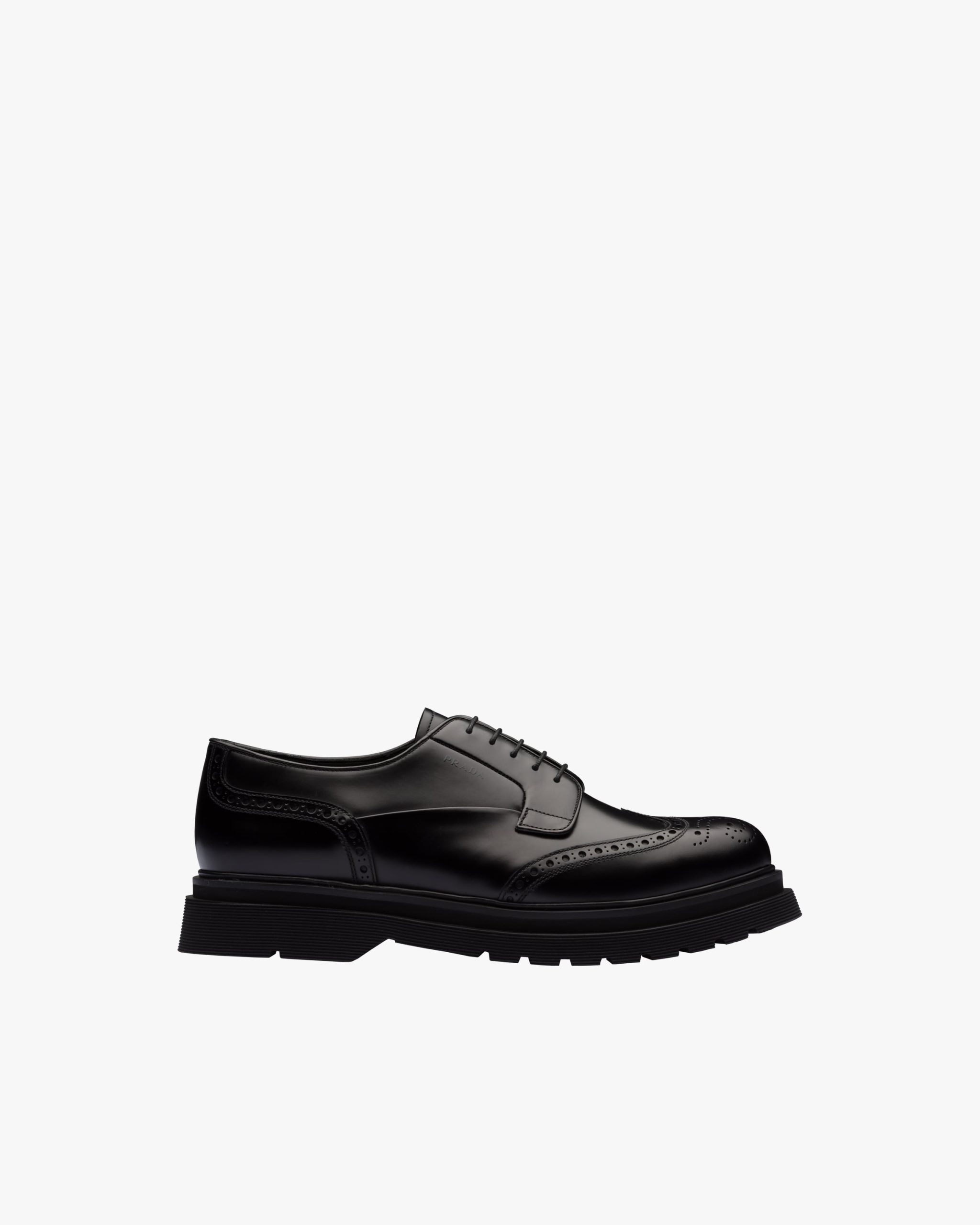 These classic brushed calf leather laced derby shoes are reinterpreted with the wingtip motif on the upper. The light rubber sawtooth sole emphasizes its contemporary style.