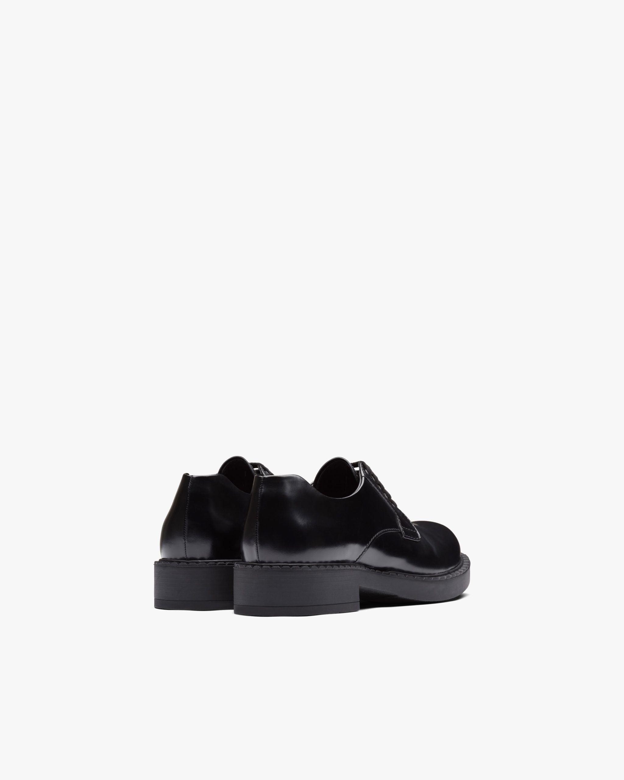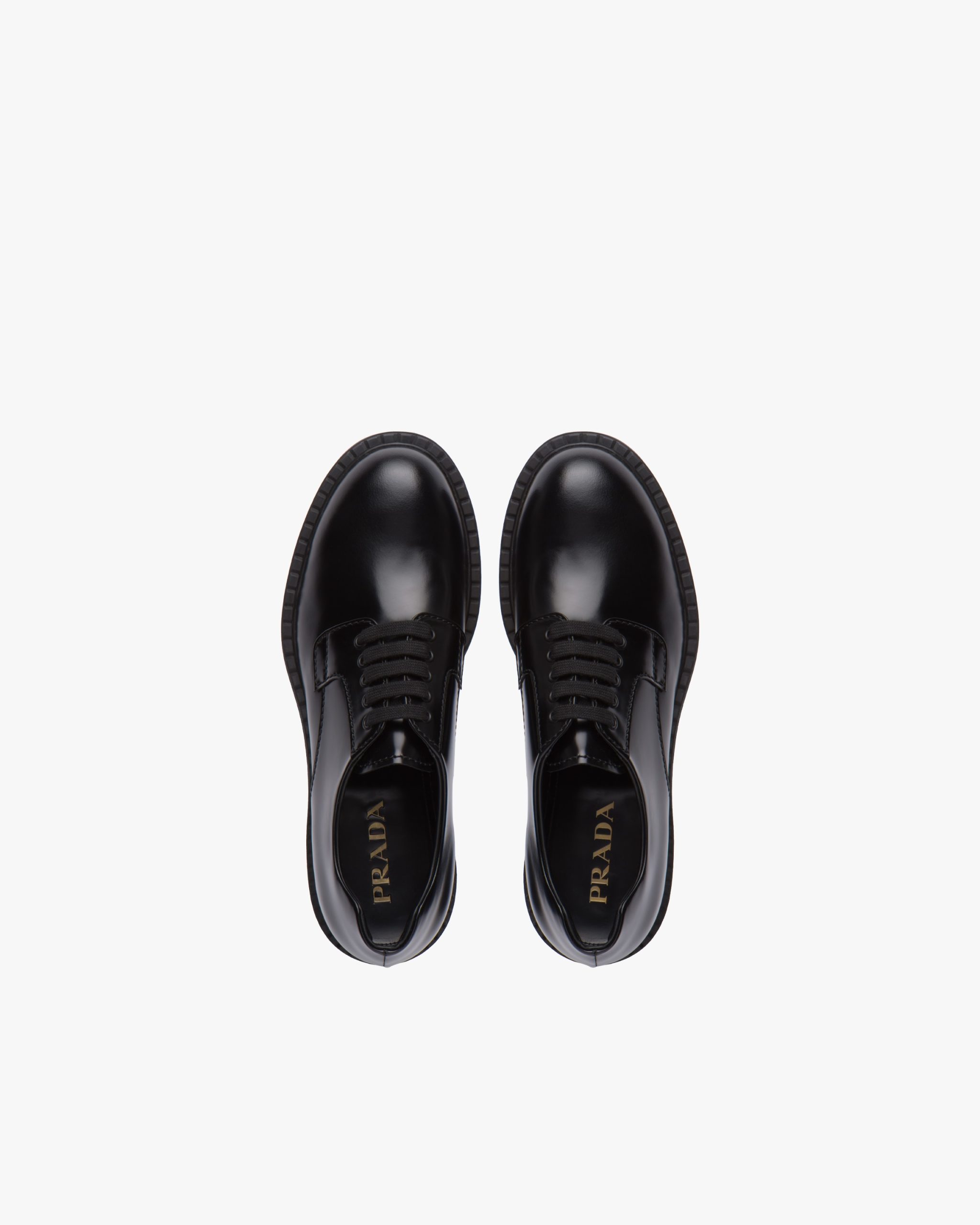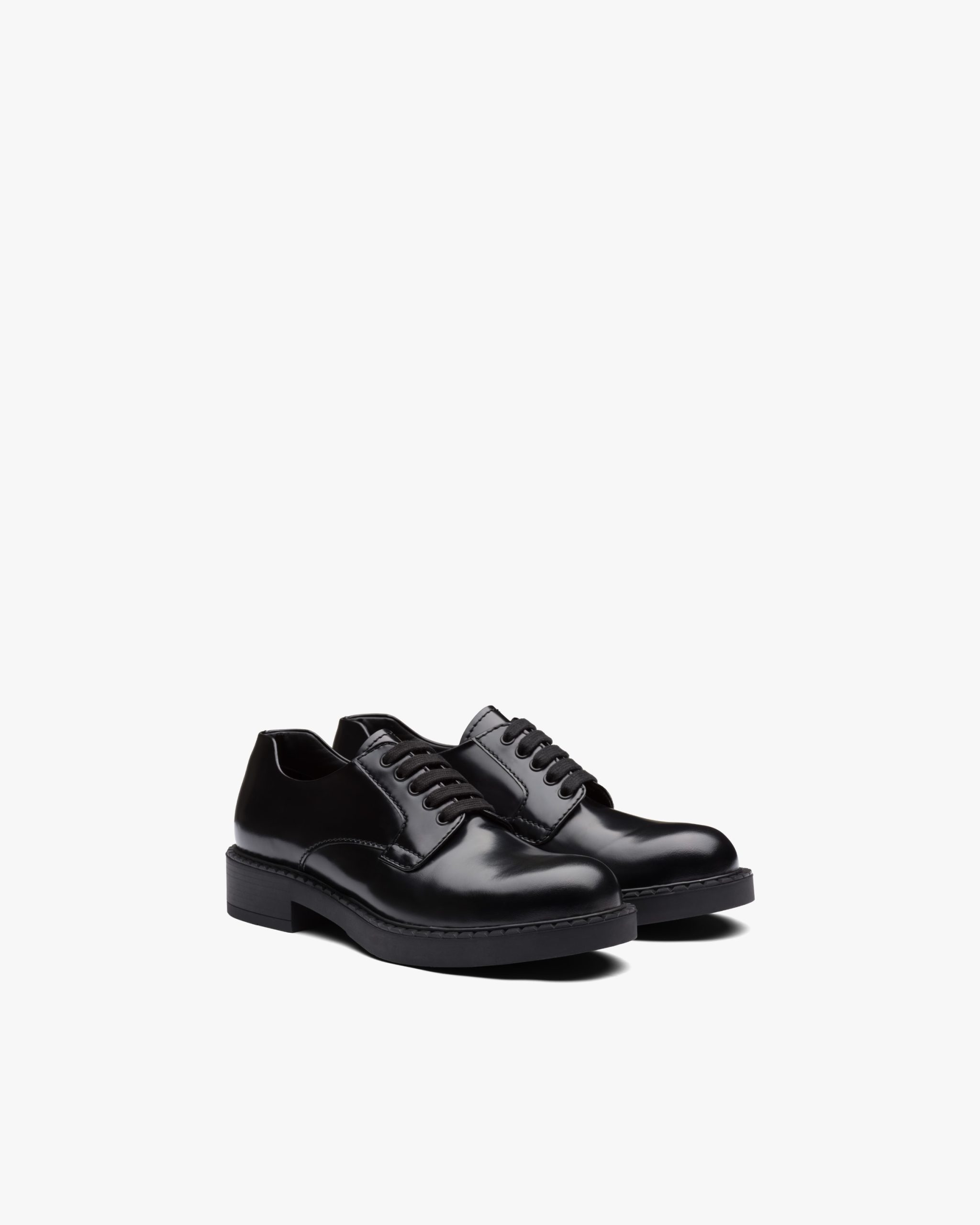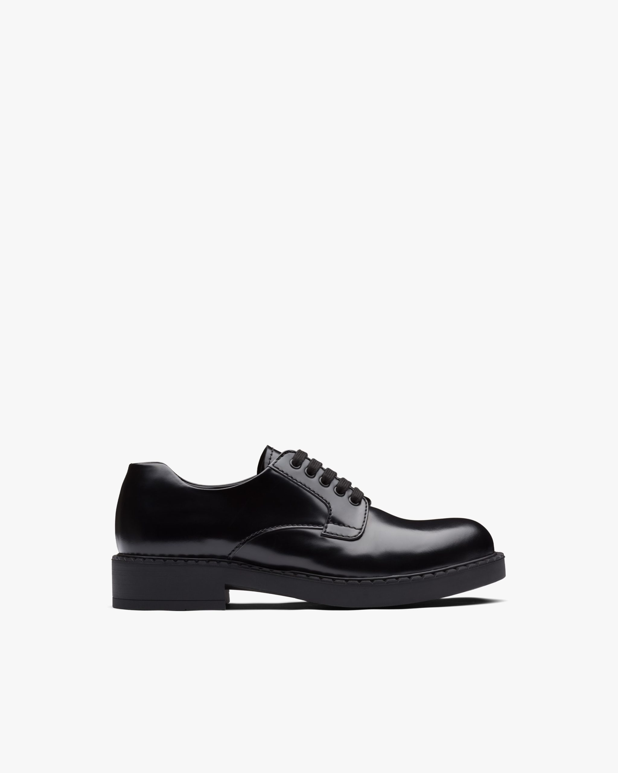 Elegance and modernism: Prada’s new brushed derby lace-up shoes blend fine craftsmanship and details that make the shoe innovative in design. The notched sole embellishes the shoe.