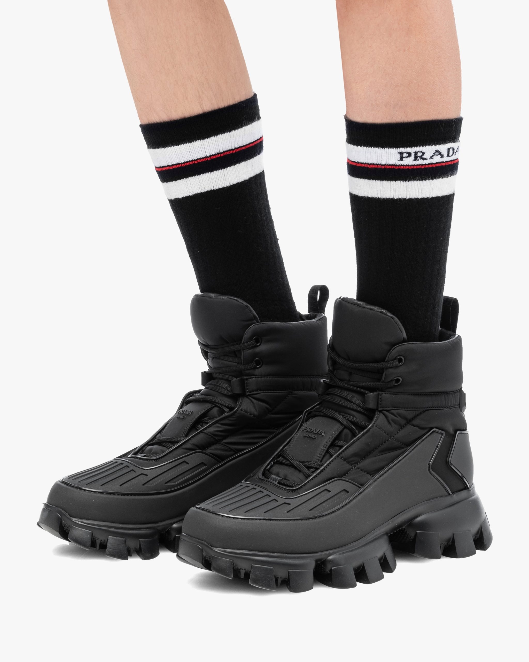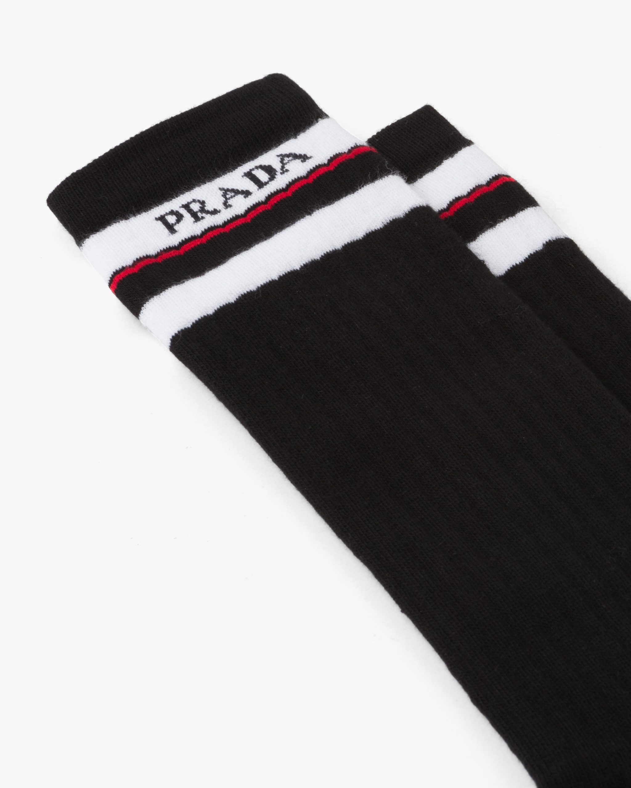 The embroidered Prada logo decorates these cotton ankle socks, adding a refined signature touch.