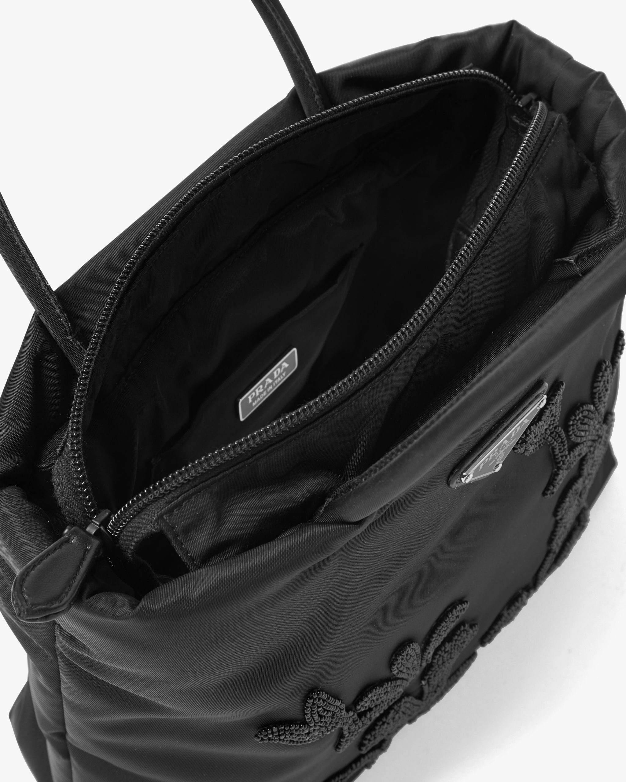 Black Embroidered nylon handbag