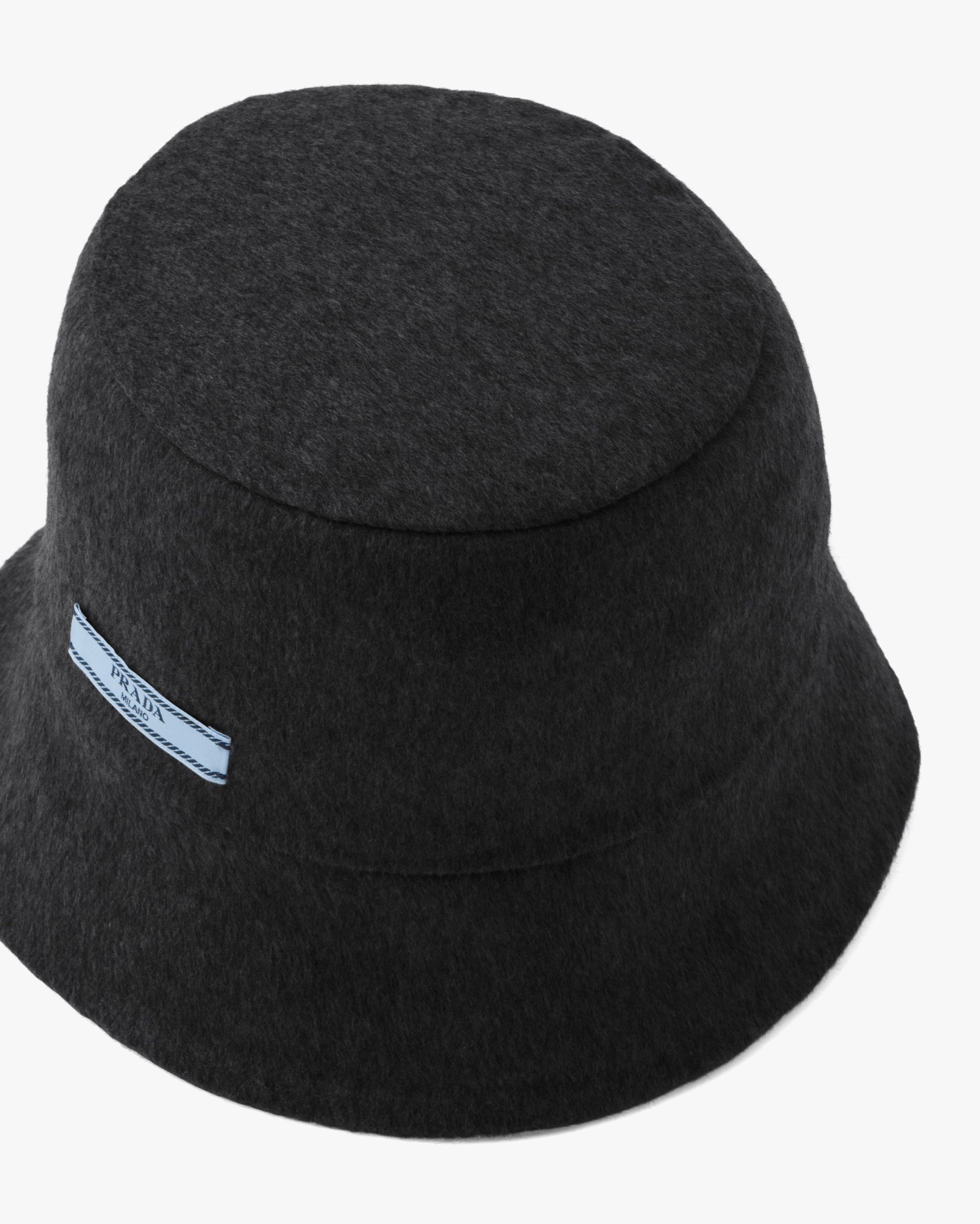 This hat made of soft cashmere has a classic cloche shape. The bucket hat is decorated with the Prada logo label.