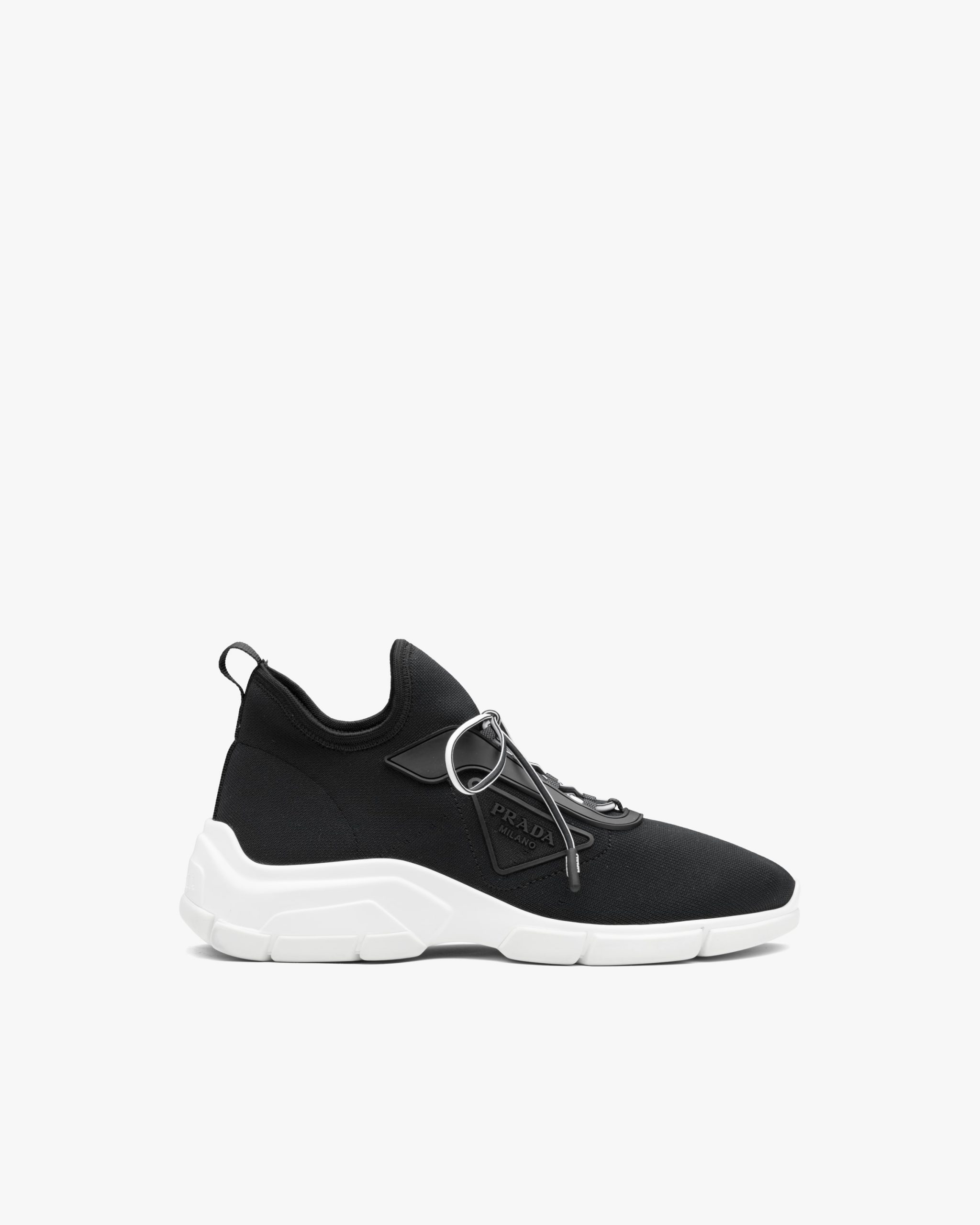 The Triangle logo decorates these knit fabric sneakers. A reinterpretation of the classic sports shoe, this style stands out for its contemporary charm.