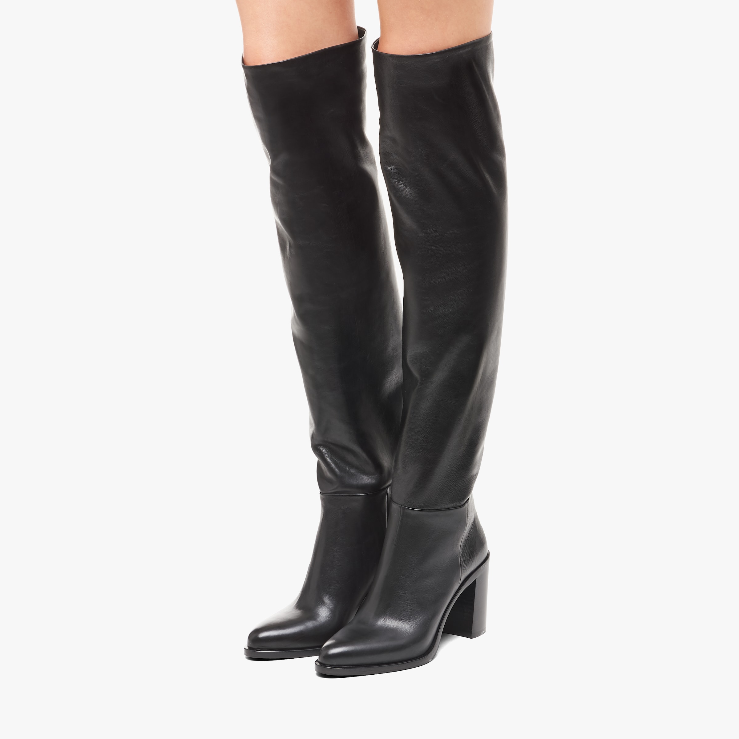 These soft leather boots with a distinctive silhouette are characterized by the leather and rubber monobloc sole.