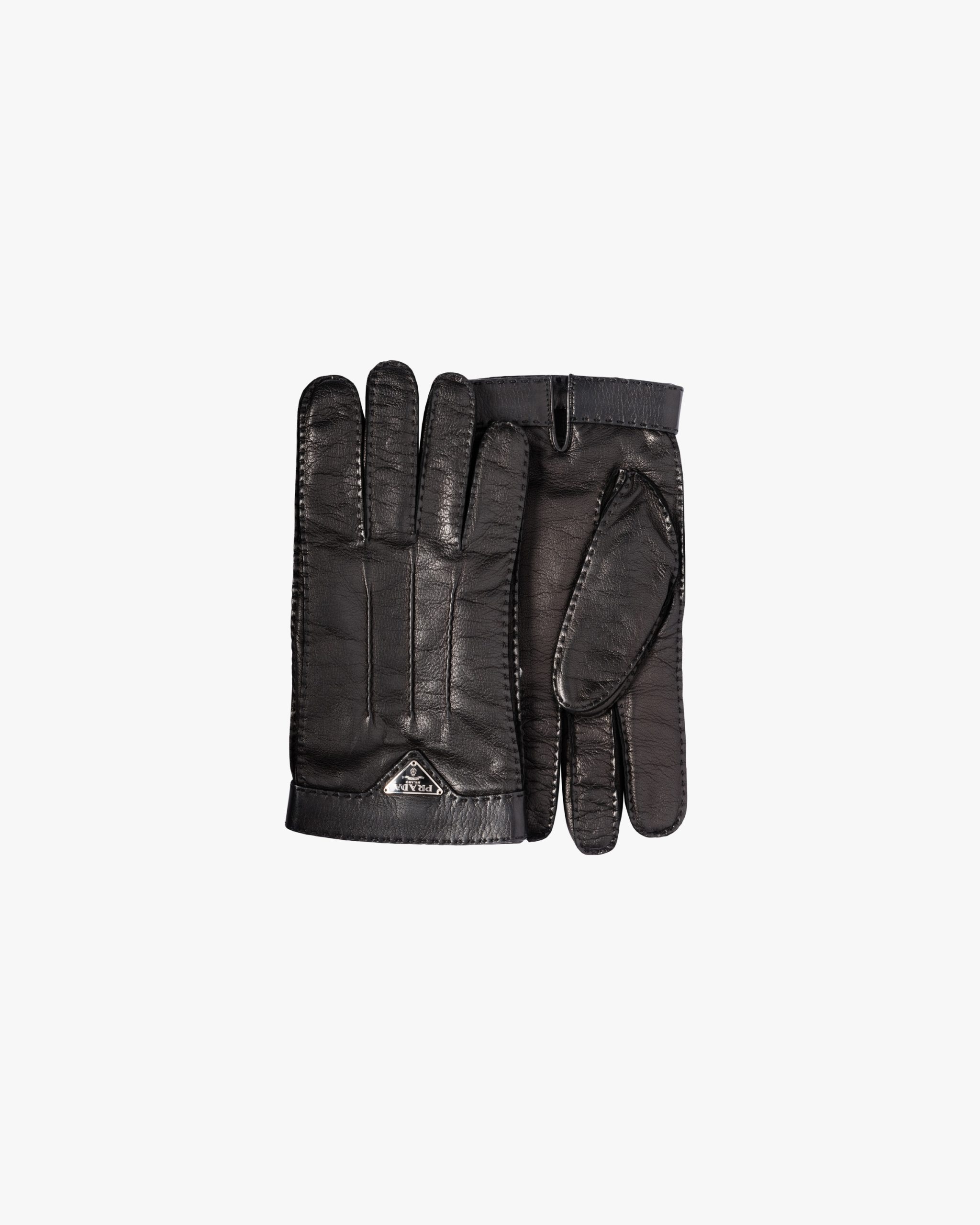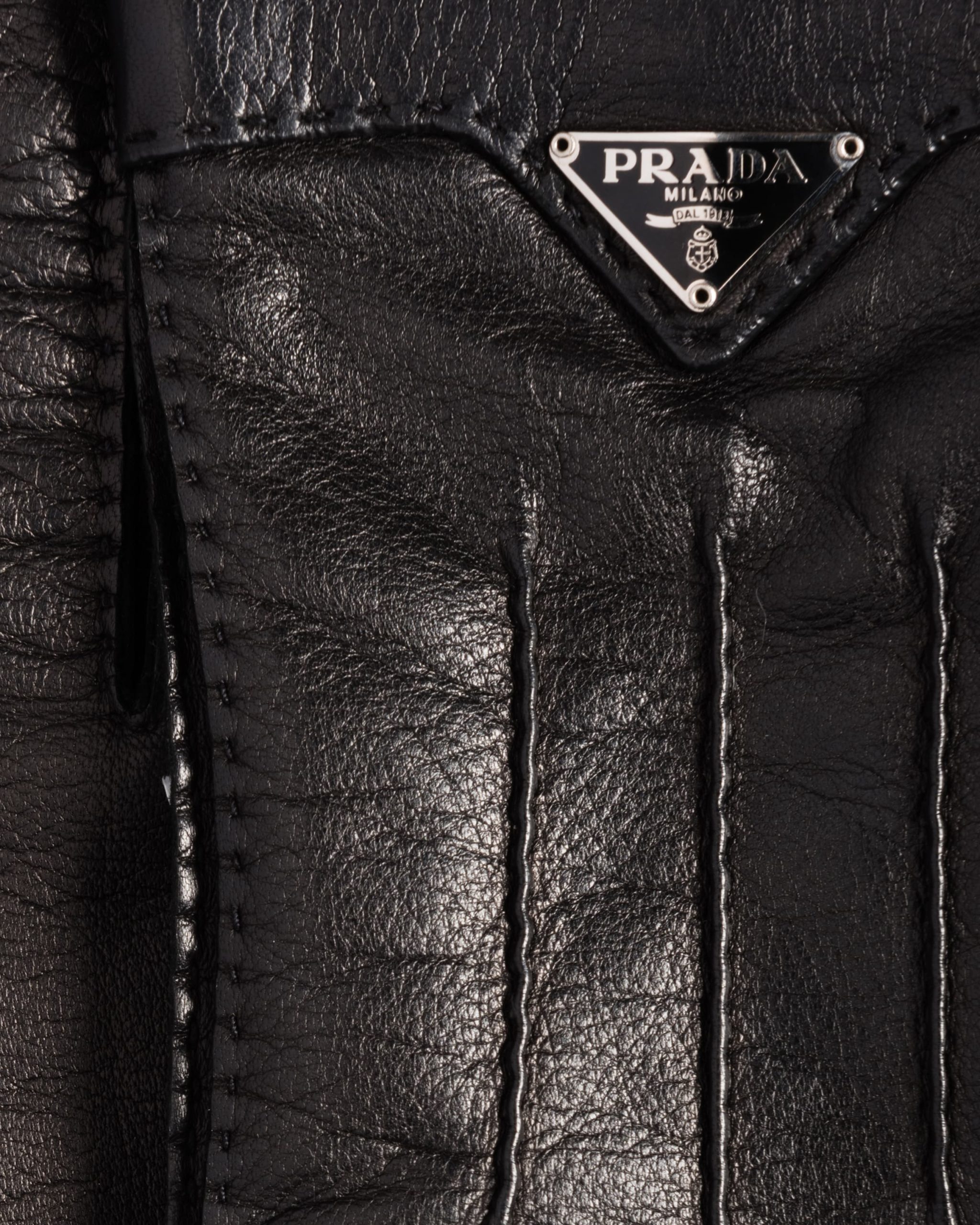Leather gloves defined by handmade detail and the triangle enameled Prada logo. The inside is lined with cashmere.