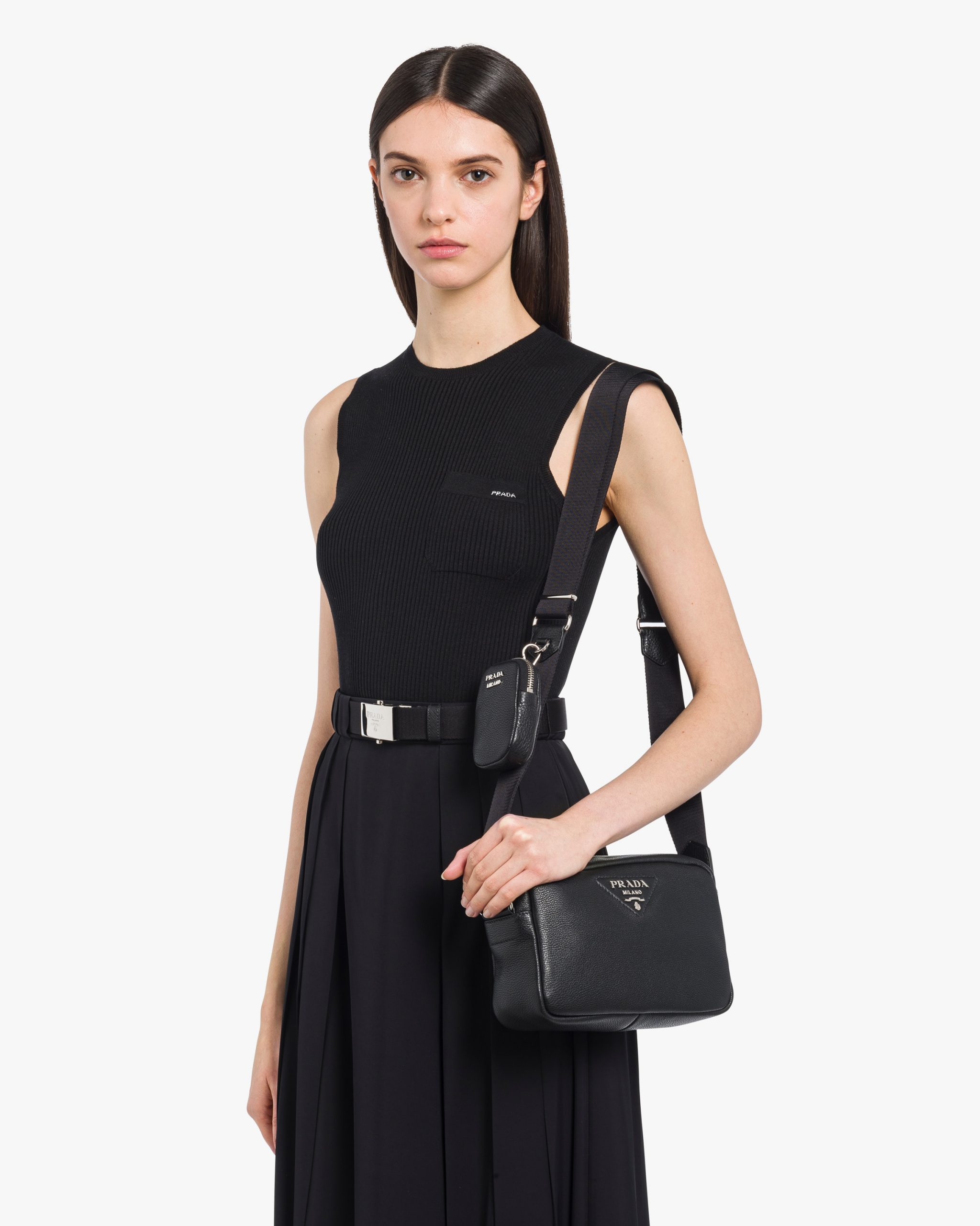 • Prada logo nylon lining with zipper pocket