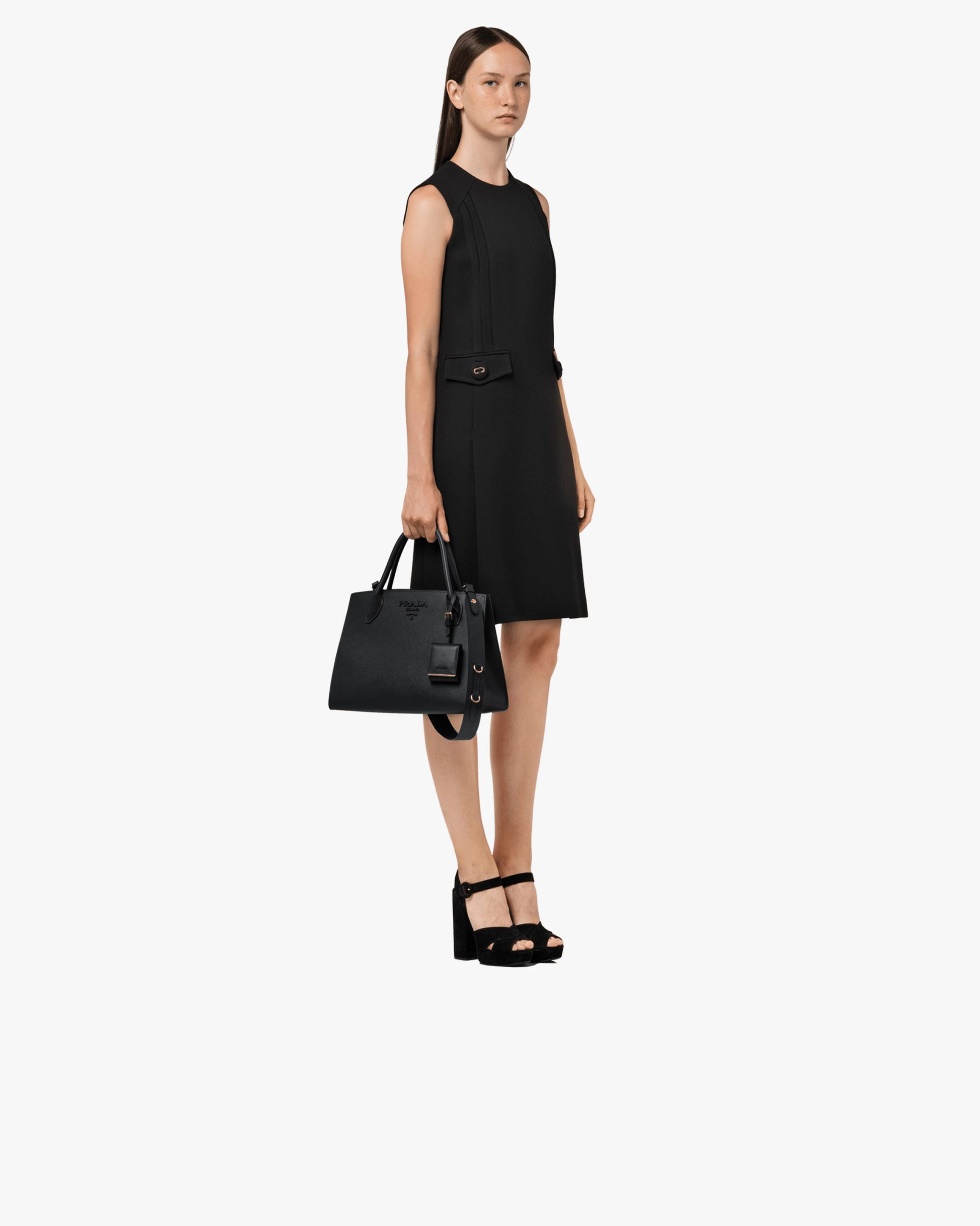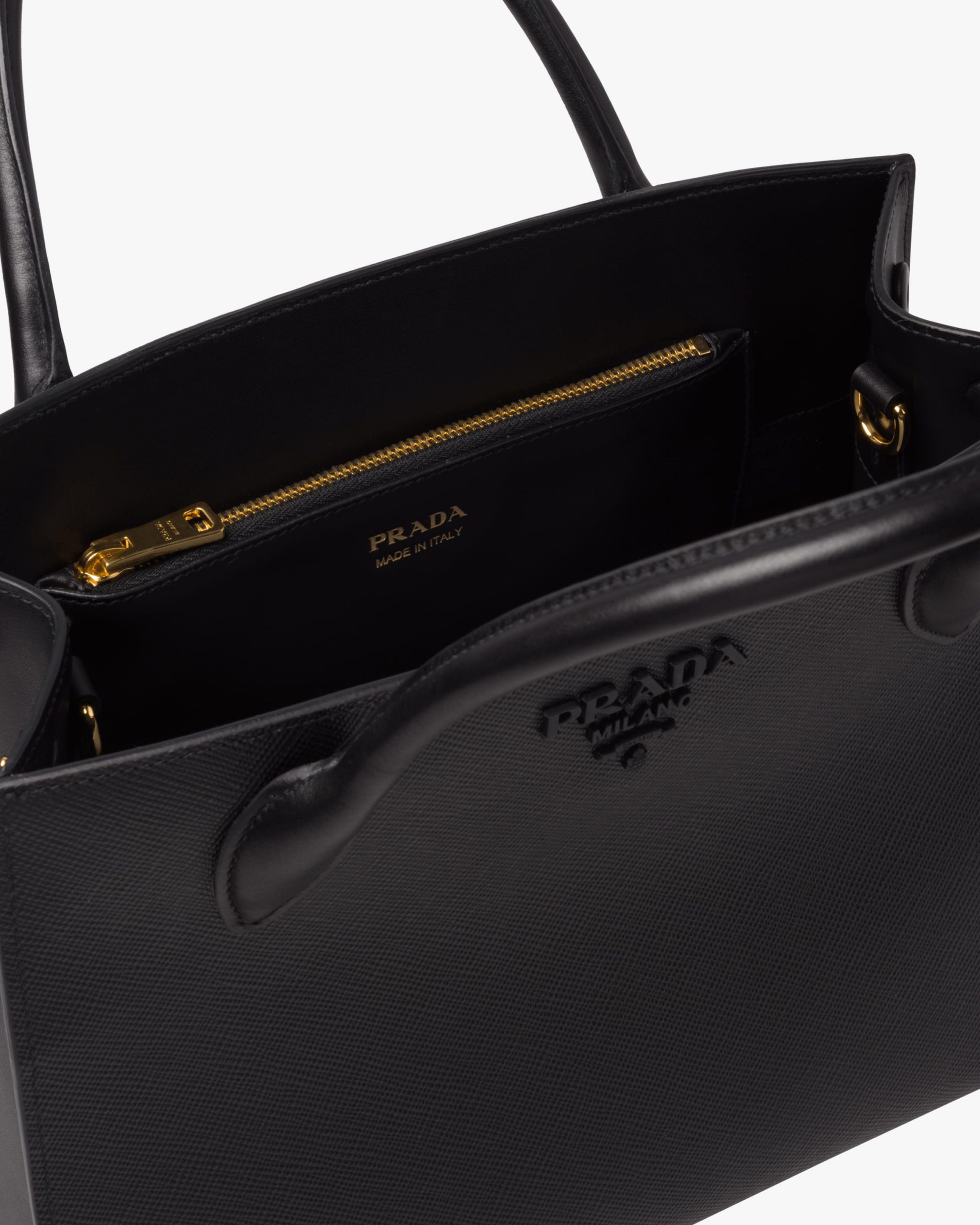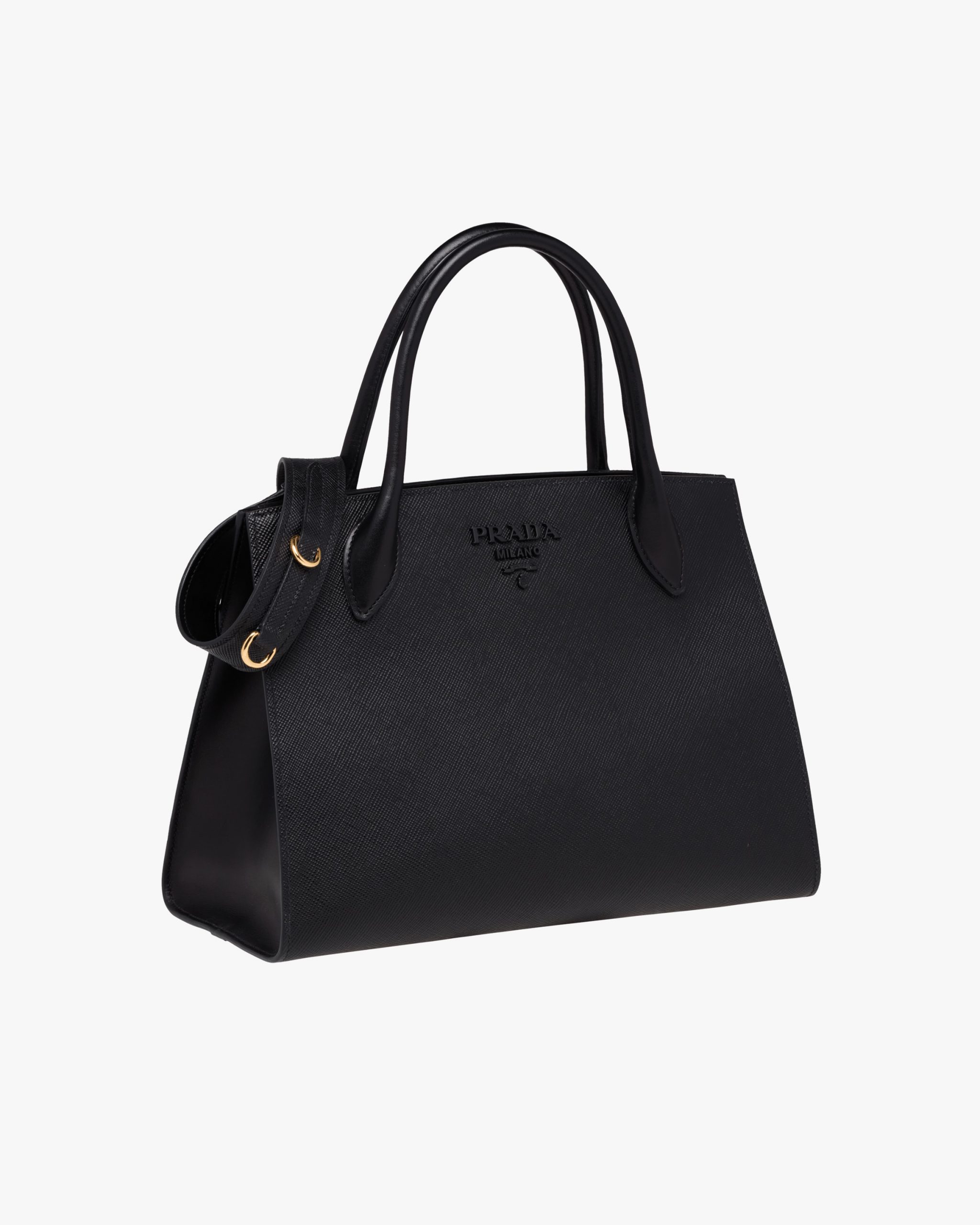 As its name suggests, the Prada Monochrome bag showcases one shade. The Prada logo features a tone-on-tone finish and the Saffiano and calf leathers are in matching shades. The gold-toned hardware adds a subtle accent.