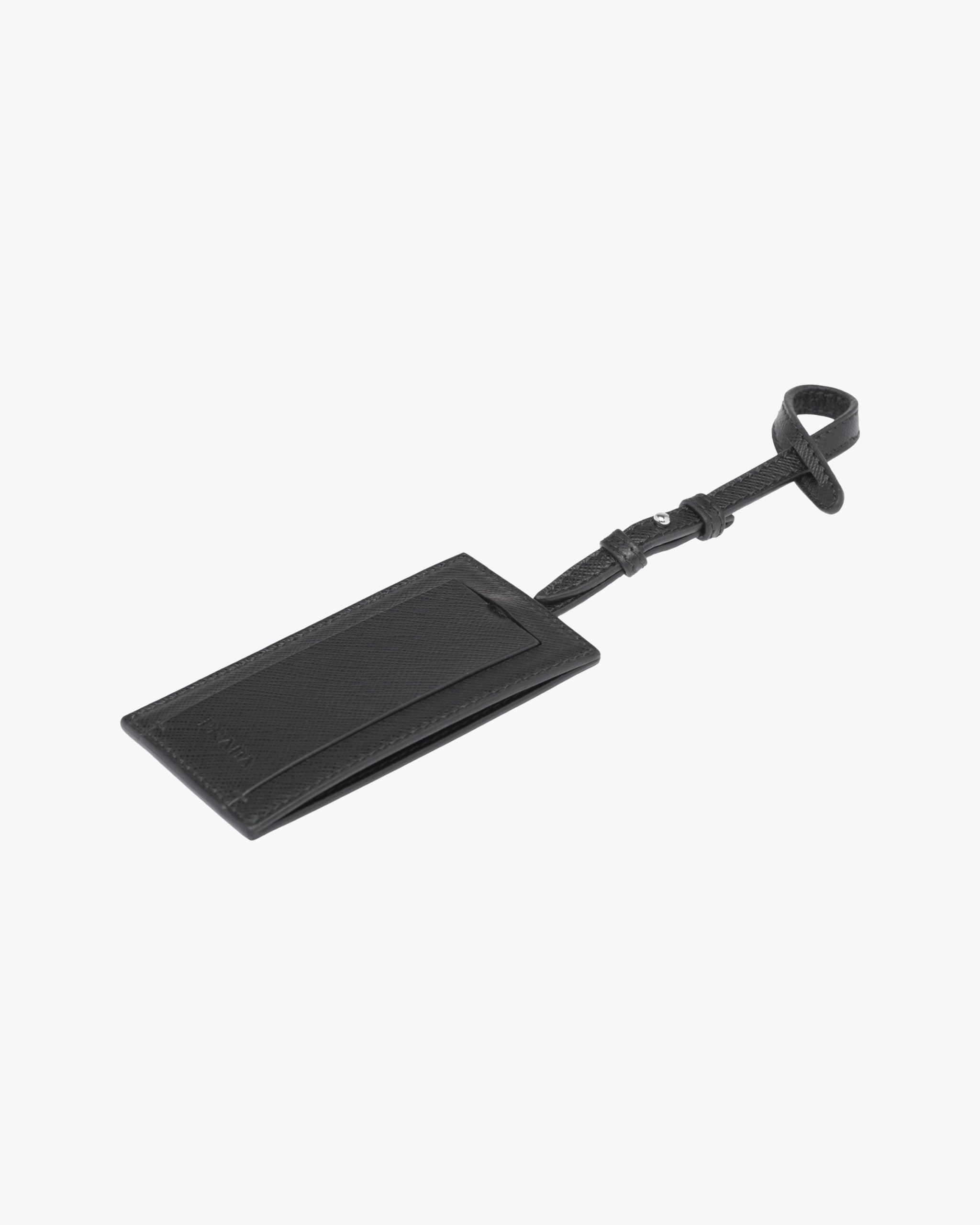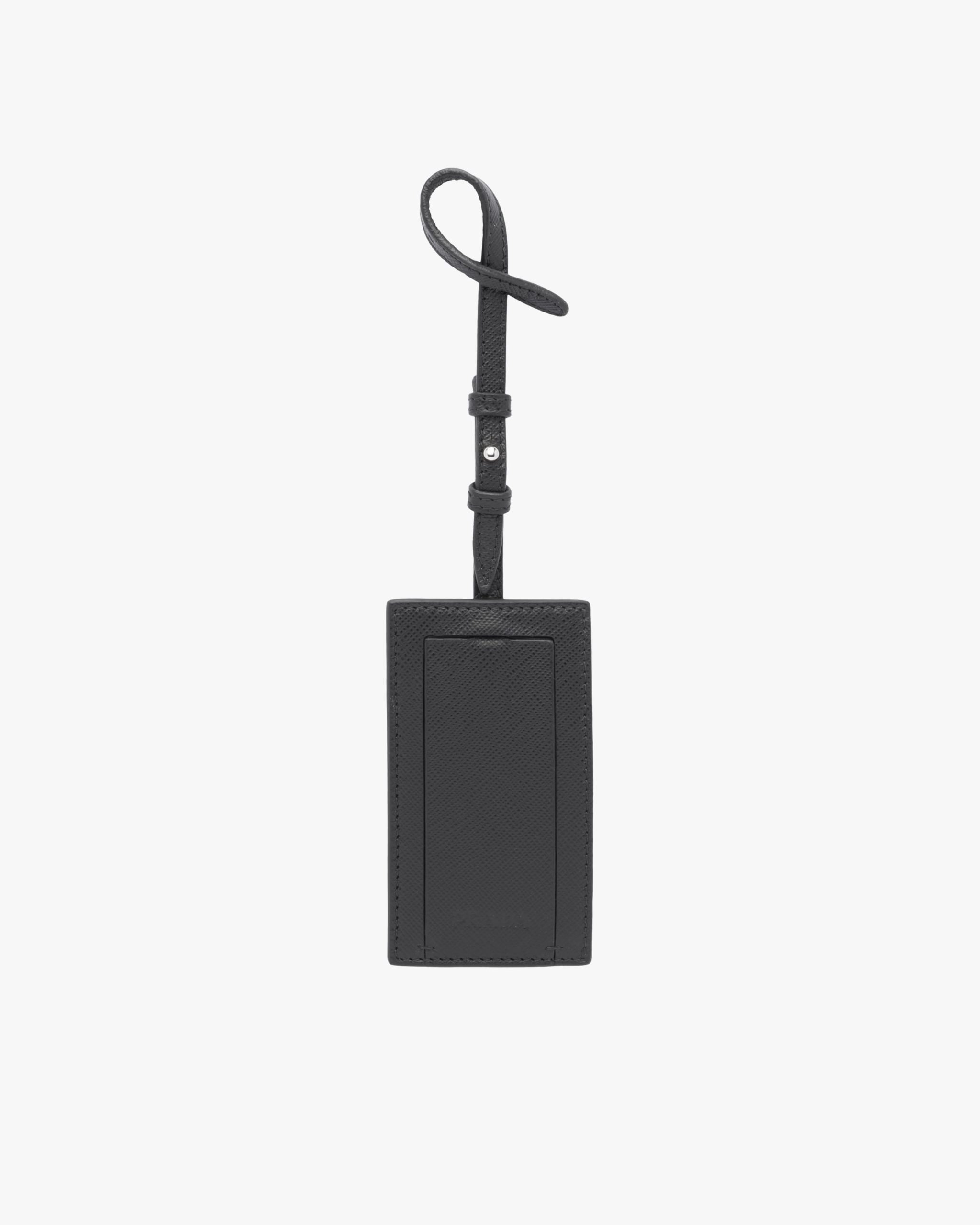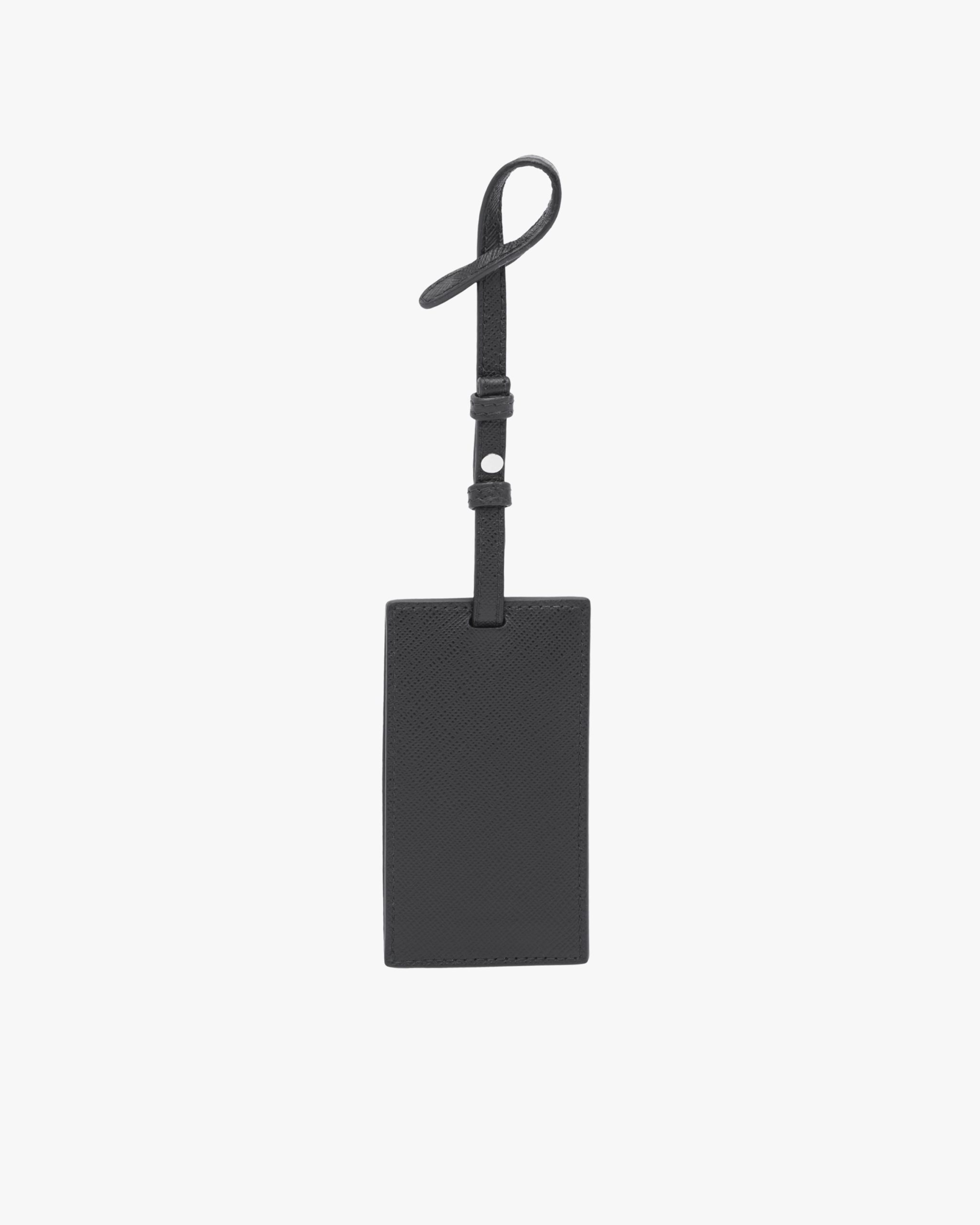 Saffiano leather name tag customizable with My Character metal elements.