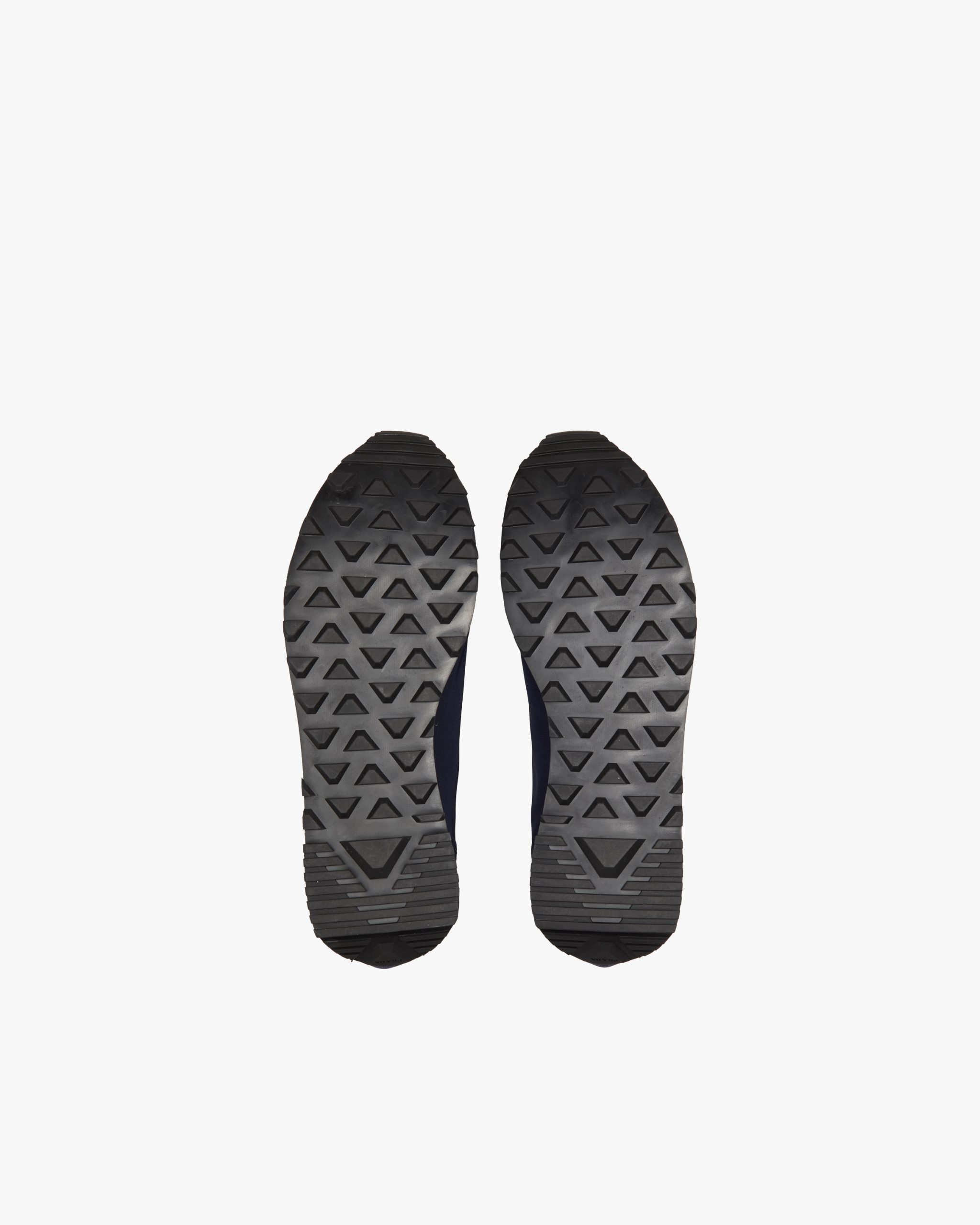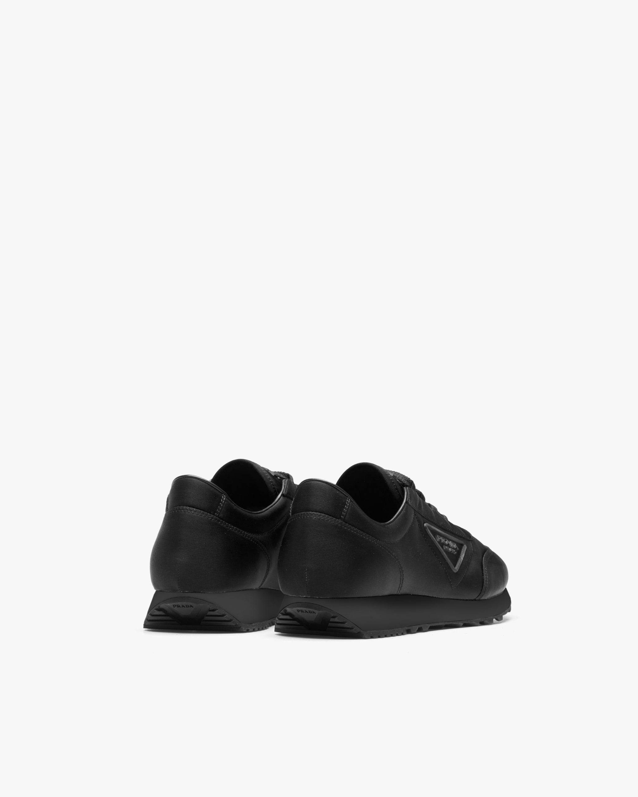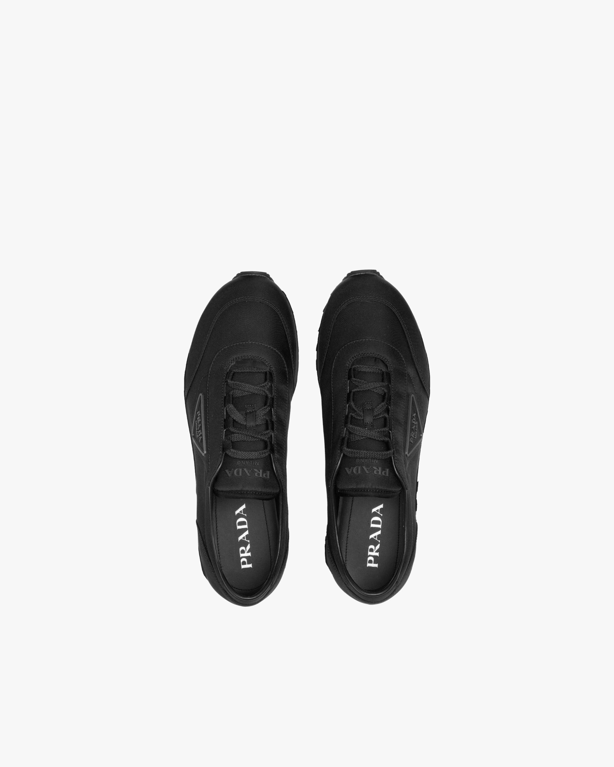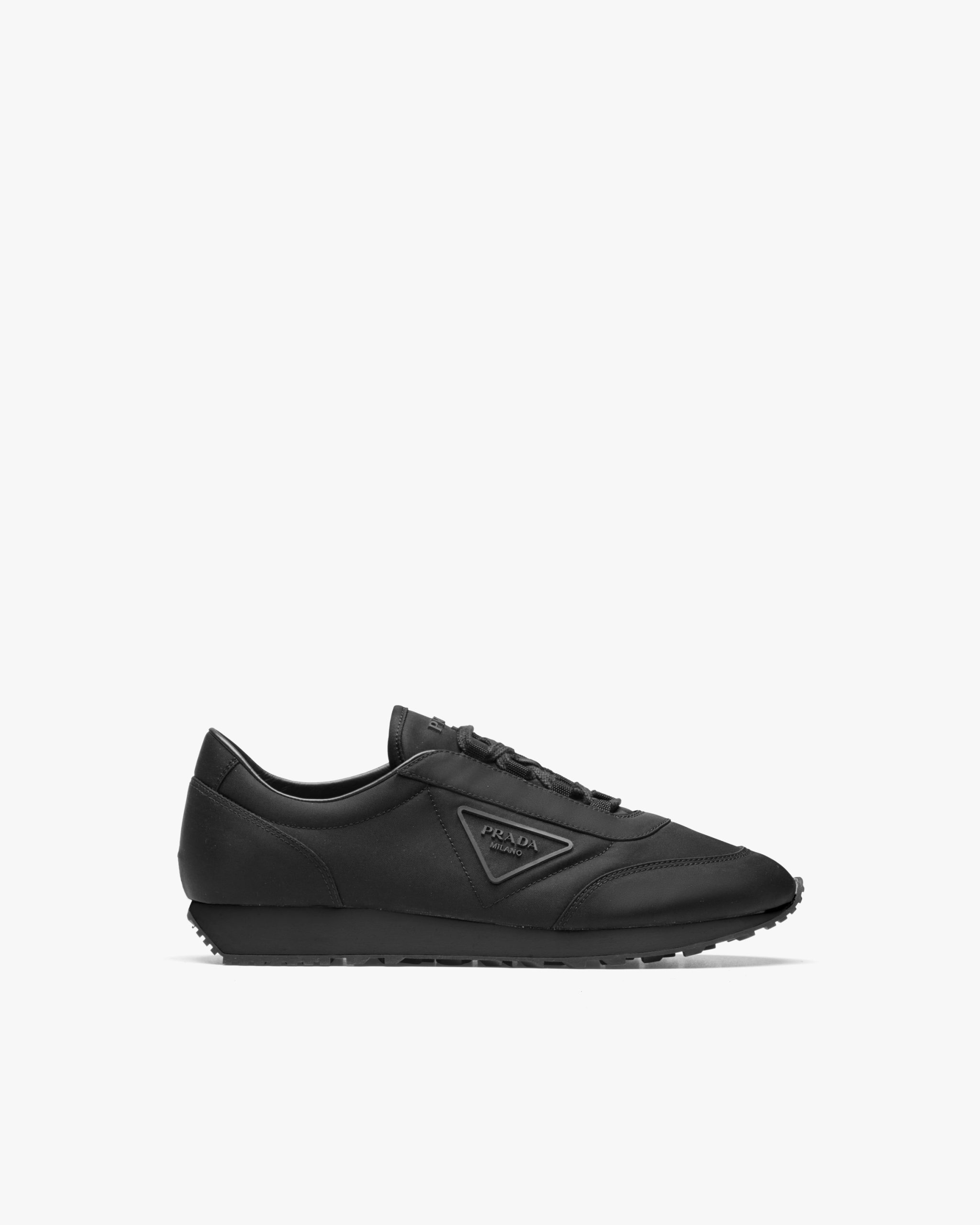 These nylon gabardine sneakers from the new Prada collectsion recall a sporty seventies silhouette. The logo in relief animates the design of the shoe.