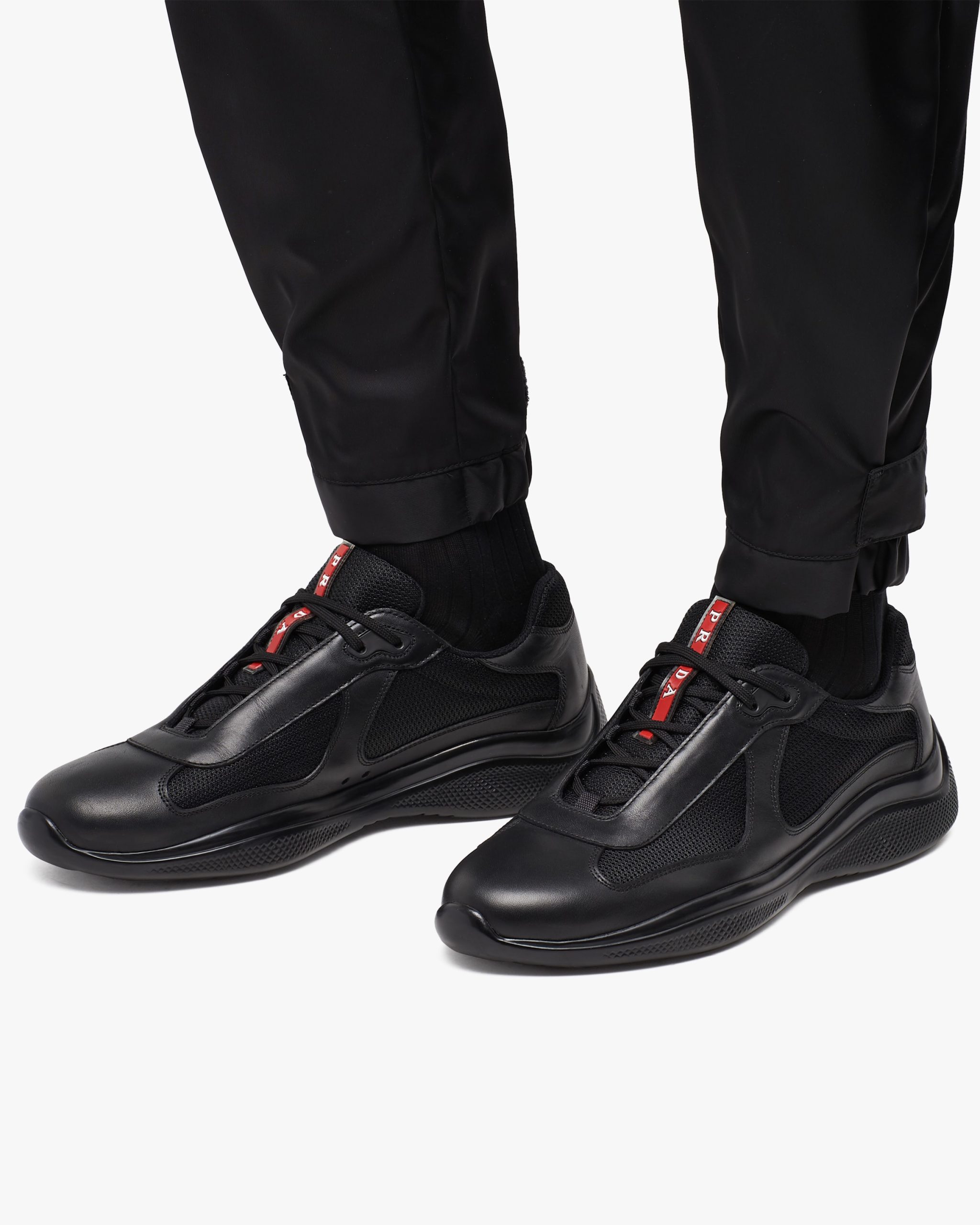 These iconic leather and technical fabric sneakers designed for the Luna Rossa crew have a sporty, contemporary design and restyled details and lines.