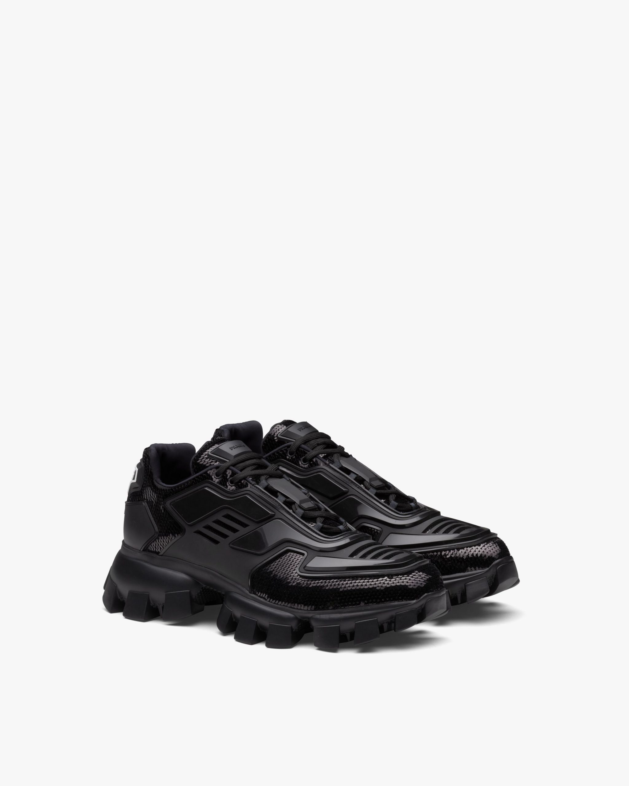 The unusual three-dimensional effect of the upper, created by the injected rubber overlay, characterizes these Cloudbust Thunder sneakers with complex volumes, enhanced by a sea of shiny sequins that embellish the shoe.