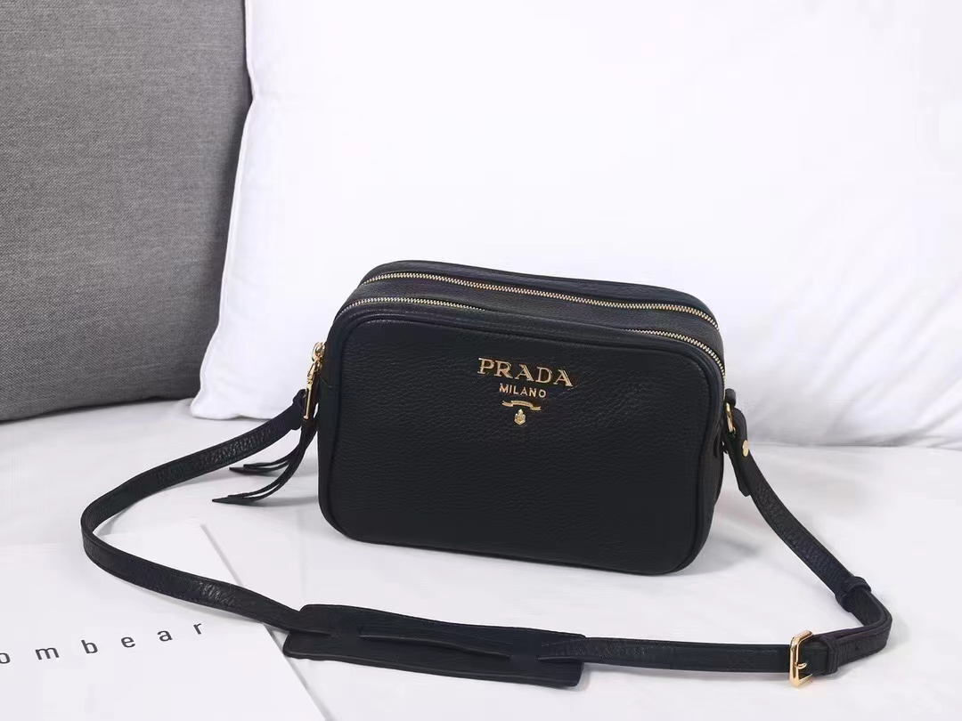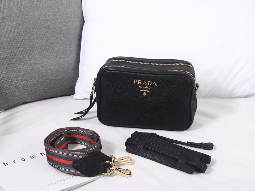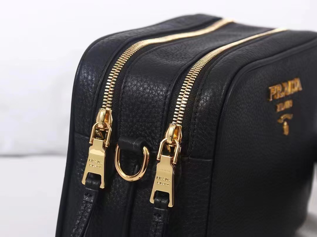 Black Prada Flou leather bag with shoulder strap Gold Hardware