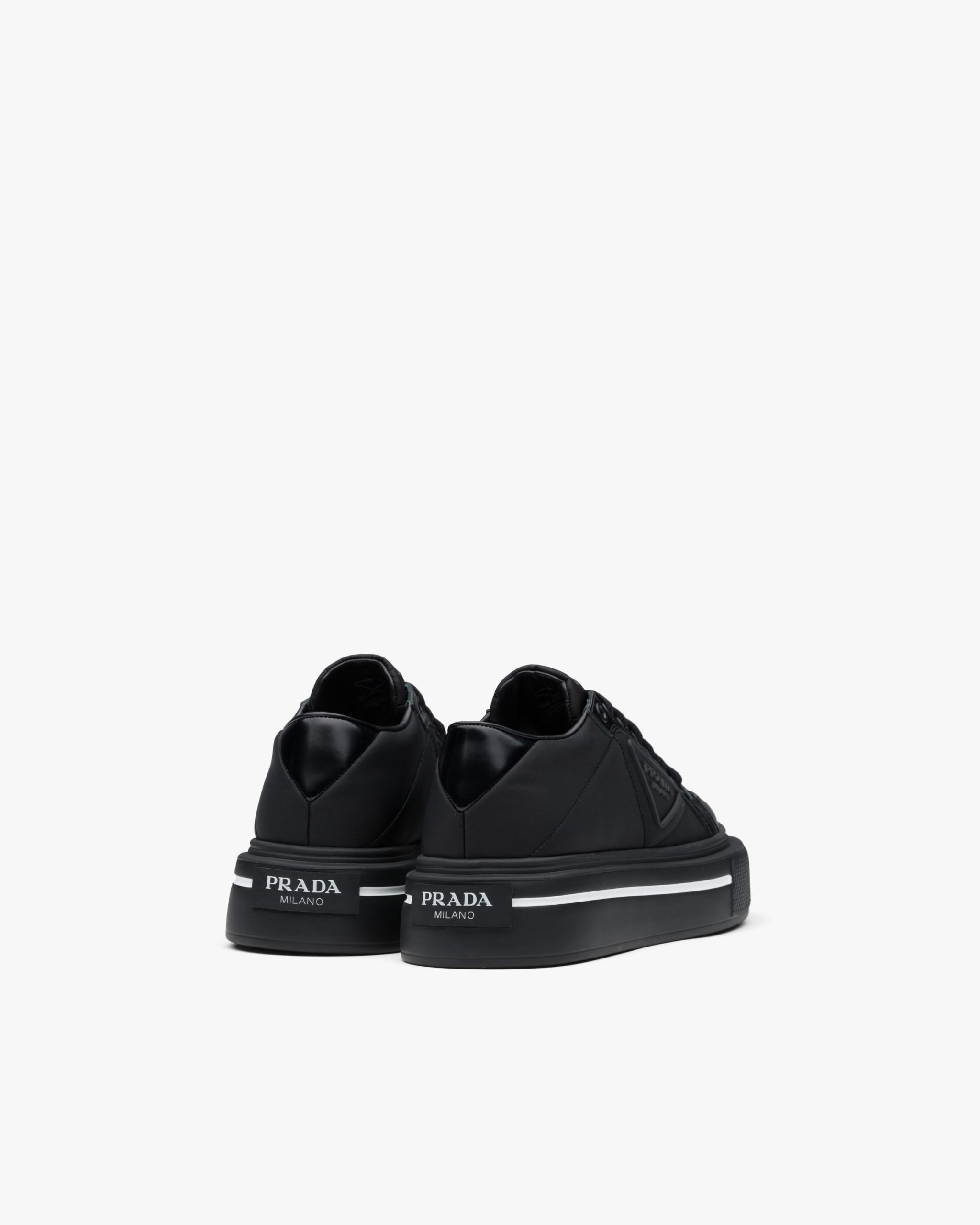Defined by their thick platform sole, these sneakers combine brushed leather and Re-Nylon: a regenerated nylon yarn (ECONYL?)produced from recycled, purified plastic trash collectsed in the ocean, fishing nets and textile waste fibers.