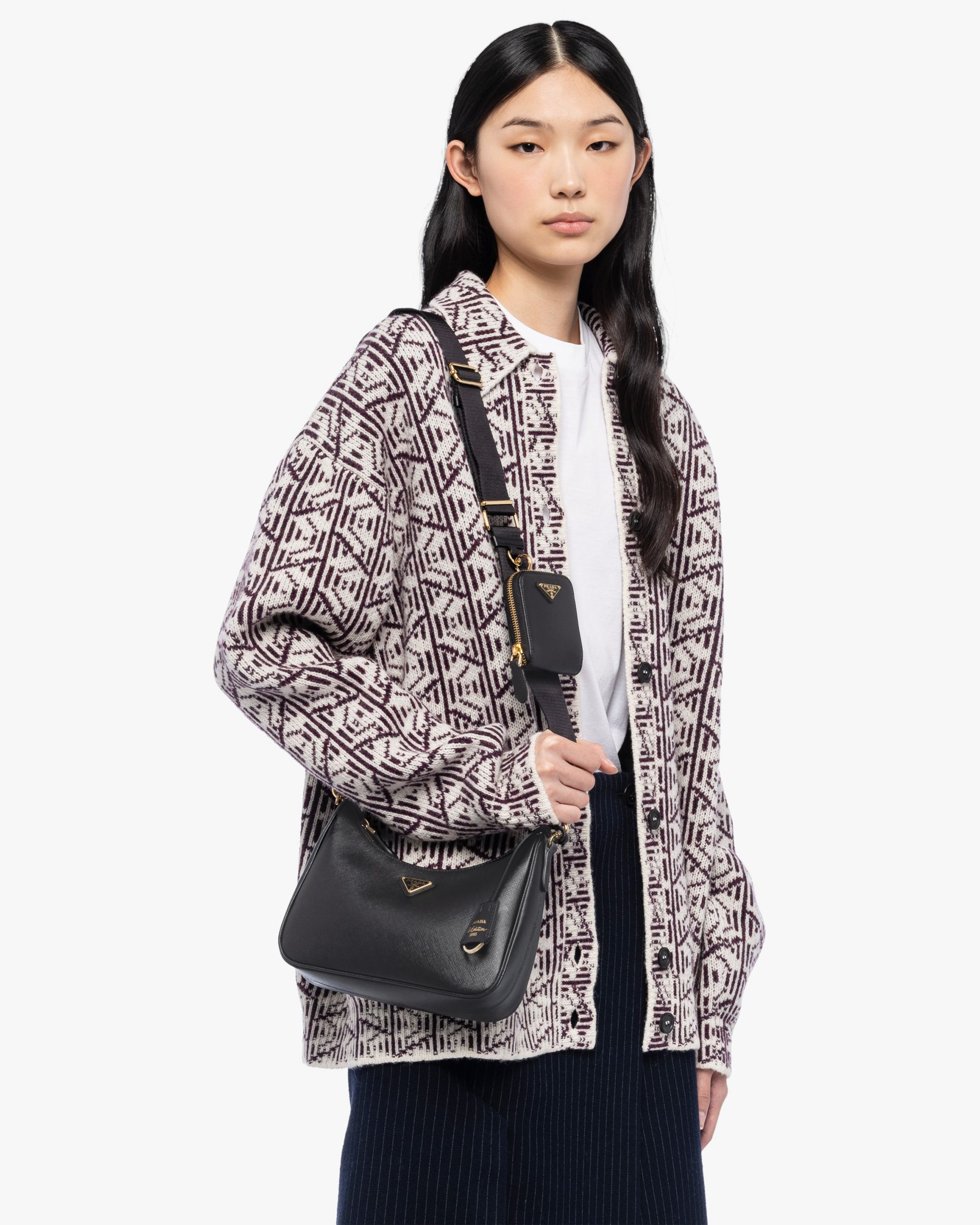 An iconic silhouette with sophisticated details that enhance the design: Prada transforms the classic shoulder bag, reinterpreting it in Saffiano leather with a cross-hatch motif that is a hallmark of the brand. The accessory is completed by a removable leather pouch and Re-Edition keychain, making the bag unique and functional.