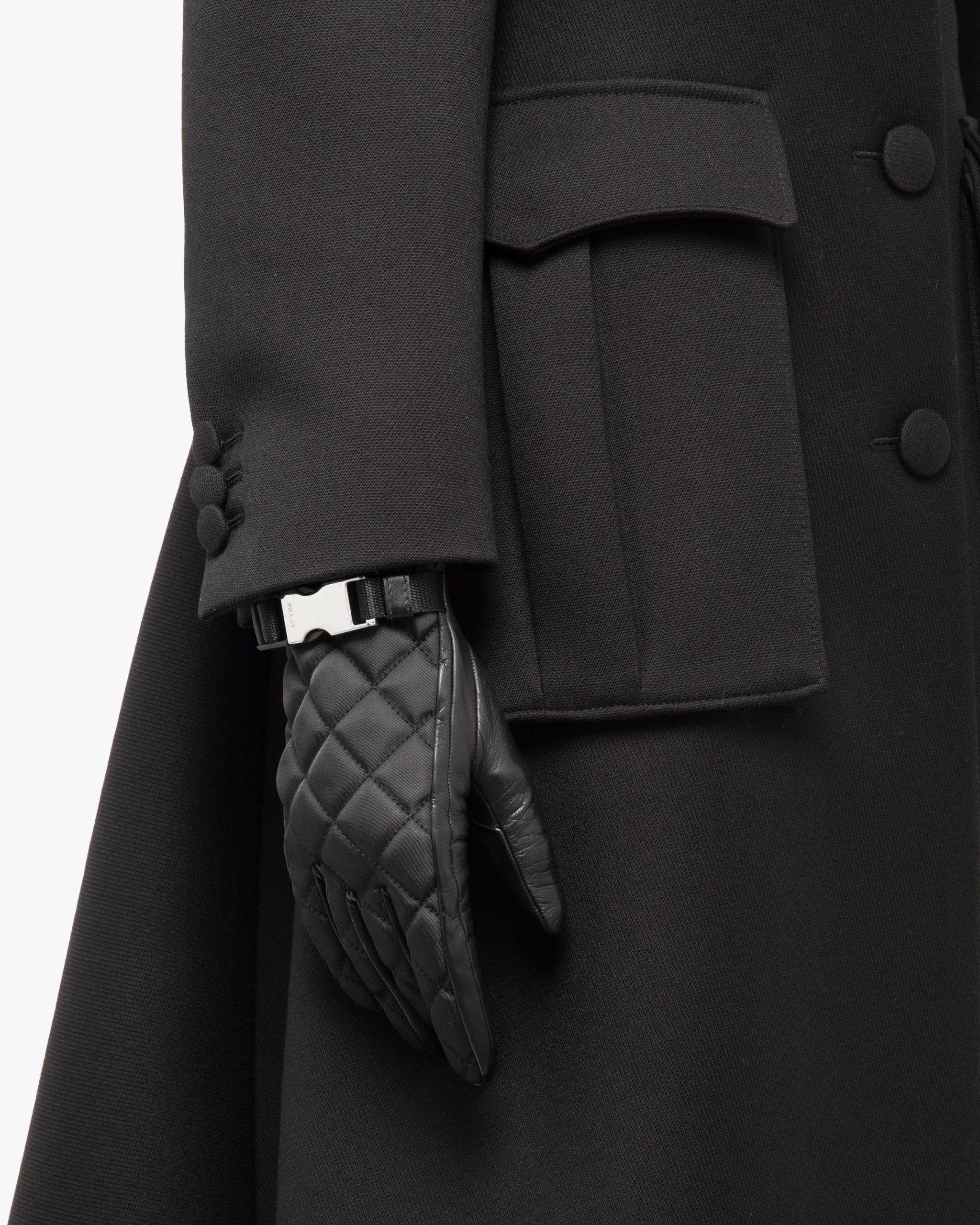 The quilted motif defines the refined design of these nylon and nappa leather gloves characterized by the metal side-release buckle on the wrist. Cashmere lining.