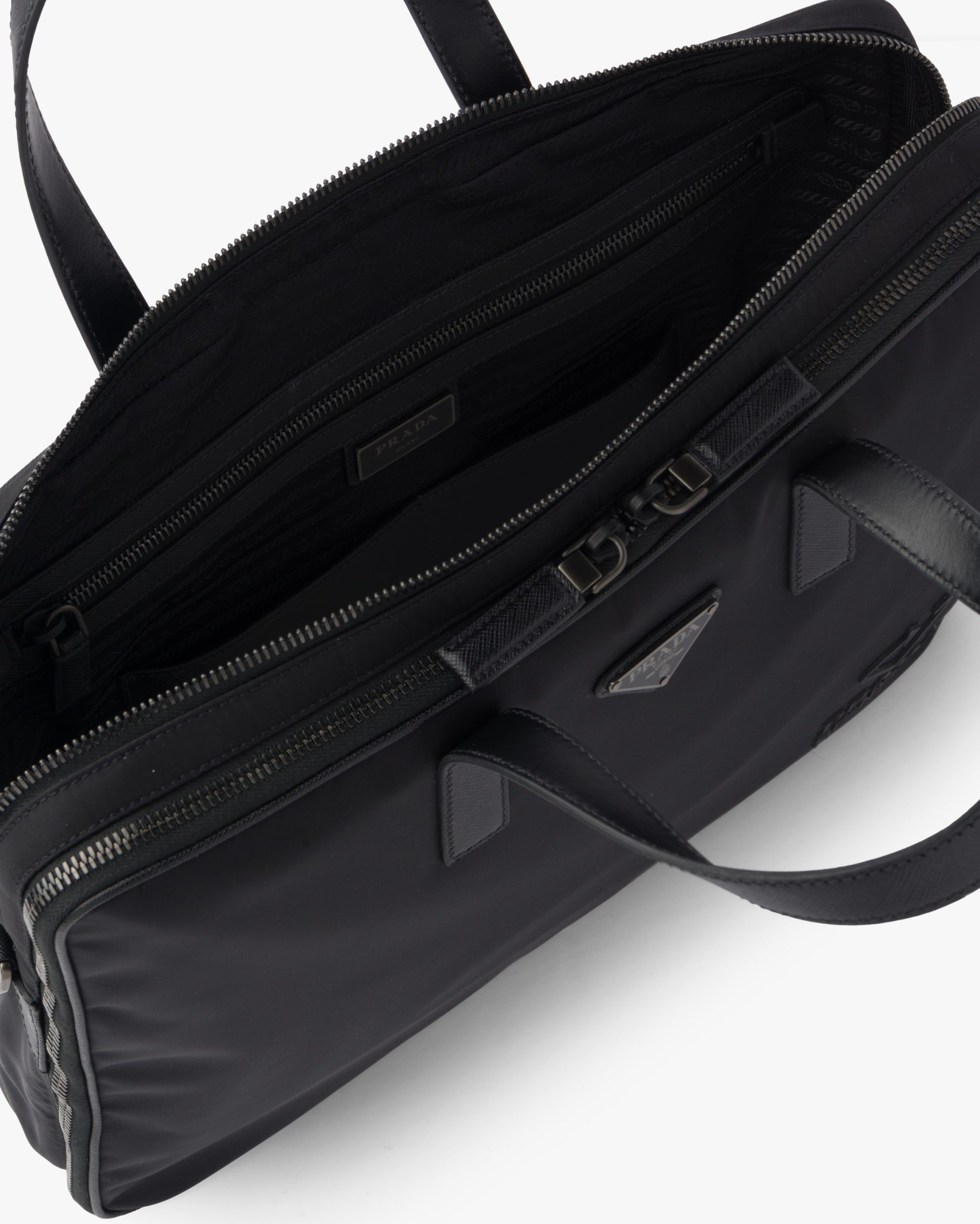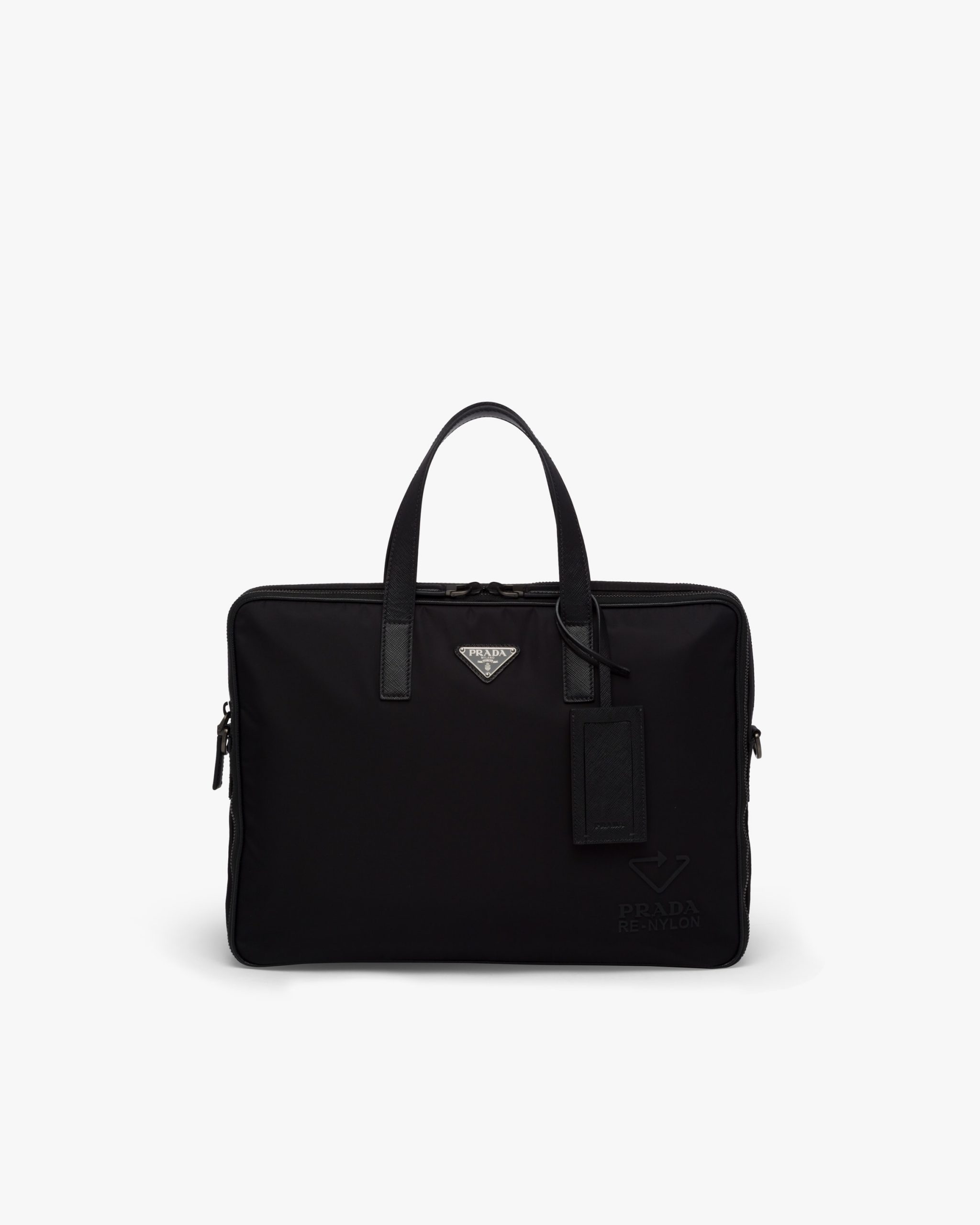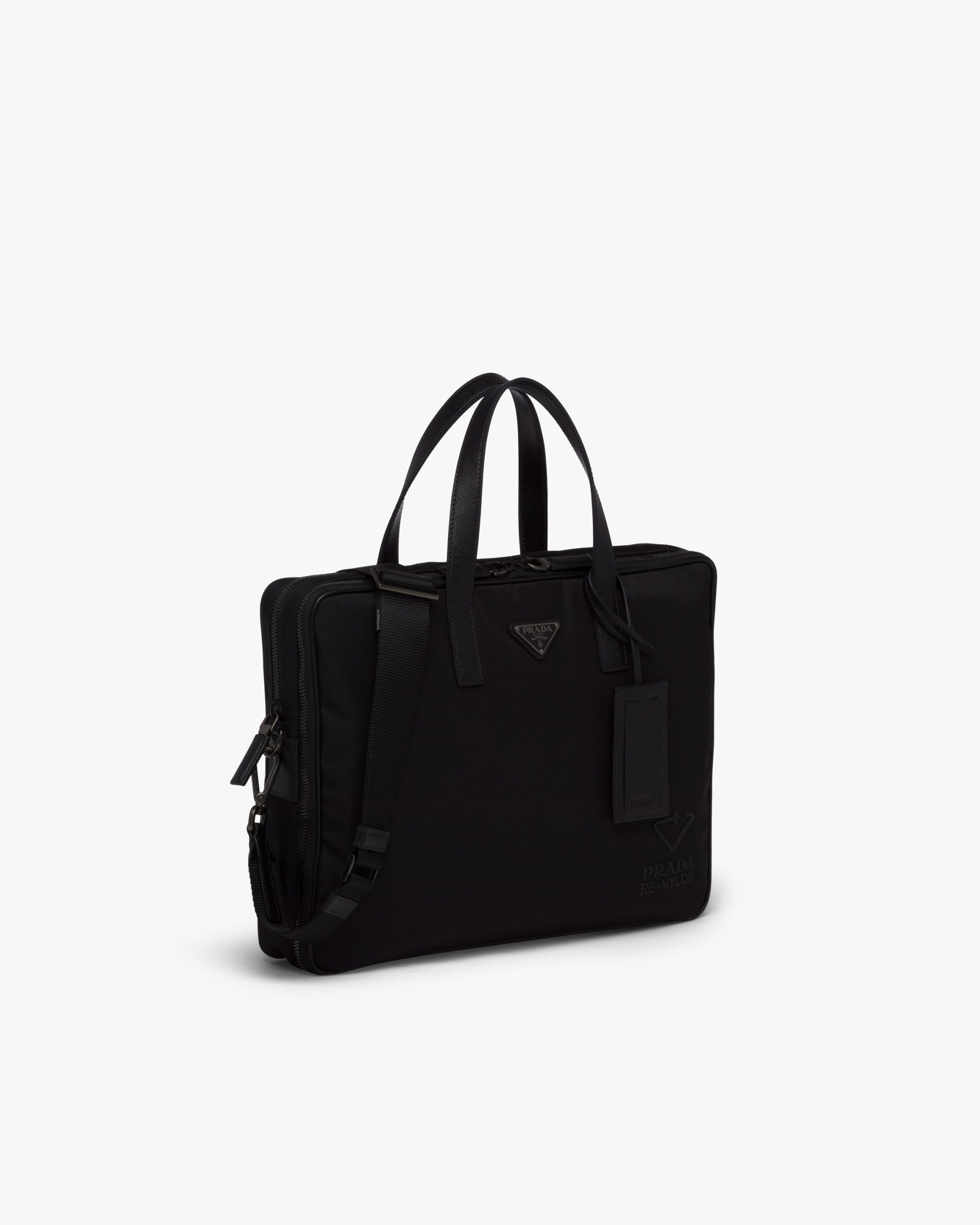 The classic men’s briefcase is redesigned in regenerated nylon for the new season. The Prada Re-Nylon logo decorates the accessory with a double handle and shoulder strap that stands out for its sophisticated details.