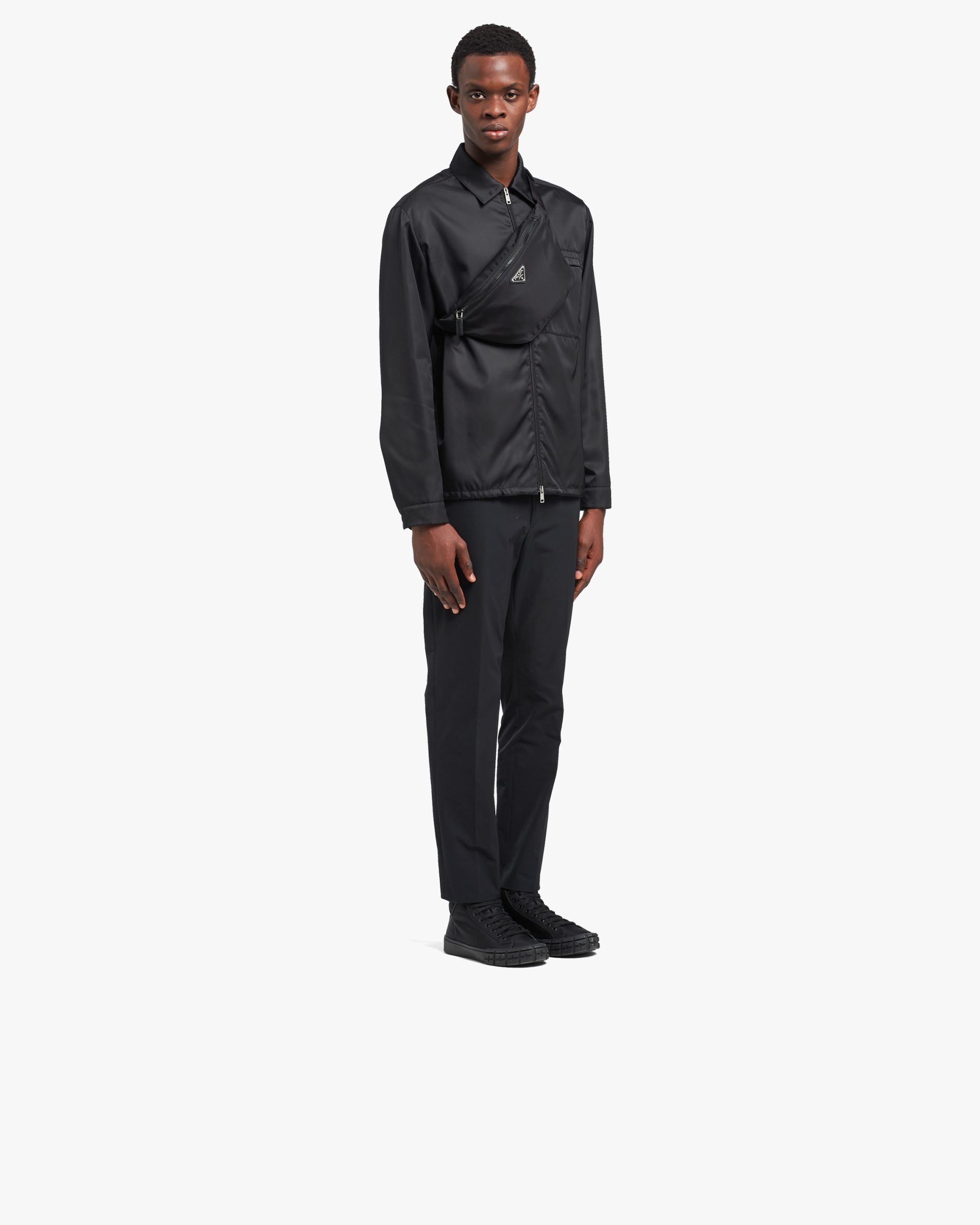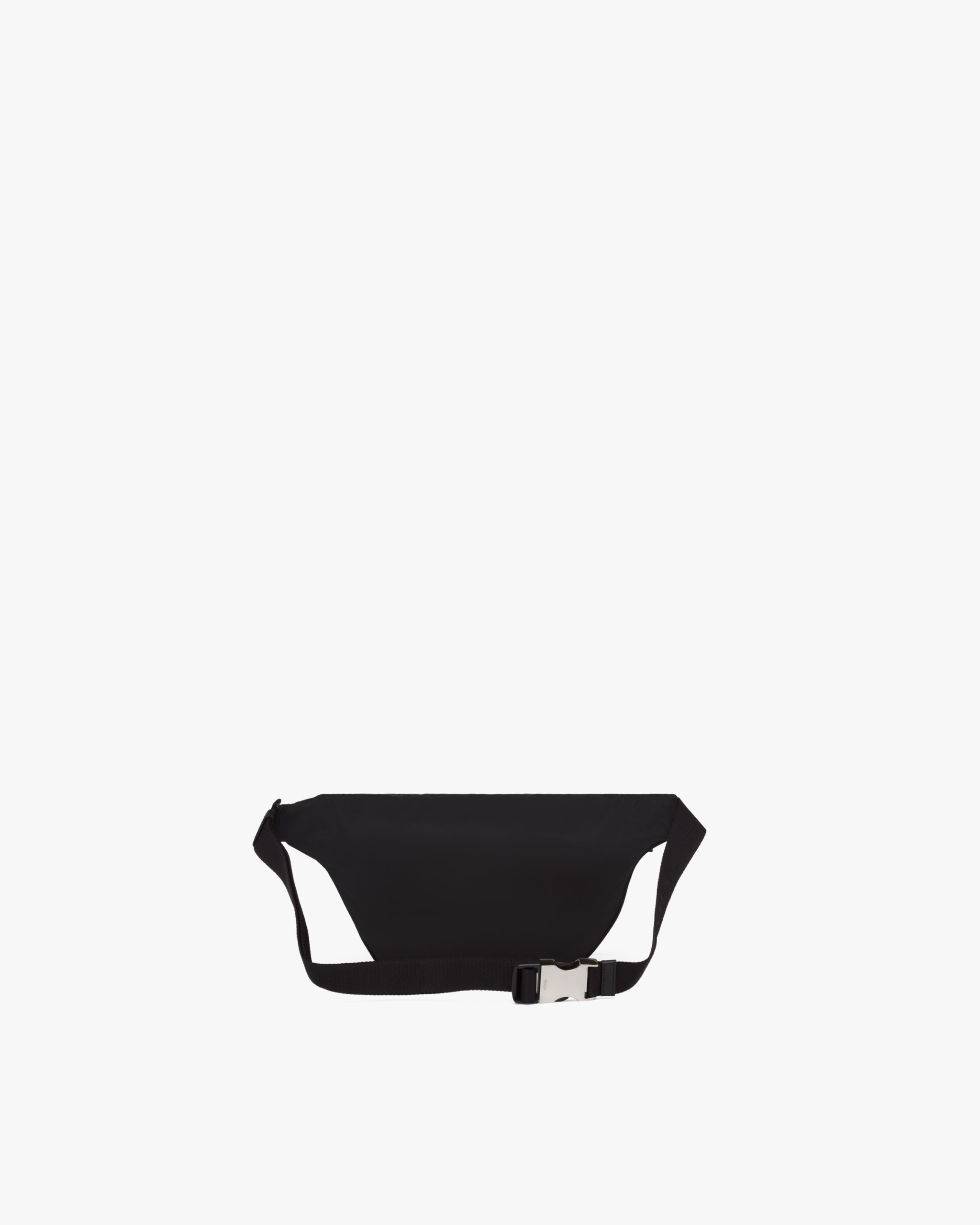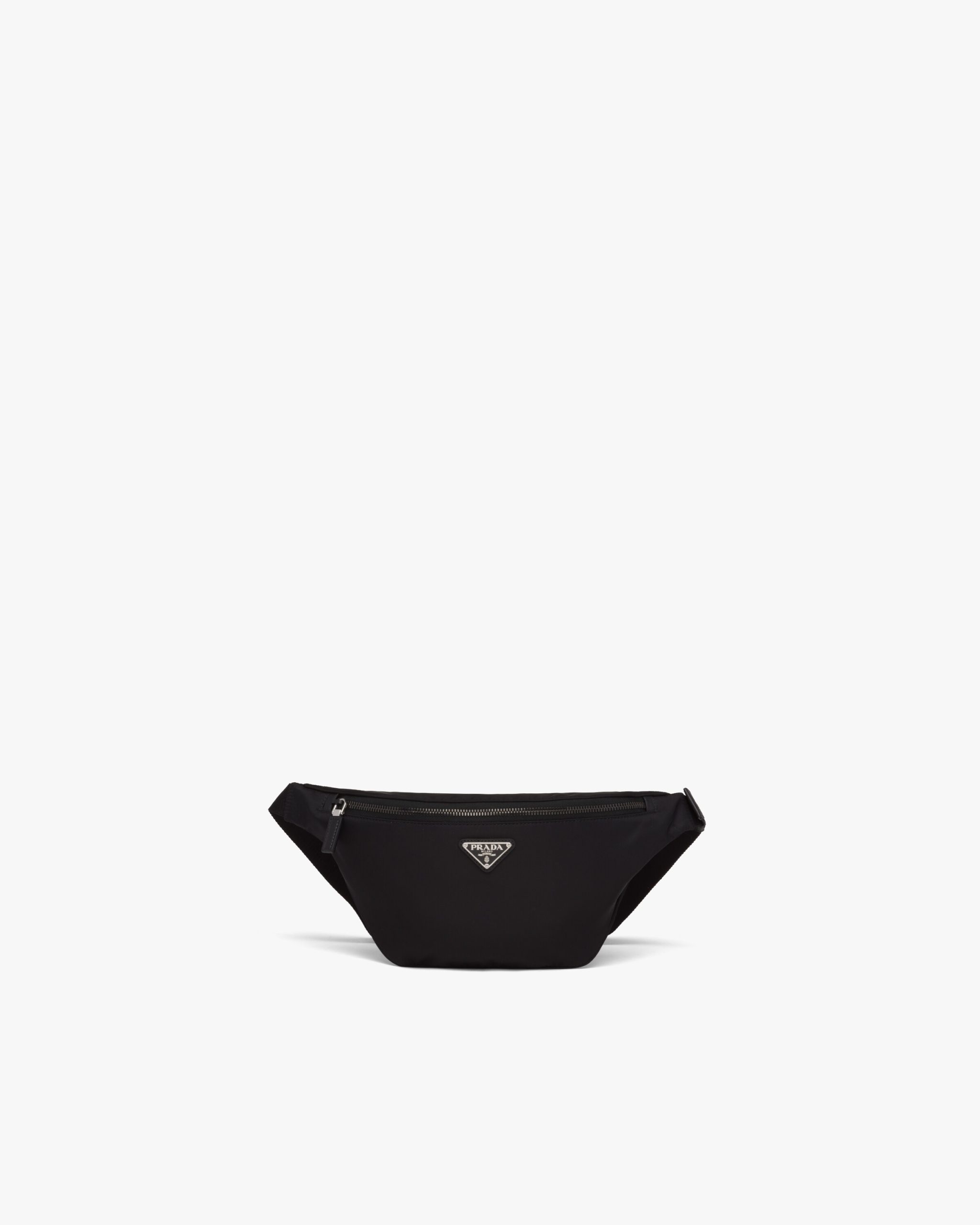 A contemporary design with references to the streetwear world defines this belt bag in Saffiano leather and Re-Nylon, a regenerated yarn produced from recycled plastic trash collectsed in the ocean. The accessory is decorated with a tonal Prada triangle logo. An adjustable nylon tape belt completes the design, defined by a zipper closure and logo-print Re-Nylon lining.