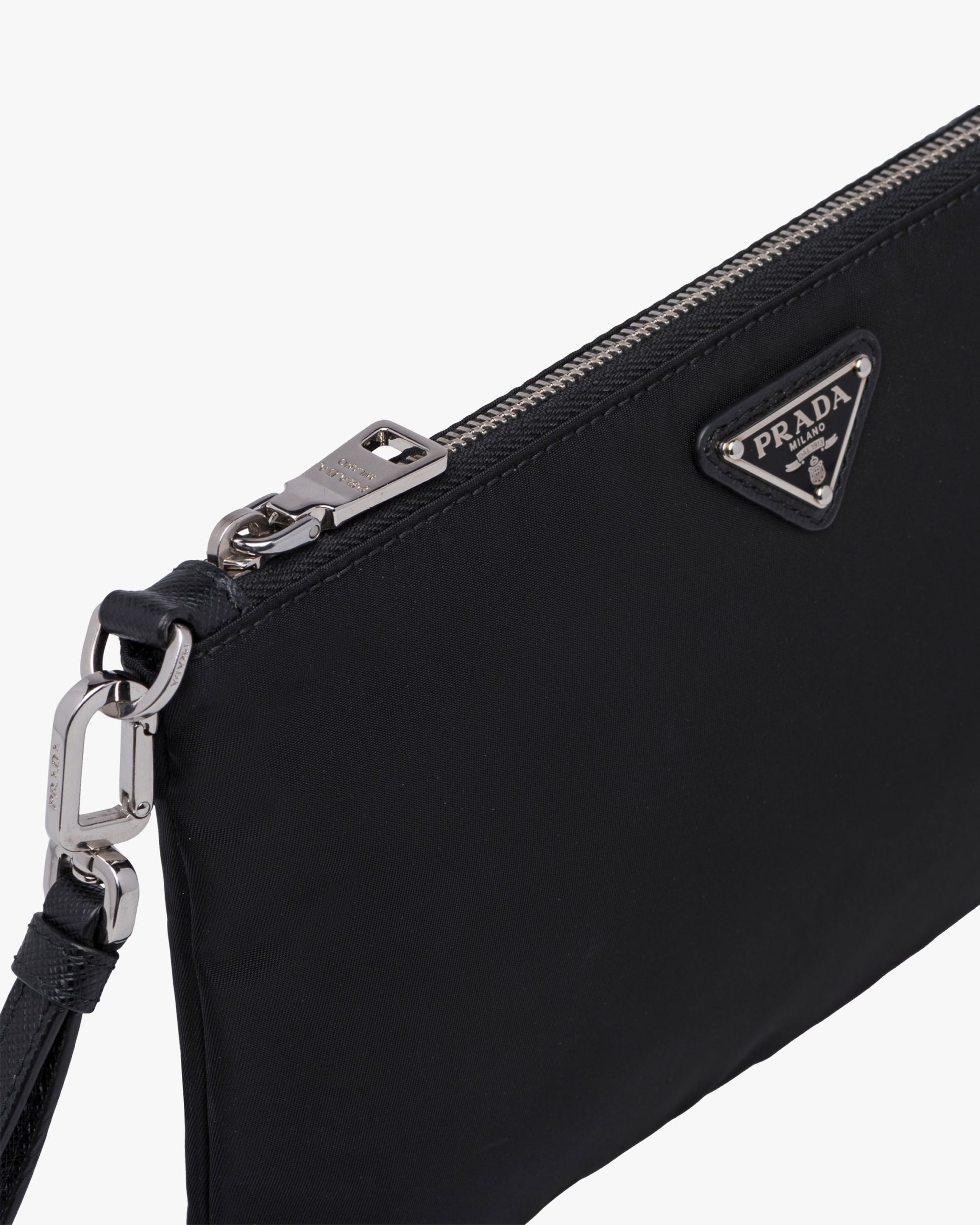 Black Re-Nylon and Saffiano leather pouch