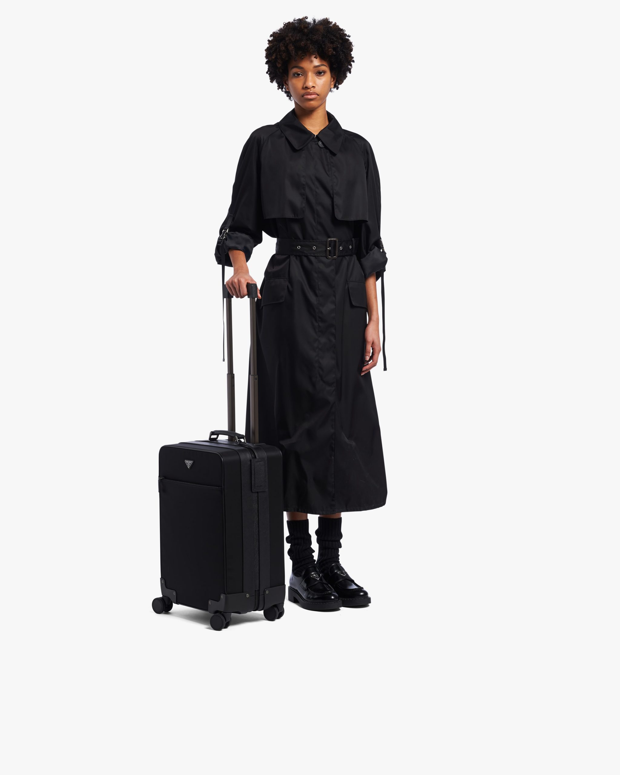 Black Re-Nylon and Saffiano leather trolley