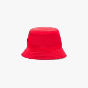 Adorned with the iconic enameled metal triangle logo, this bucket hat is made from Re-Nylon, a regenerated nylon yarn produced through a process of recycling and purifying plastics recovered from the ocean, as well as fishing nets and textile fibers.