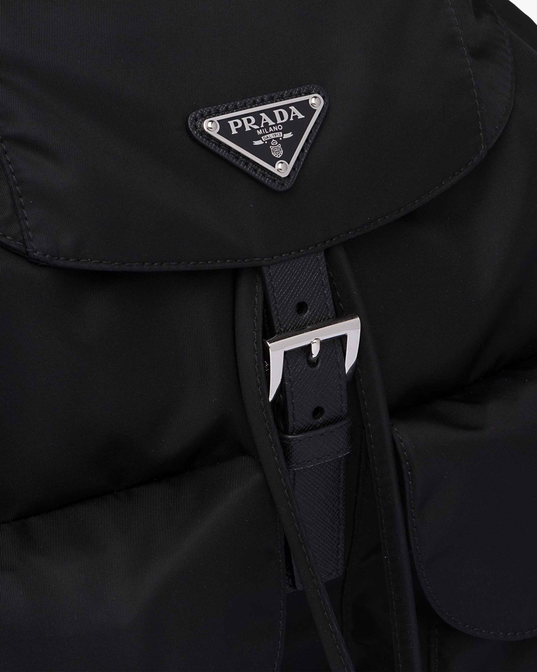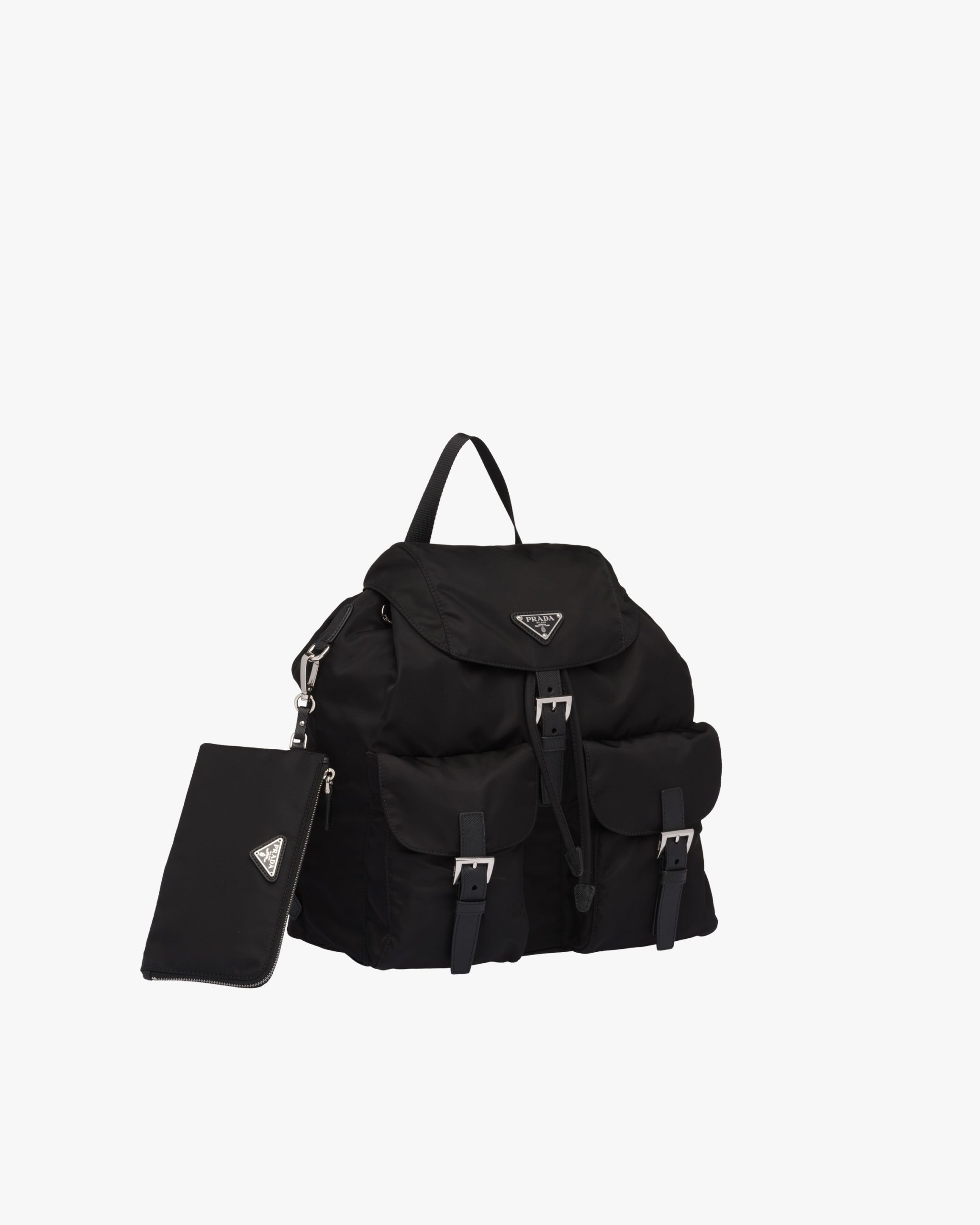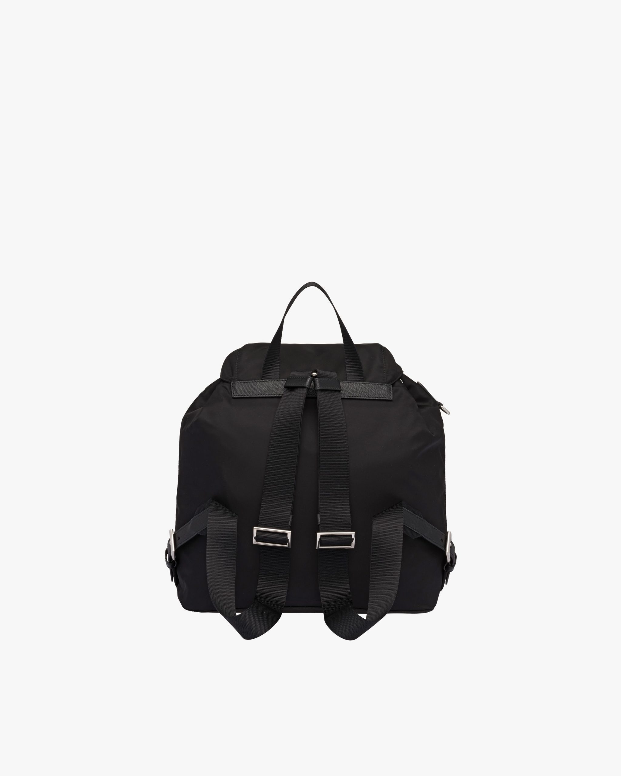 A blend of materials with modern allure and timeless charm are the choice for this iconic backpack of the brand that combines a base made of Re-Nylon, a sustainable evolution of the industrial fabric that is a Prada hallmark, and Saffiano leather details. The enameled metal triangle logo, an historic element reinterpreted each season on designs with contemporary charm, decorates the front.