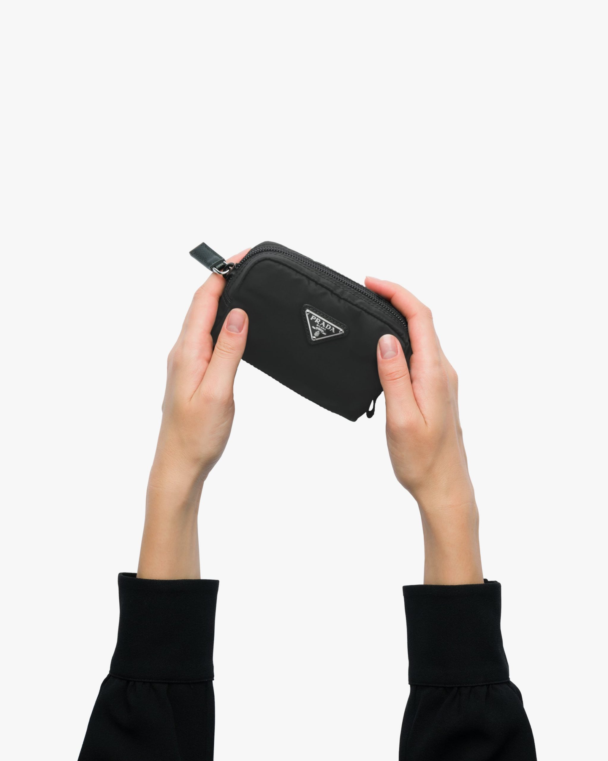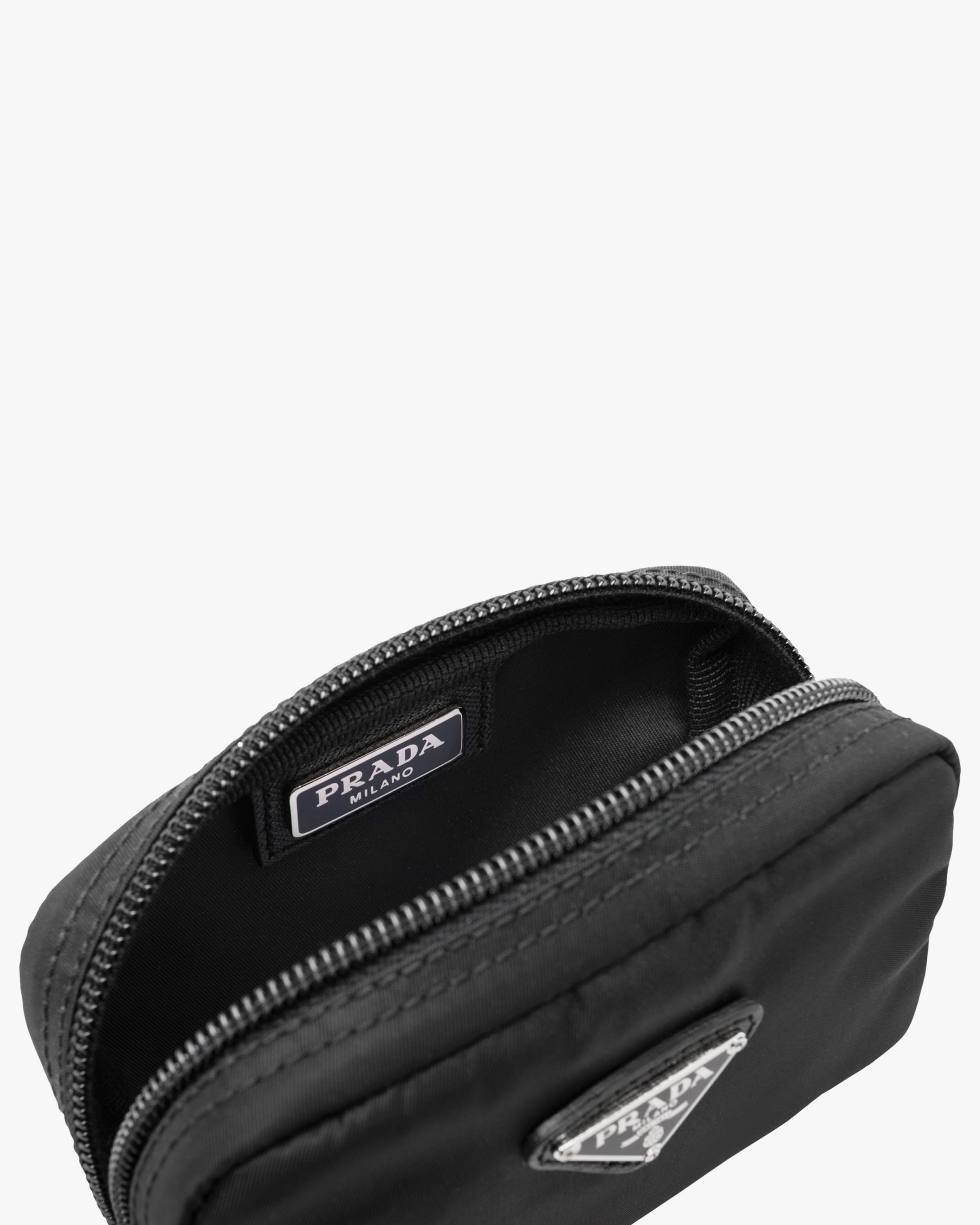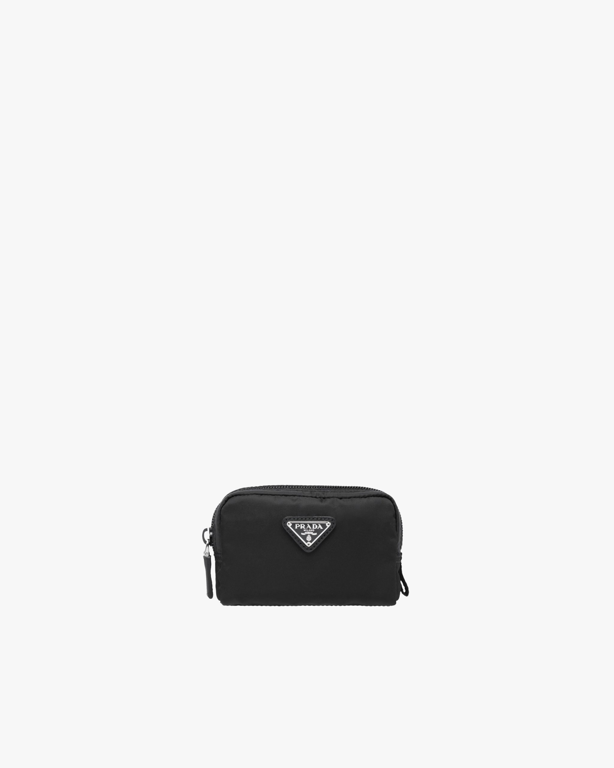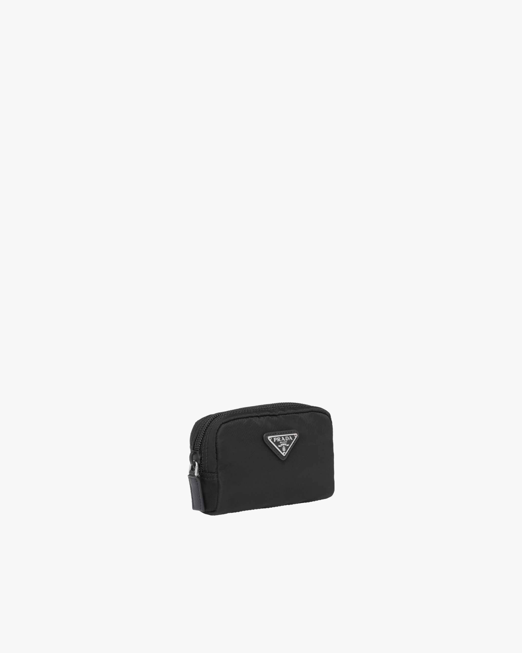 Characterized by a sleek line and emphasized by the iconic enameled metal triangle logo, this pouch is made of Prada’s innovative Re-Nylon fabric produced from recycled plastic materials collectsed in the ocean. The accessory has an external zipper pocket.