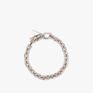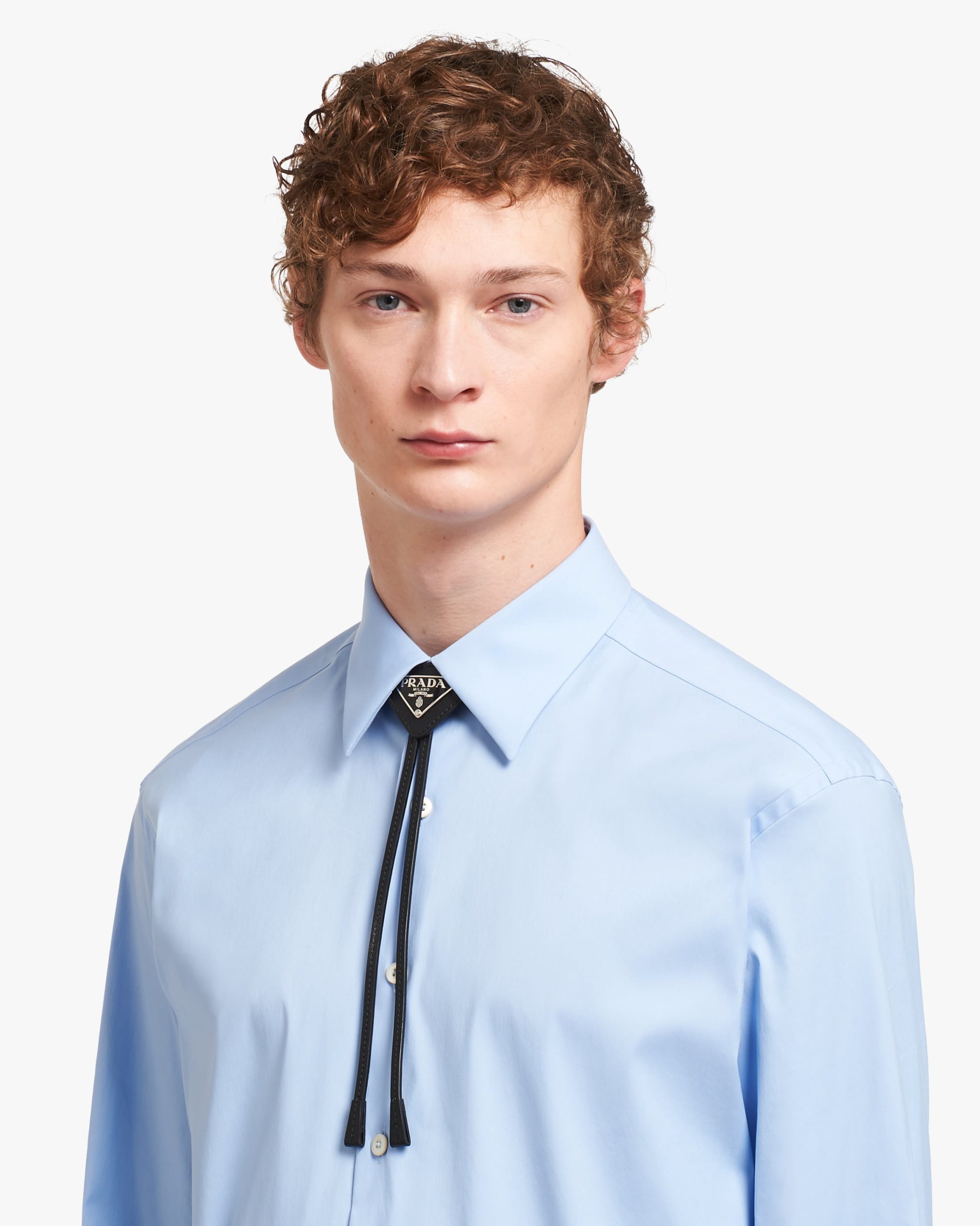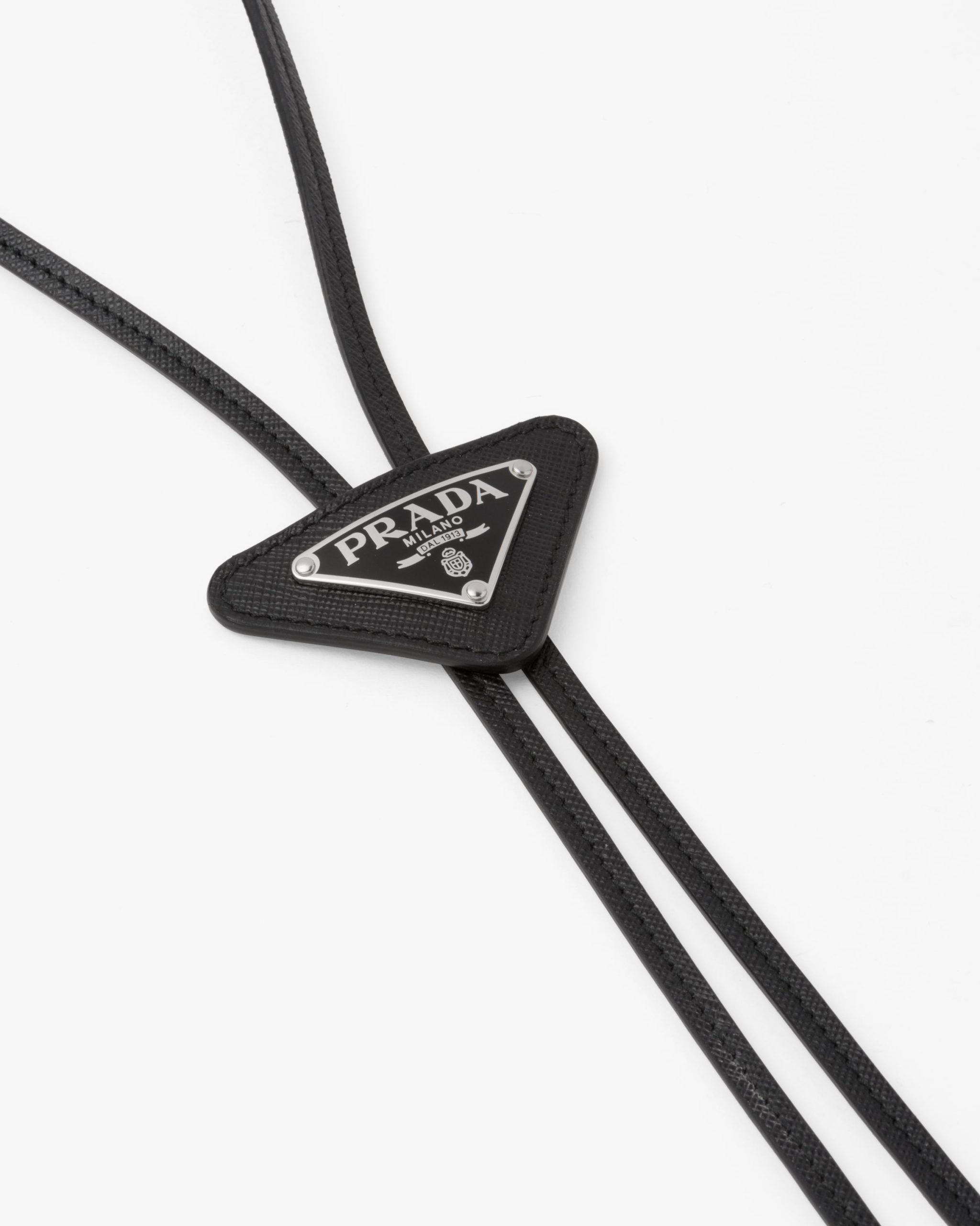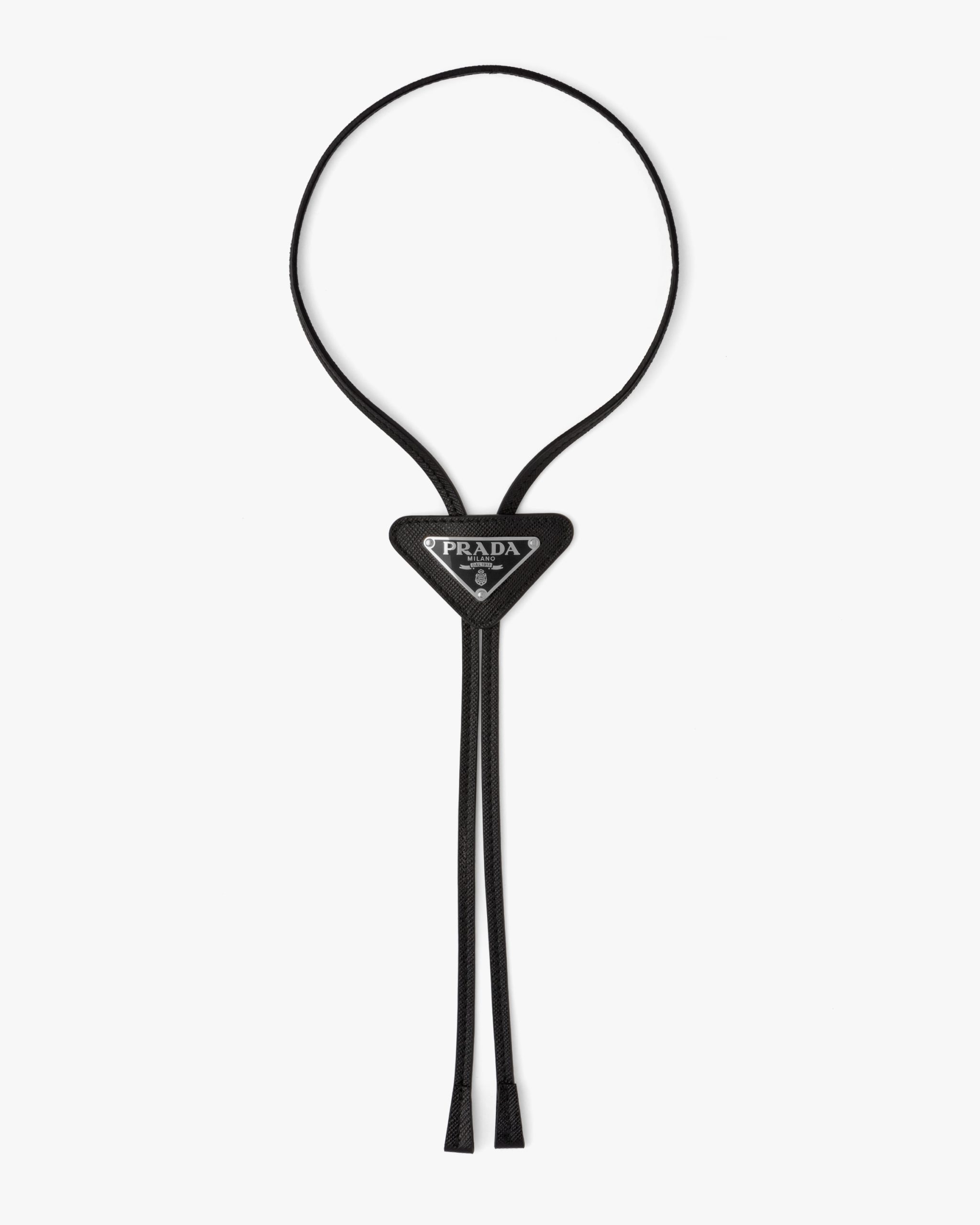 This Saffiano leather tie defined by the triangle logo is a must-have of the new season.