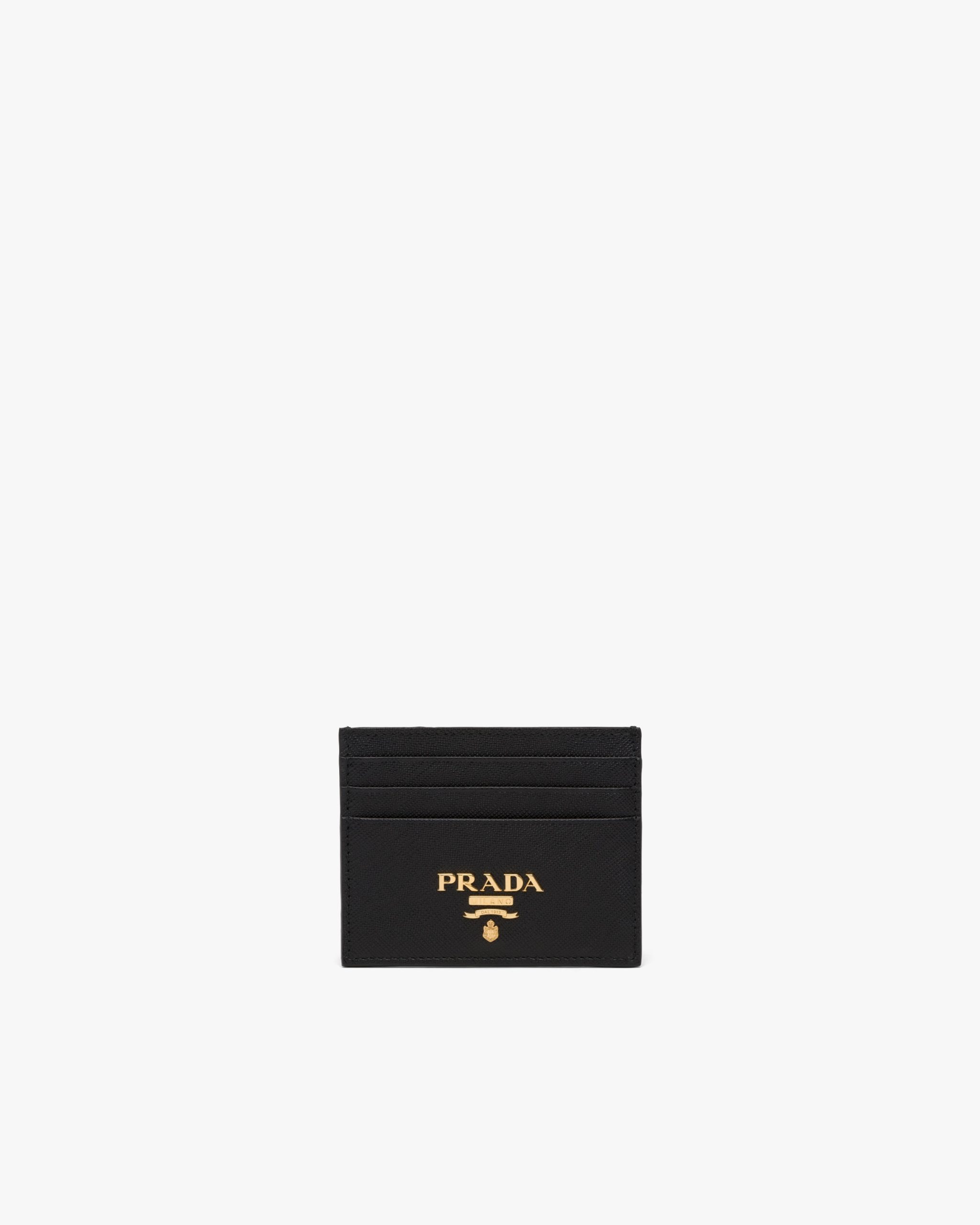 This Saffiano leather card holder expresses elegant simplicity. It is decorated with the metal logo.