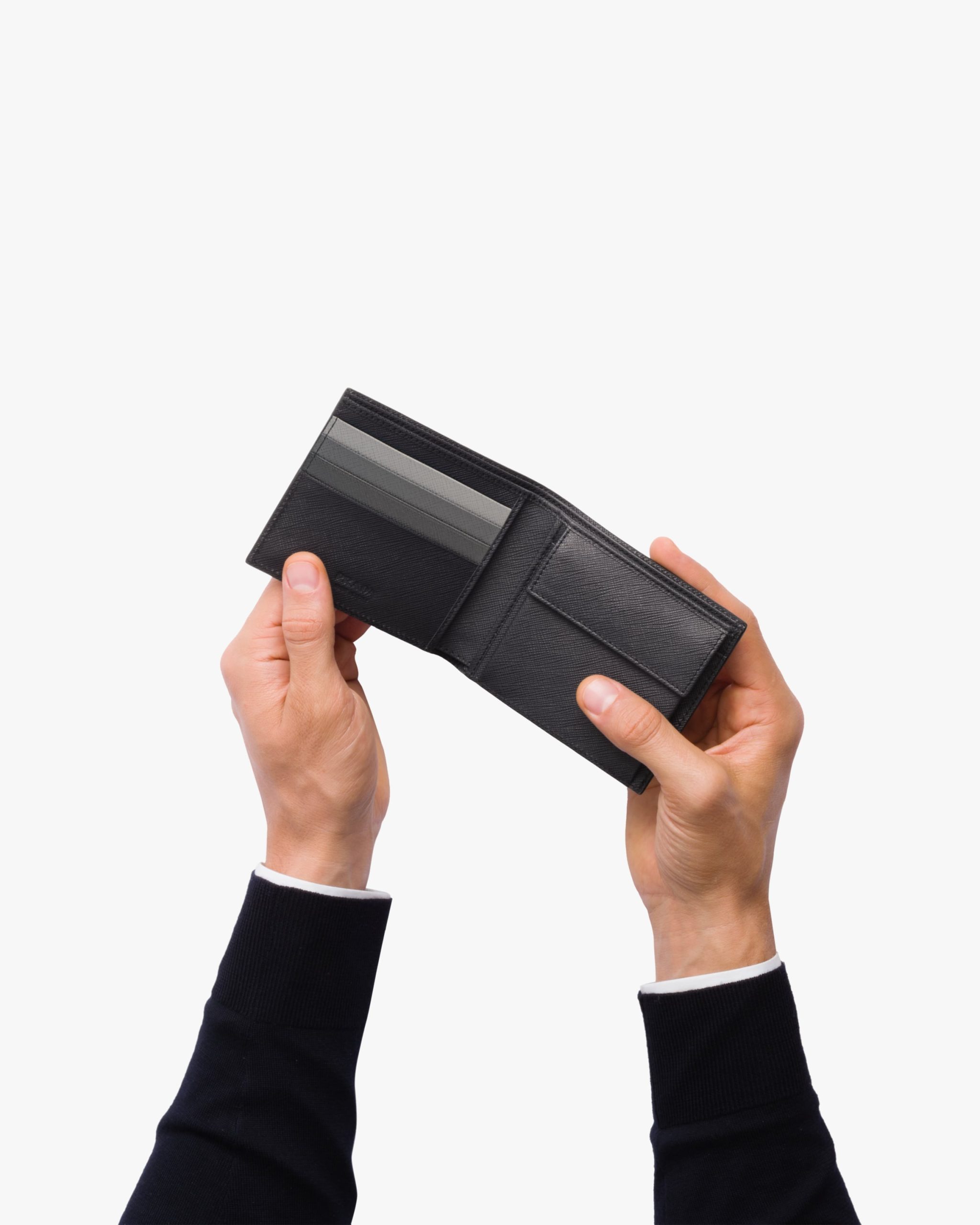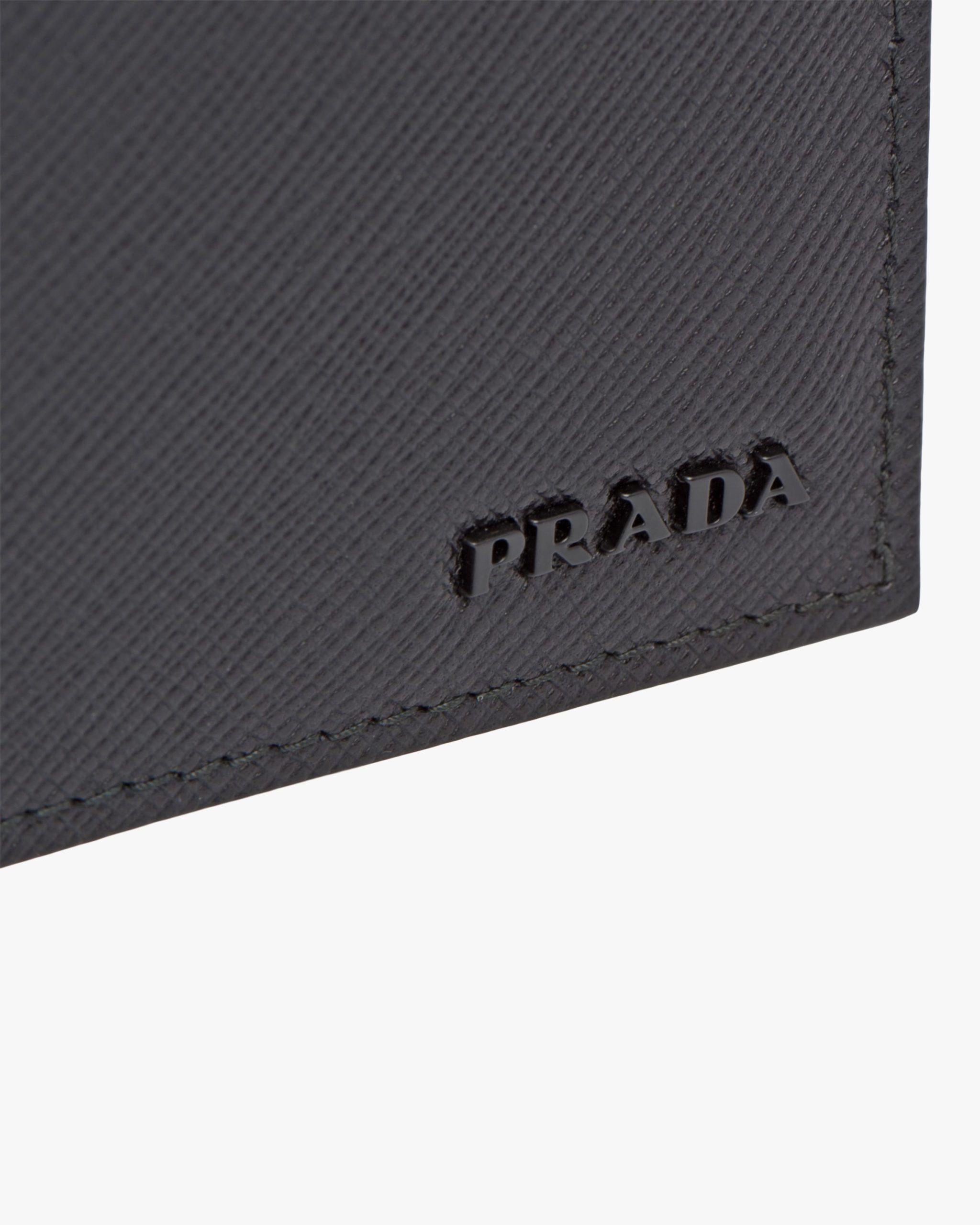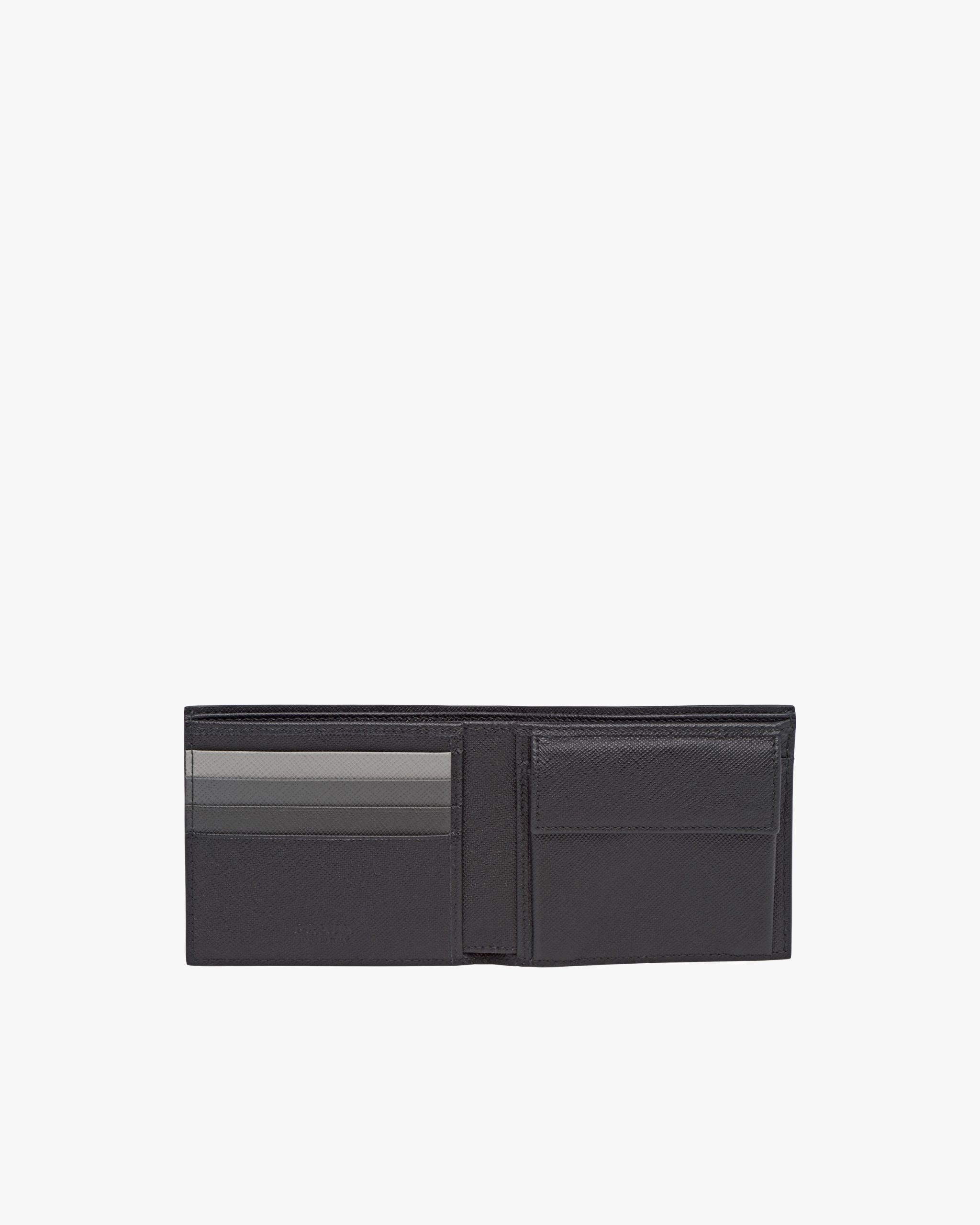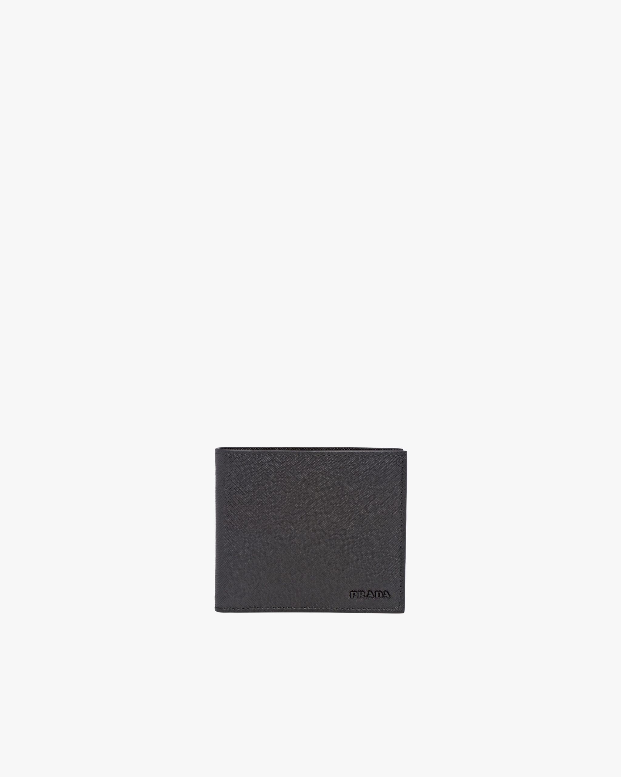This Saffiano leather wallet expresses elegant simplicity. It is decorated with the metal logo.