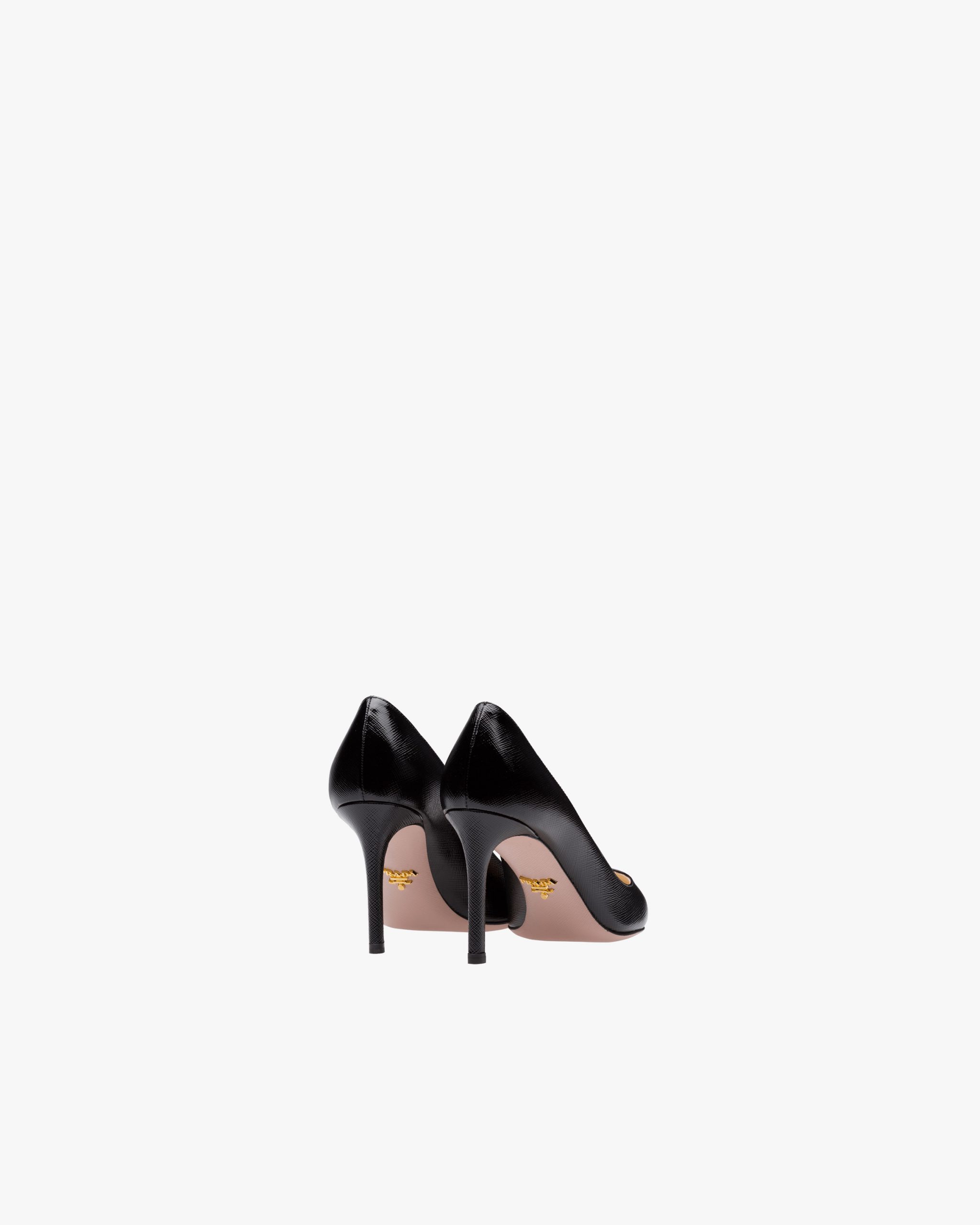 These Saffiano textured patent leather pumps with tapered silhouette and slim 85 mm stiletto heel express timeless femininity.