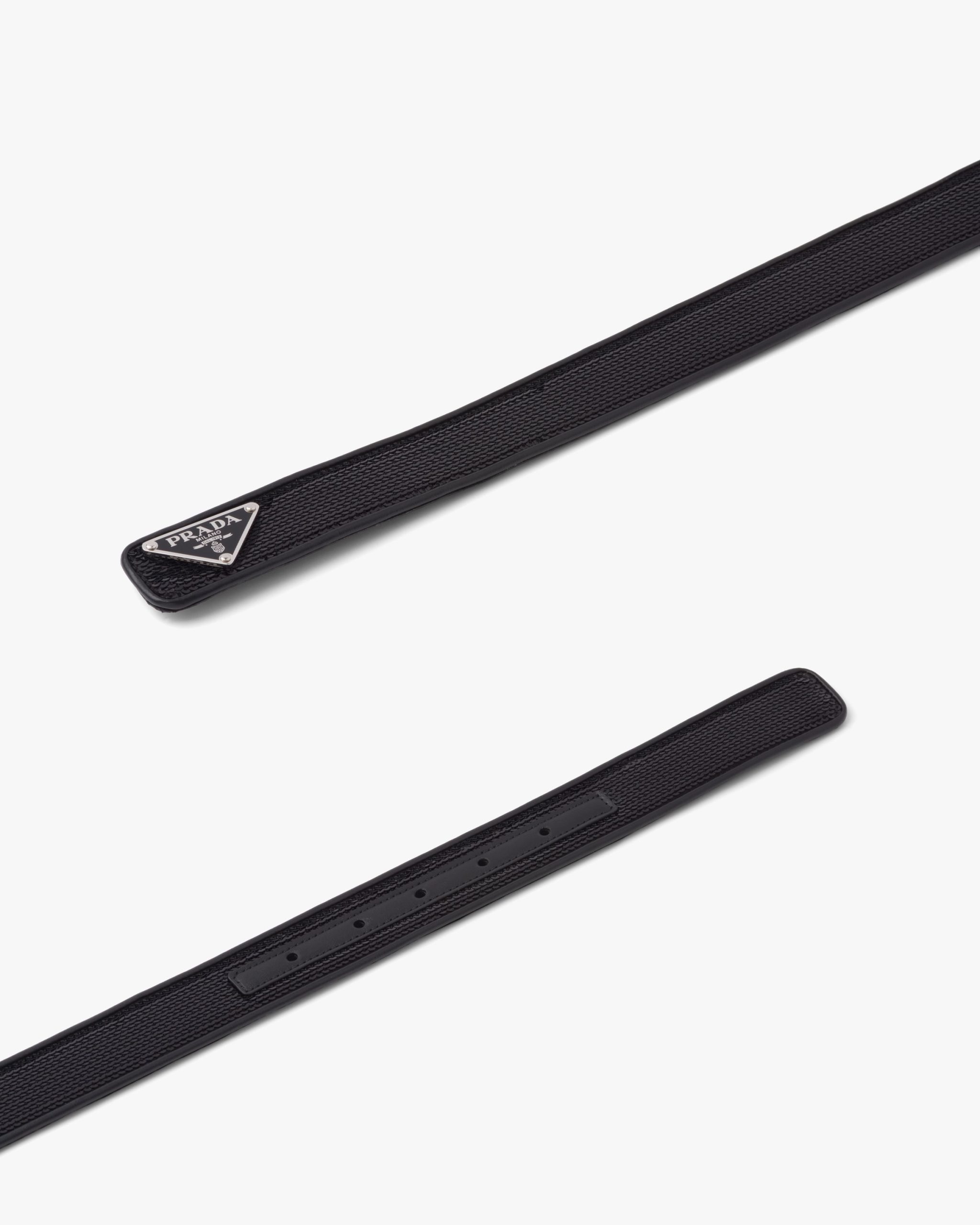 A cascade of sequins covers this narrow belt, creating plays of light and iridescent glimmers. The iconic enameled metal triangle logo of Prada collectsions decorates the buckle.