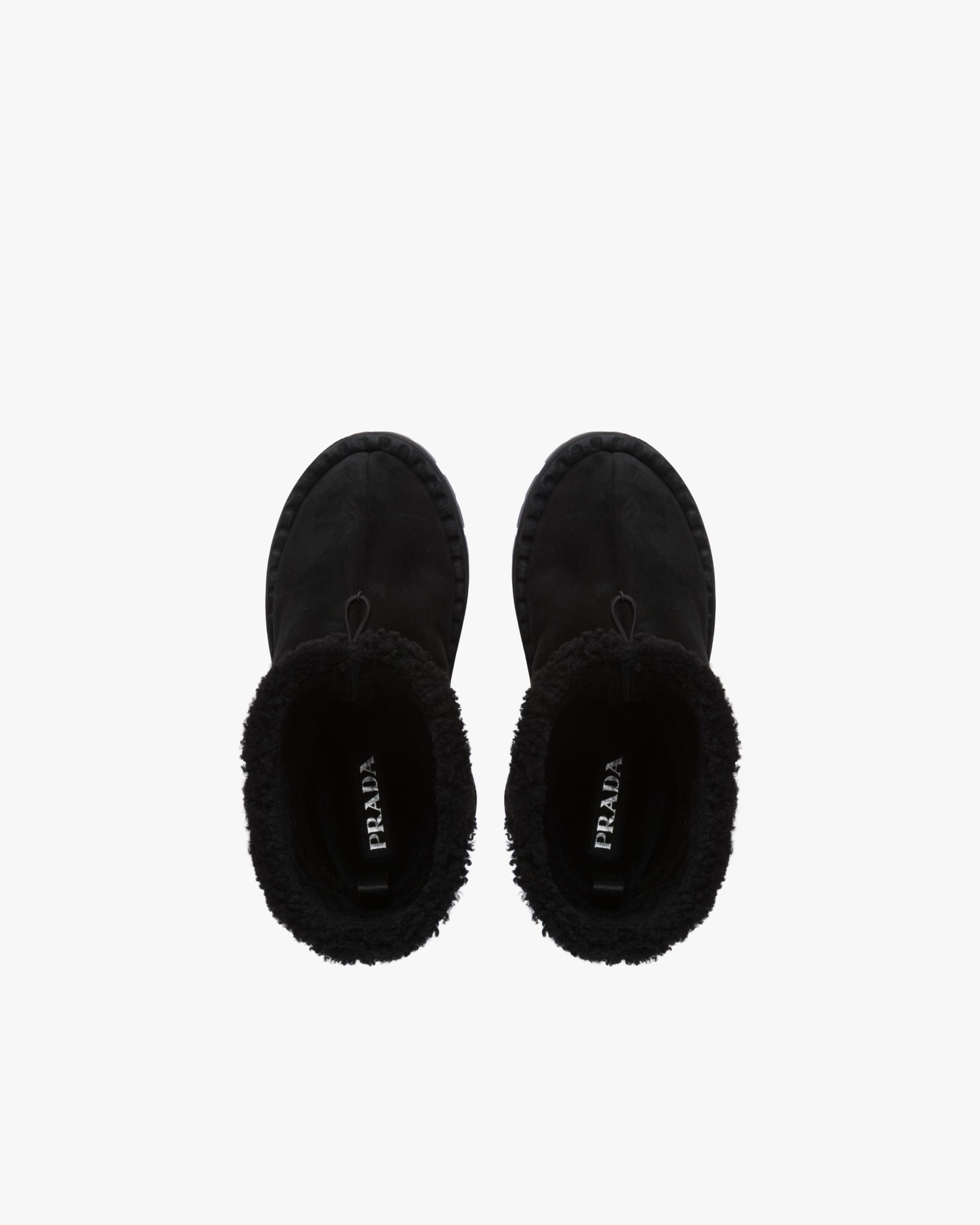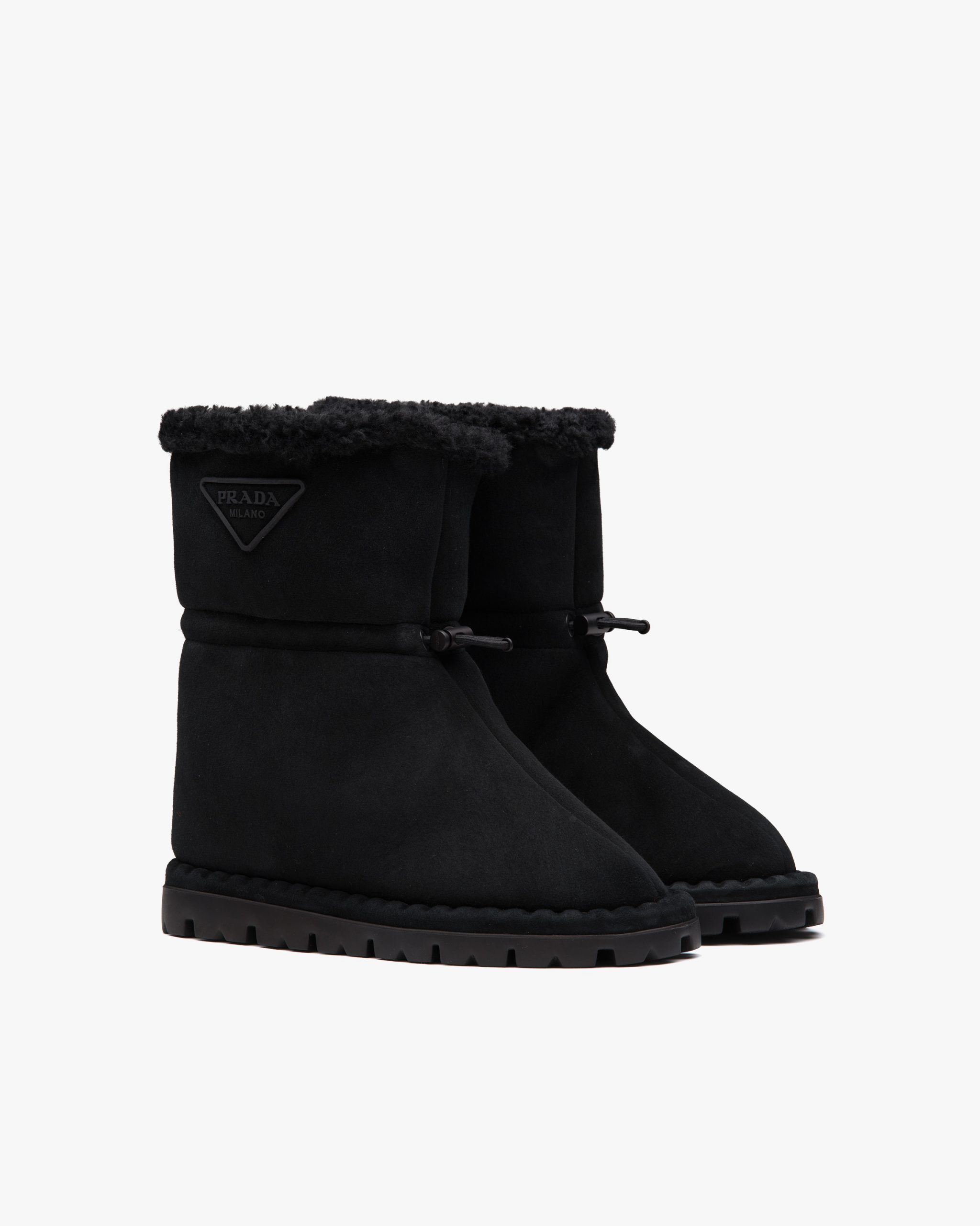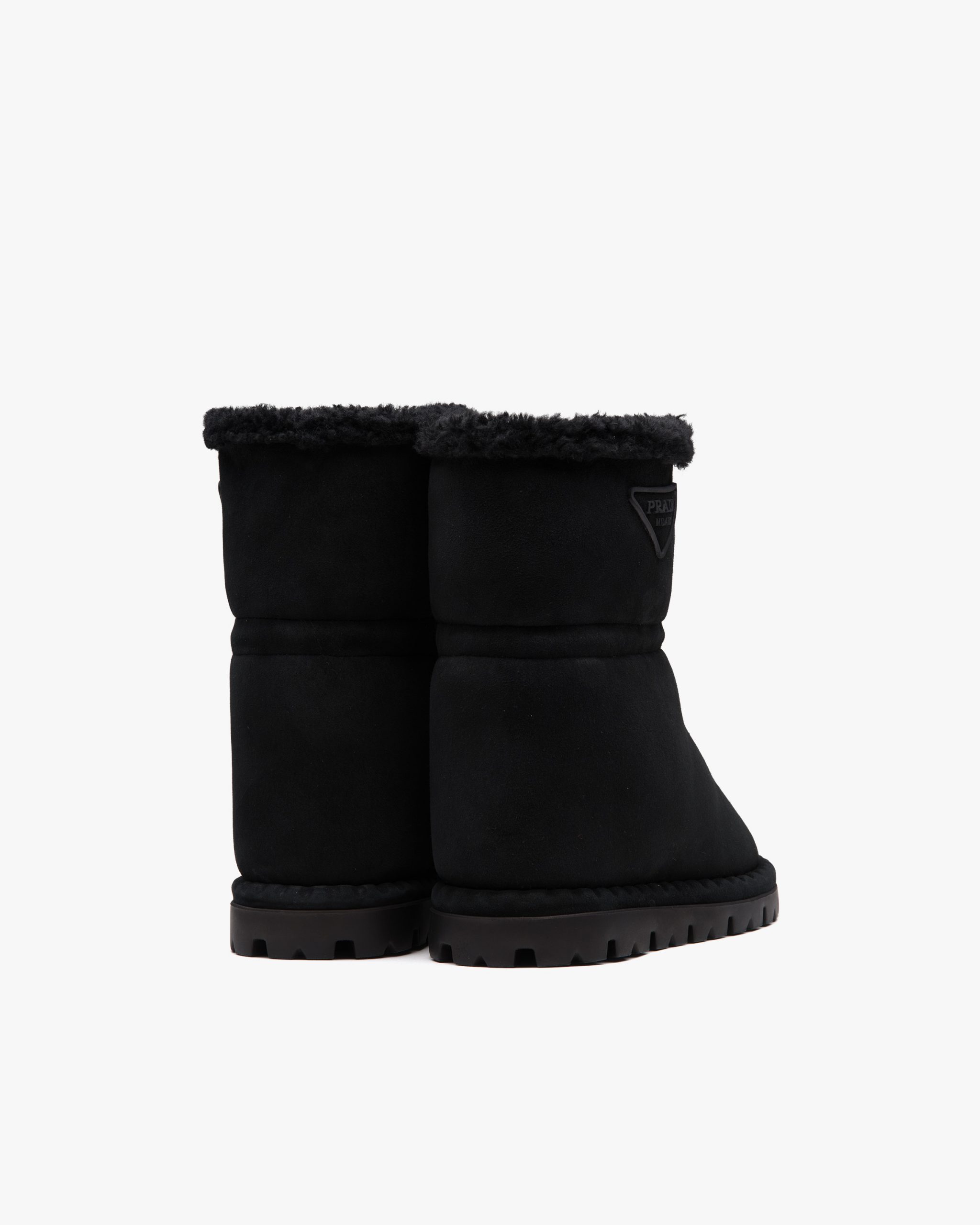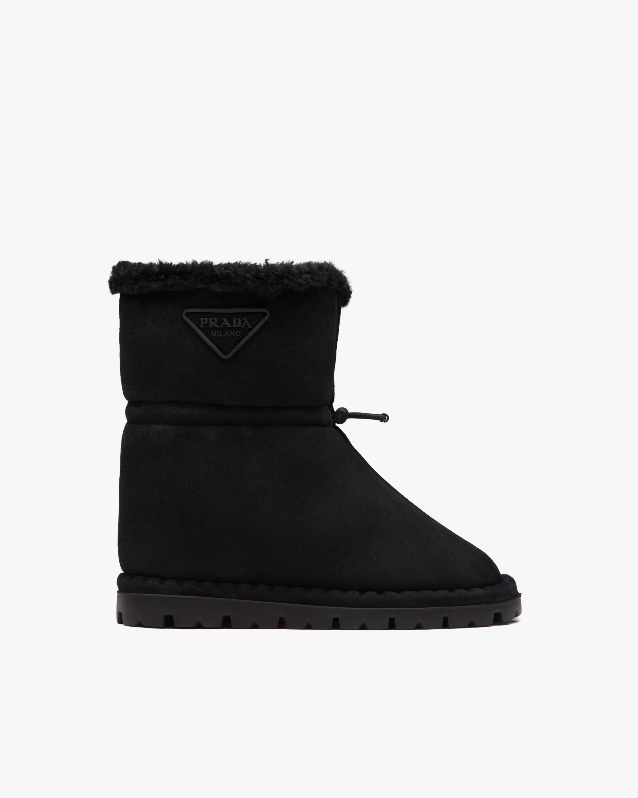 Inspired by the classic snow boot, these shearling booties are characterized by their compact lines and sophisticated details. The rubber triangle logo completing the design underlines its sporty character.