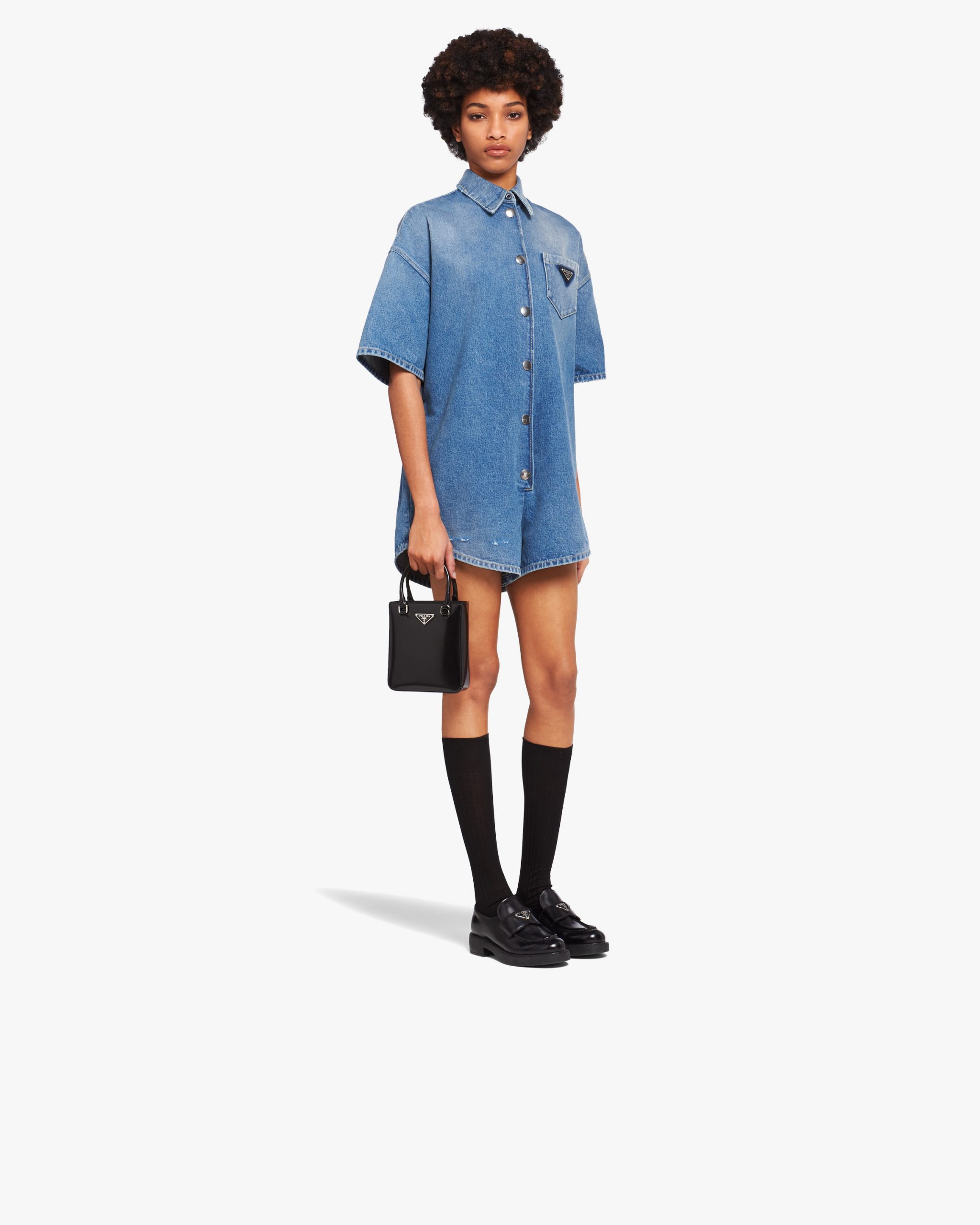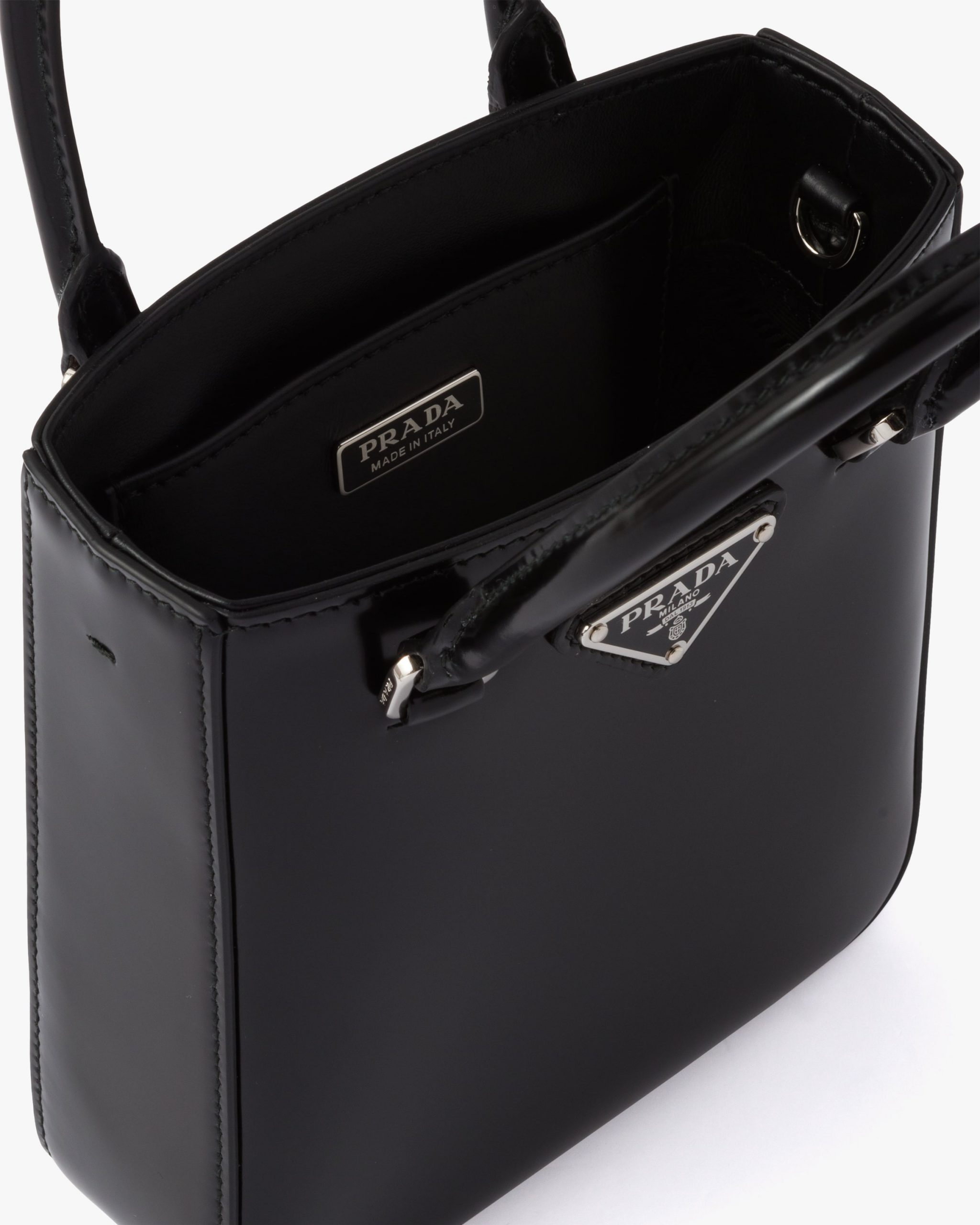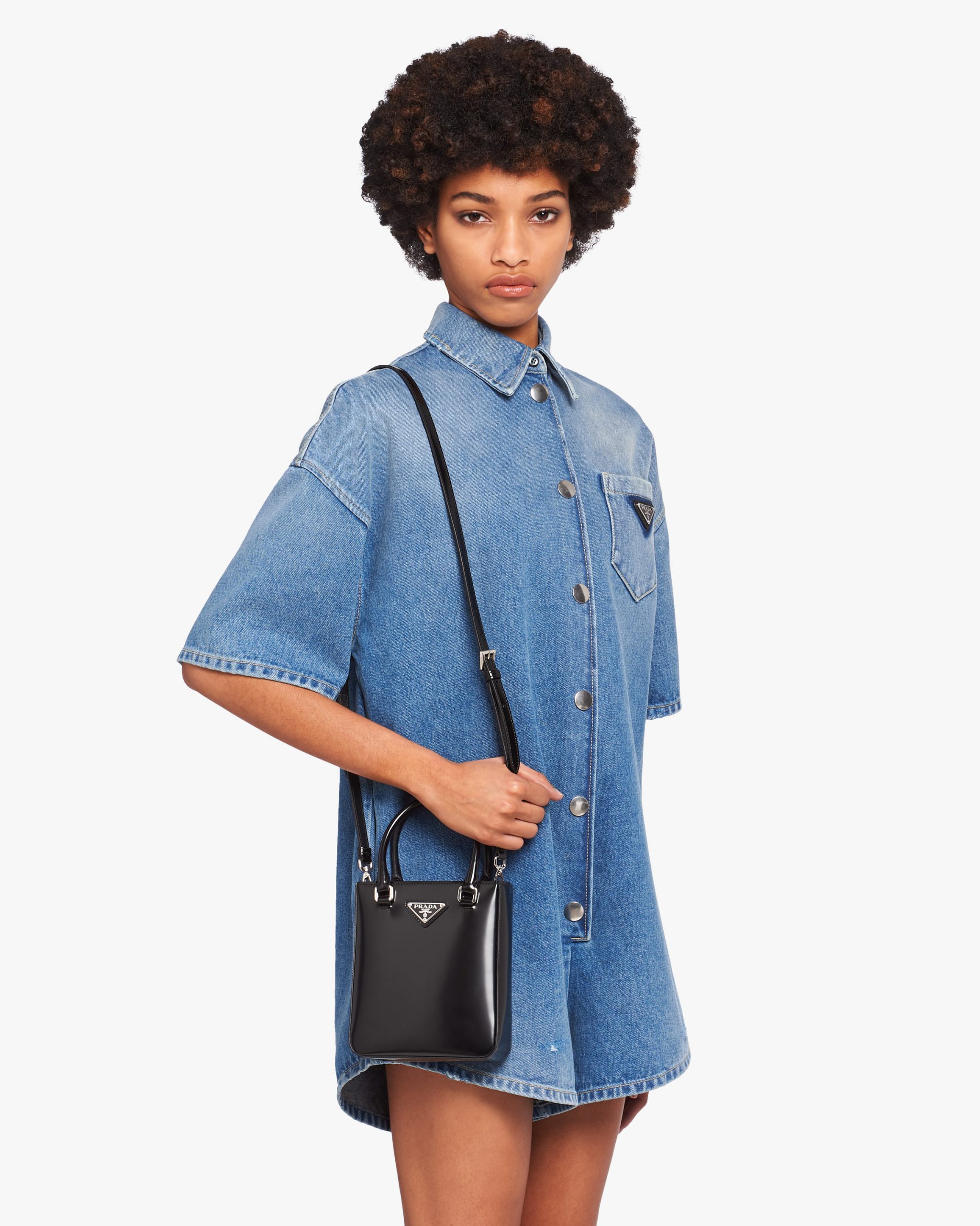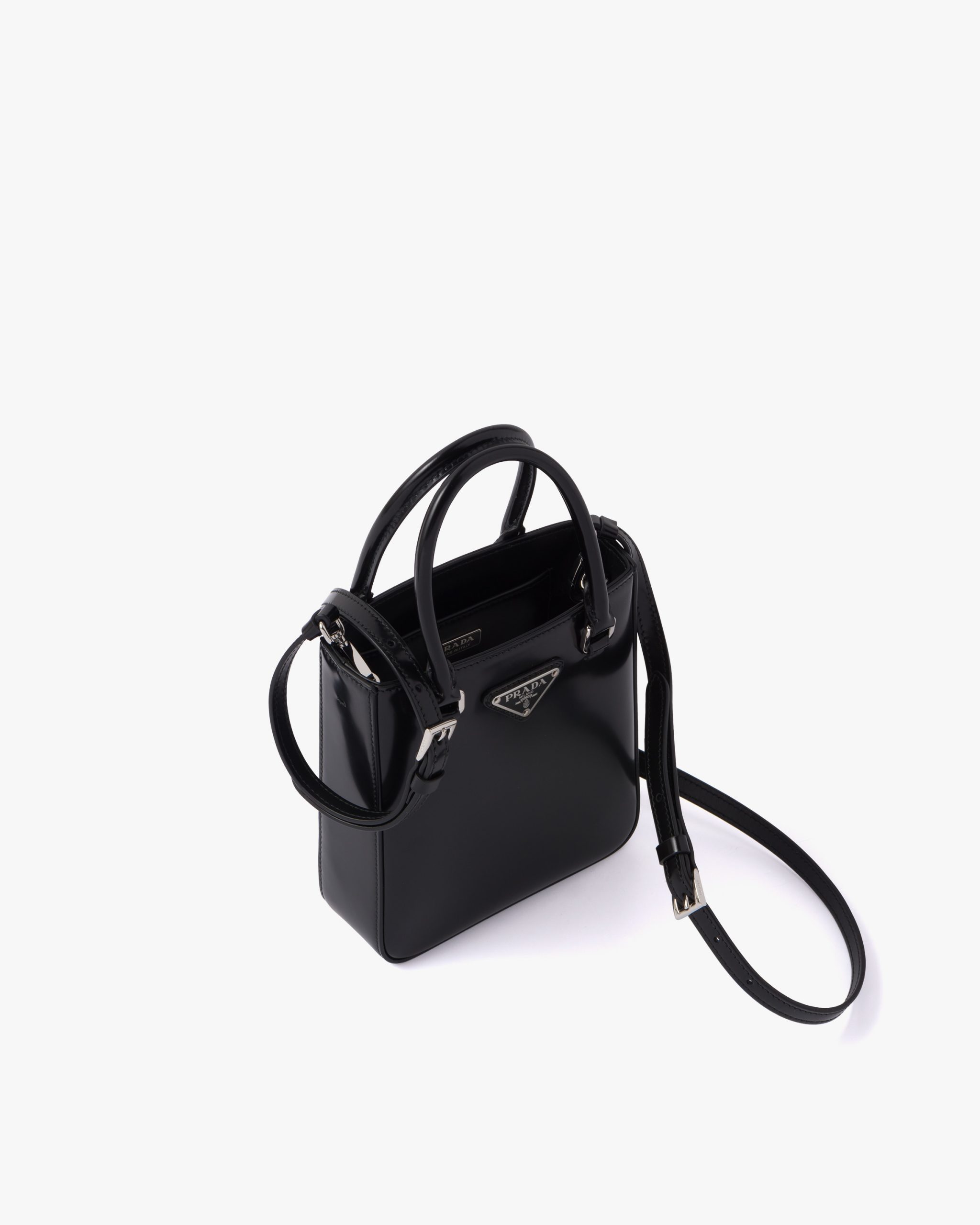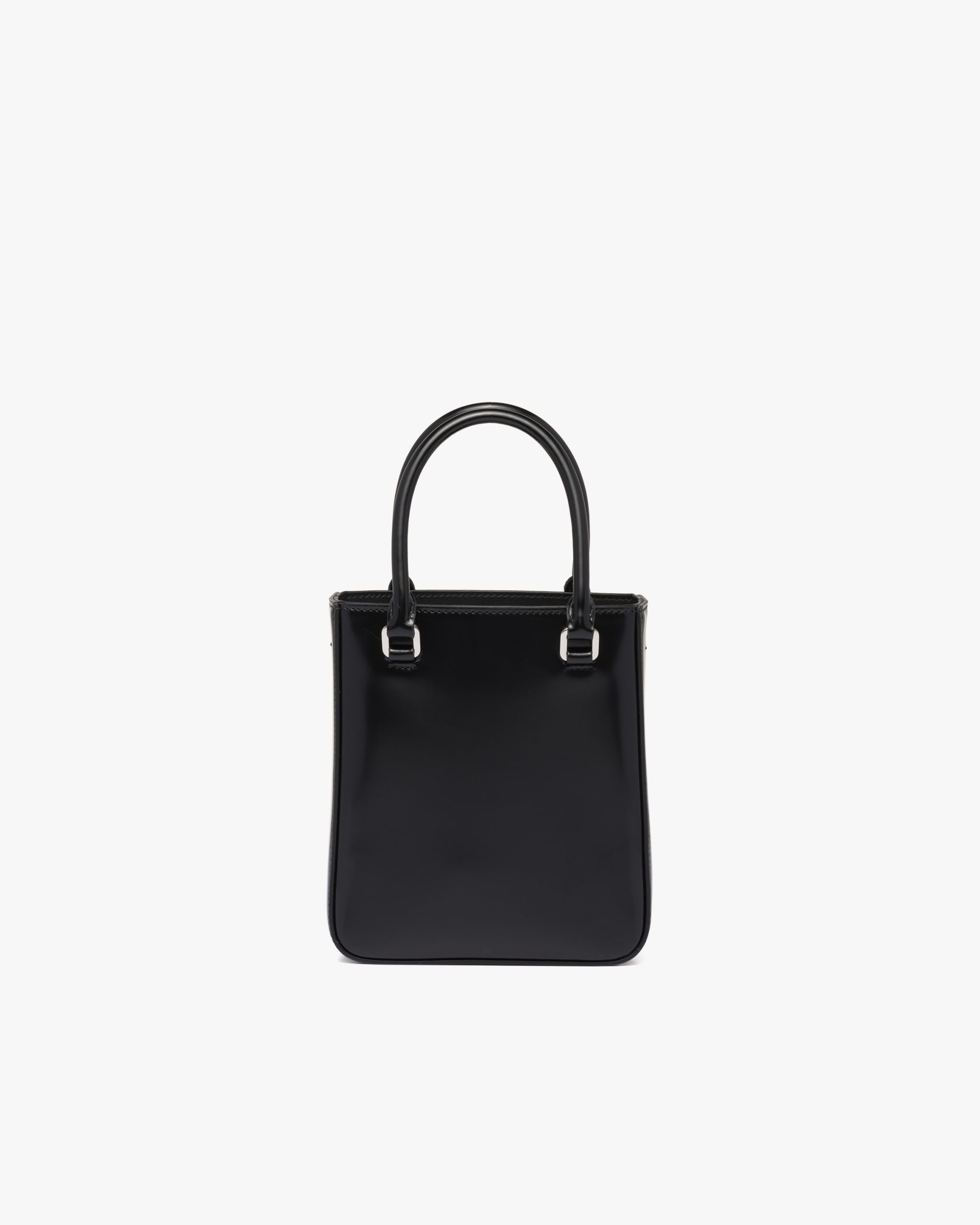 This small tote with a sleek, square design is made of brushed leather, an iconic material of the brand since the nineties and traditionally tied to the luxury world. The design, completed by the detachable leather shoulder strap, can be worn in several ways.