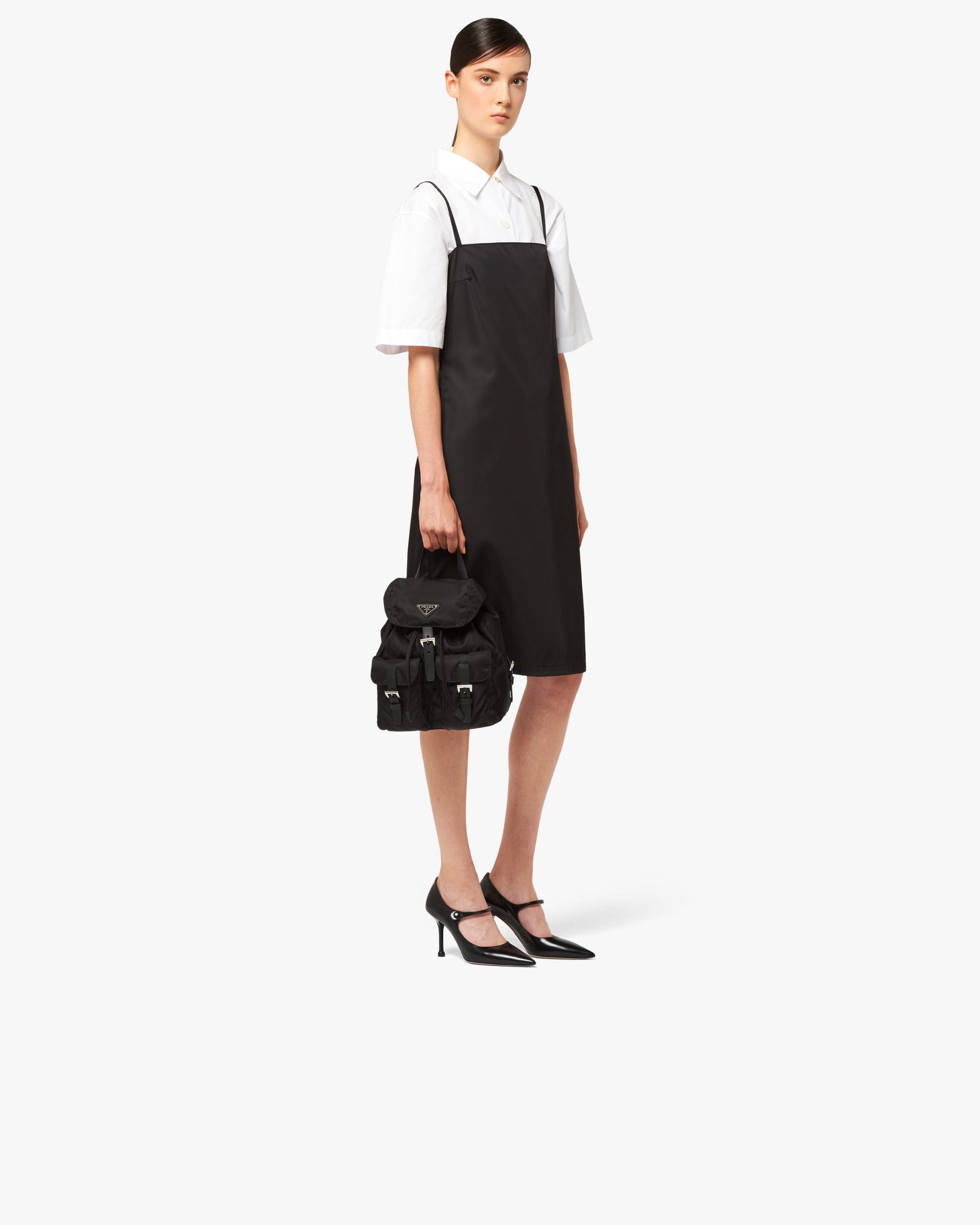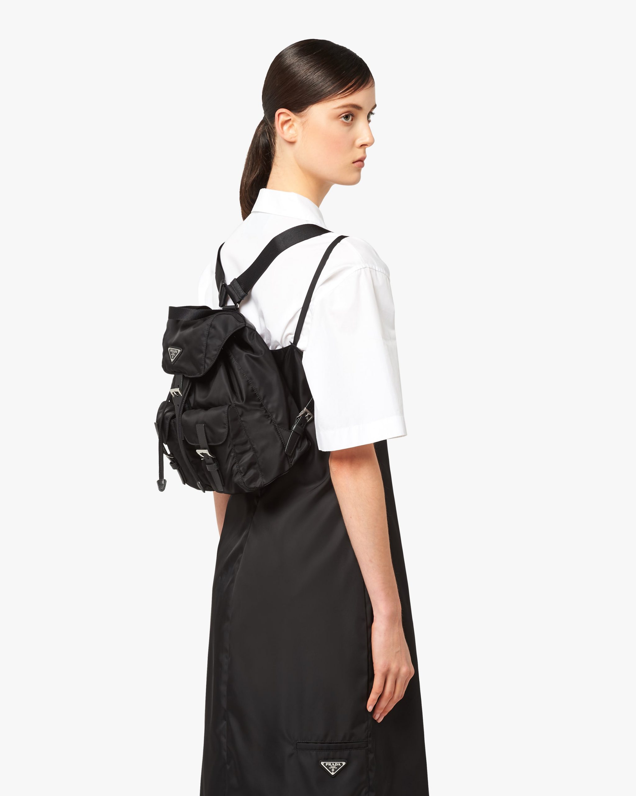 Part of Prada’s heritage since the ’80s, the nylon backpack reflects the main characteristics of the brand: innovative materials, a utilitarian approach to luxury, and a reinterpretation of the classics. This modern accessory with a minimalist design is made of Re-Nylon, produced from recycled, purified plastic material collectsed in the ocean.