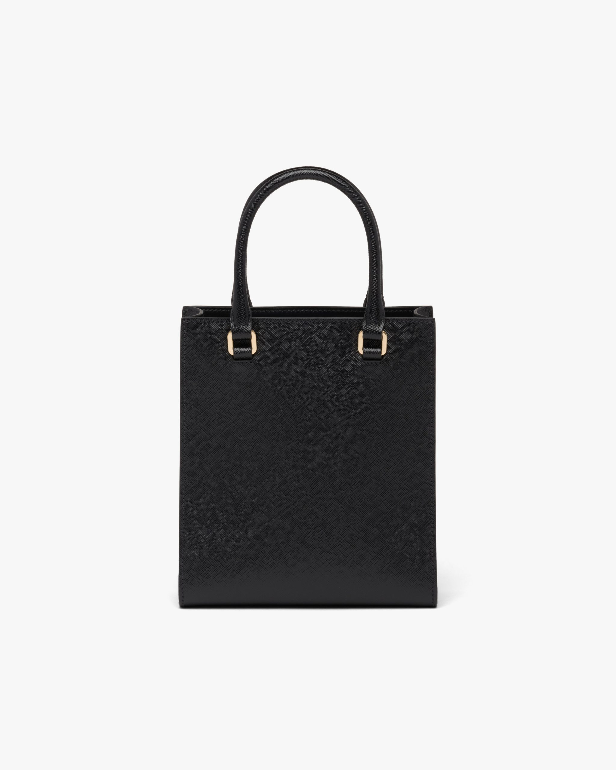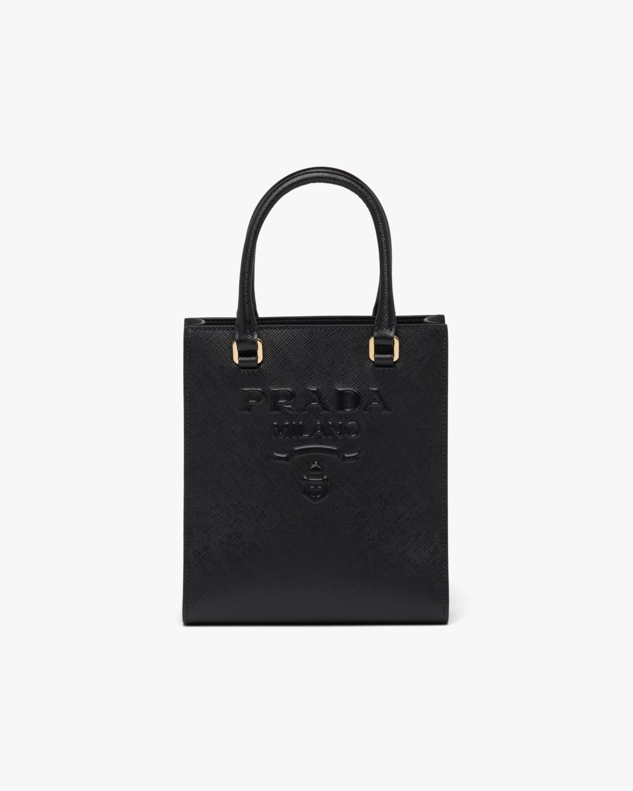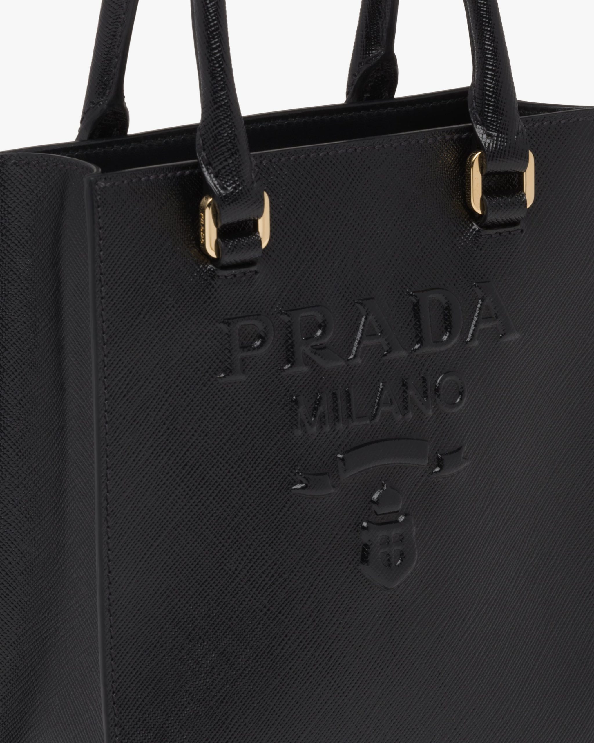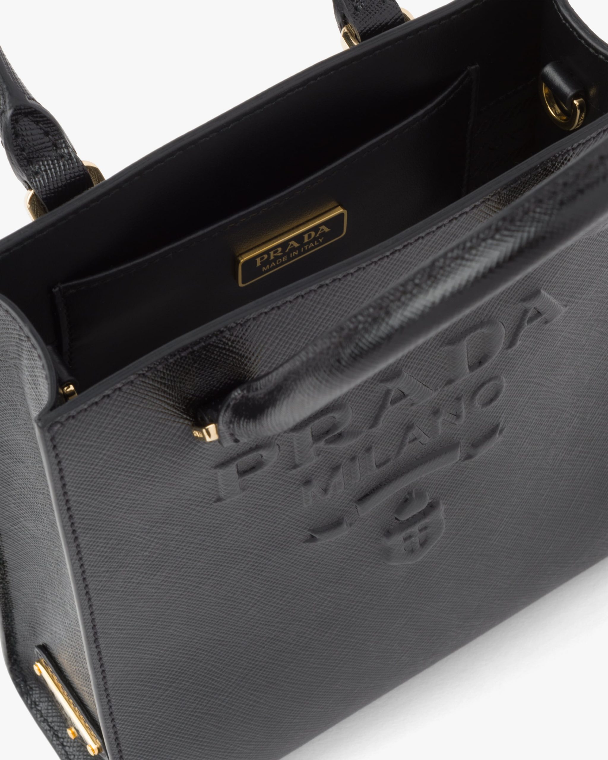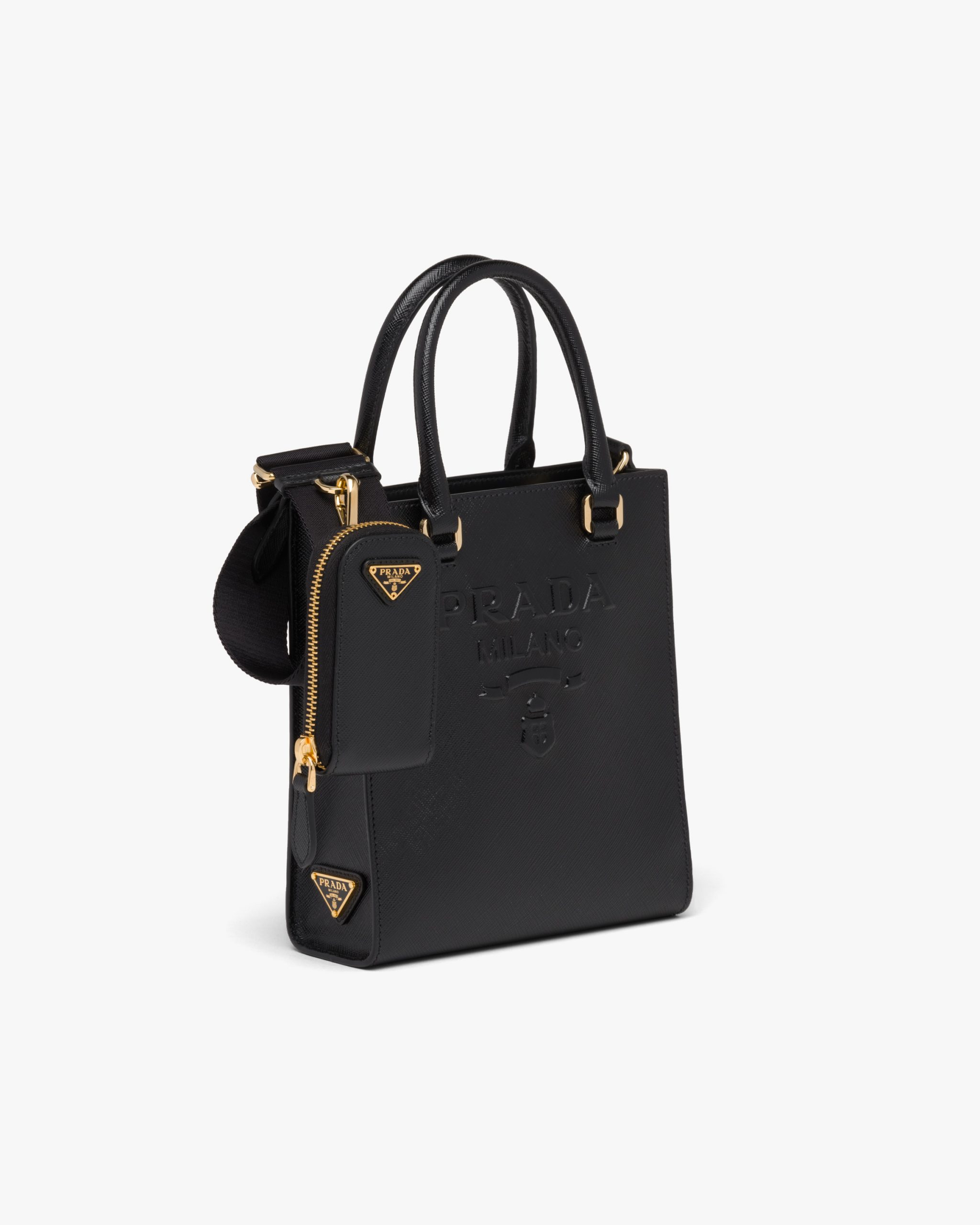 Saffiano leather, Prada’s iconic material, is synonymous with luxury and identifies with traditional Italian leather-making. This high-quality leather with its characteristic crosshatch texture and waxed finish defines this handbag with a sleek, elegant design, double handle, and detachable shoulder strap that allows it to be worn in different ways. Decorated with the embossed lettering logo, the design has a detachable pouch for a contemporary accent.